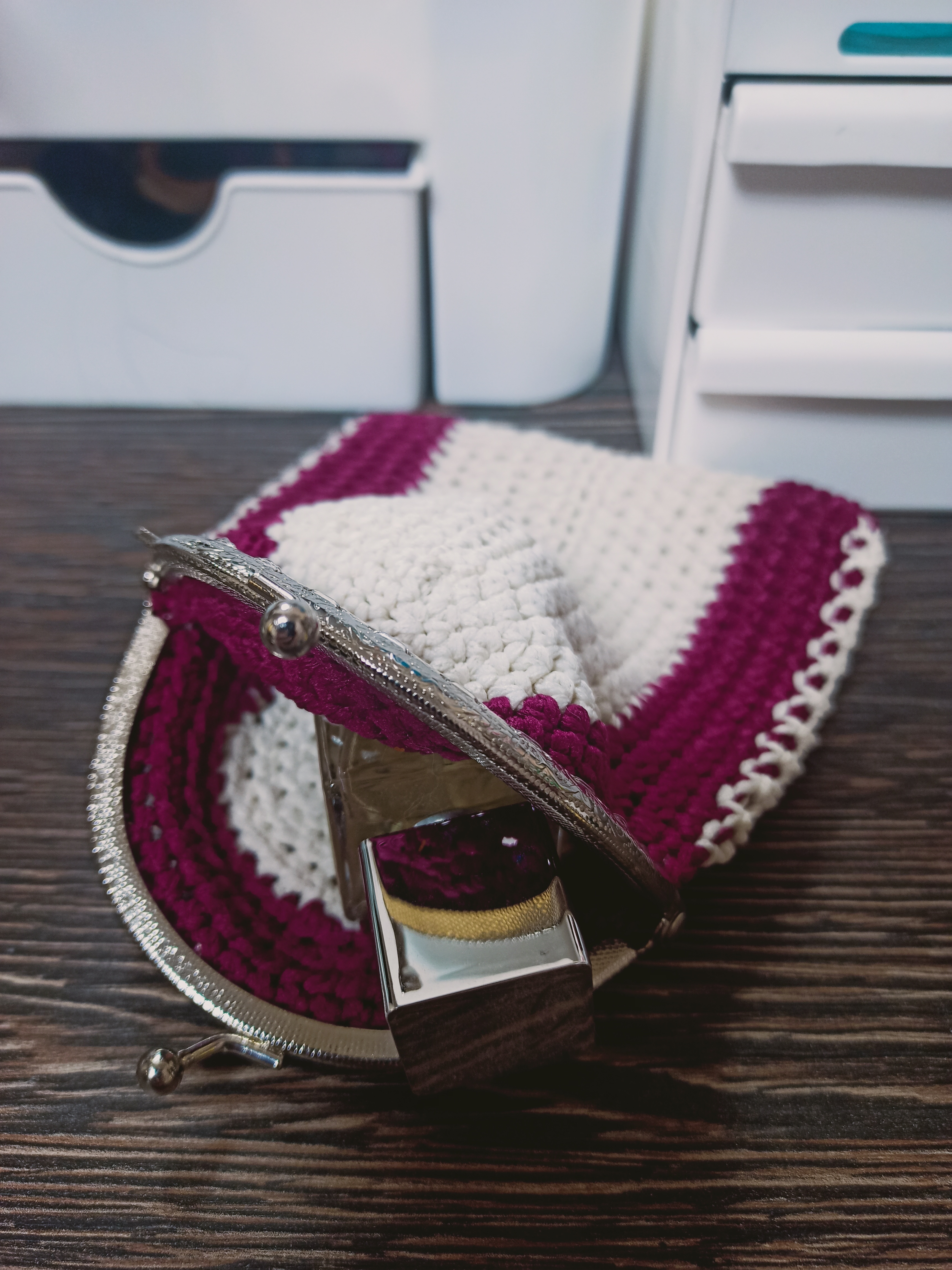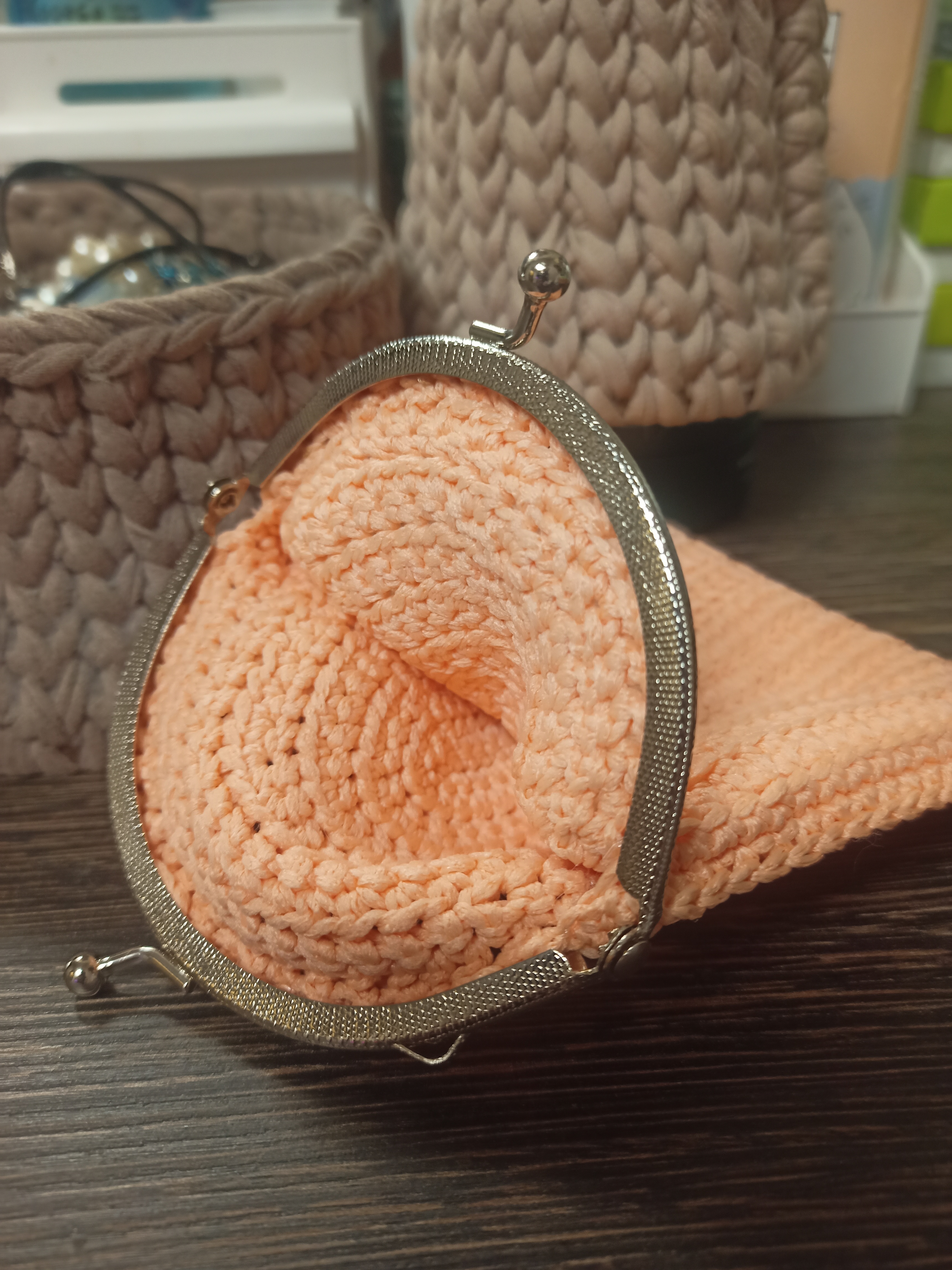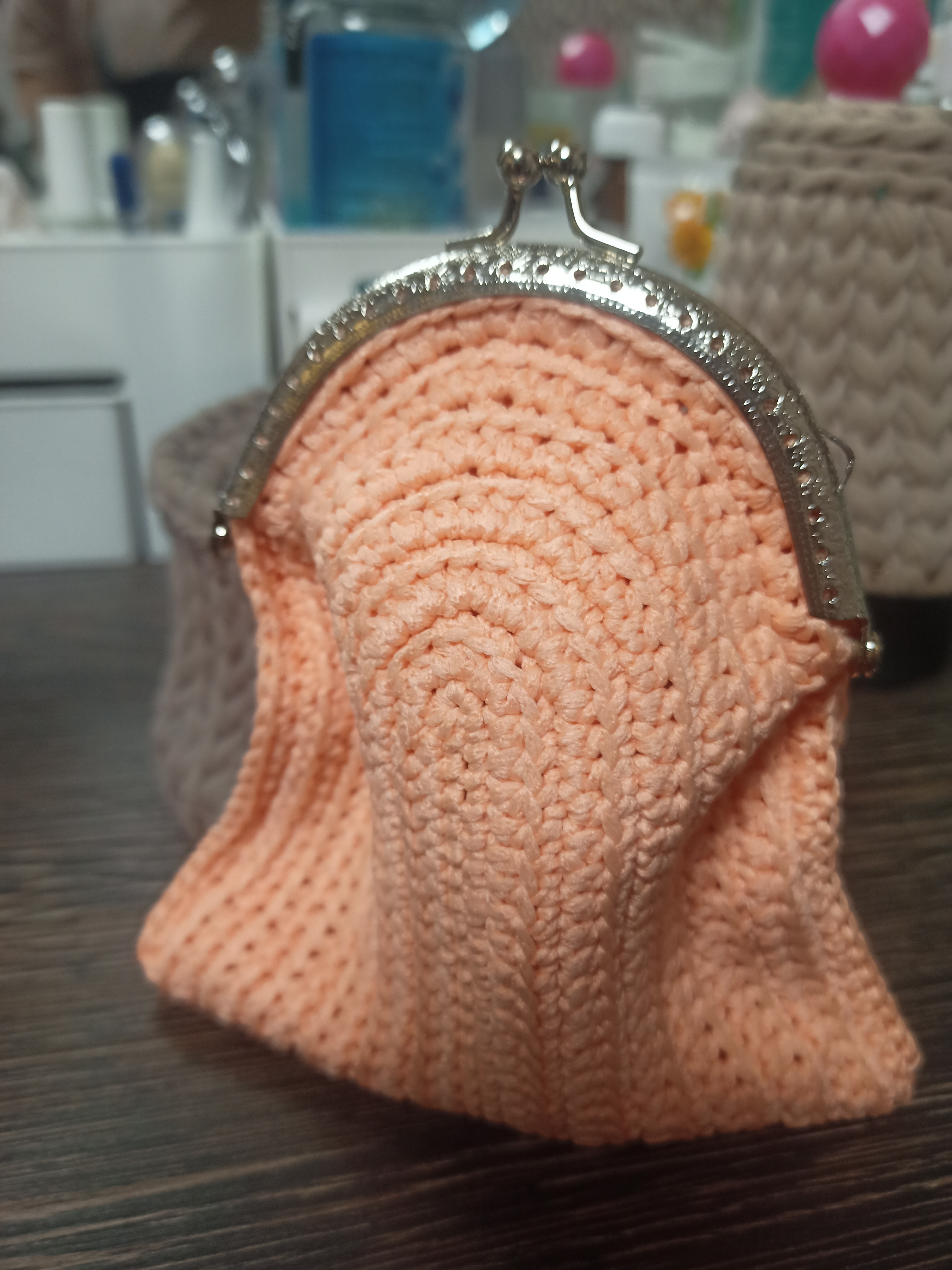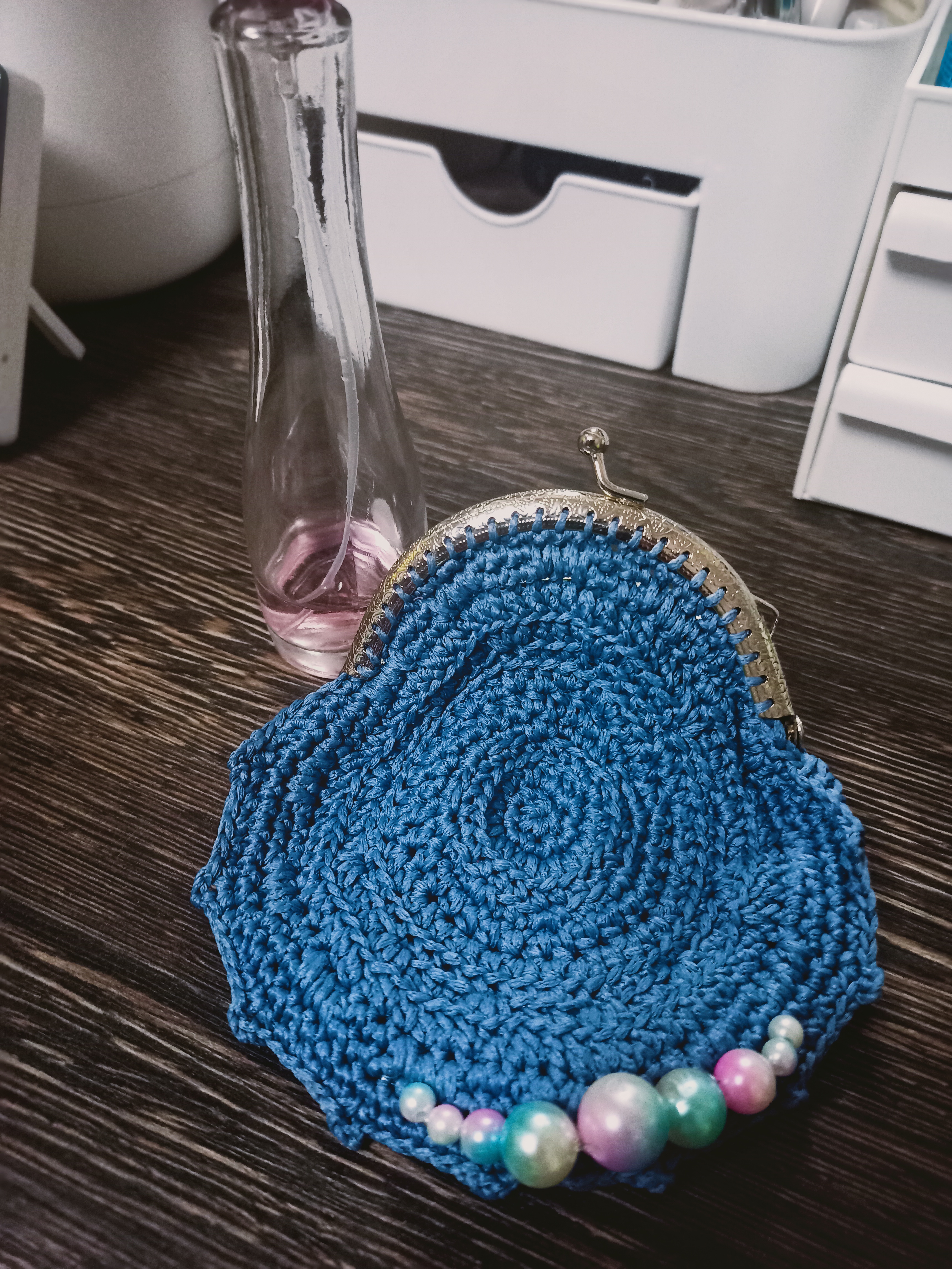 Косметички связаны из полиэфирного шнура, крепление - фермуар овальный. В ассортименте цвет, оформление, форма. Упакованы в прозрачный пакет с открыткой.