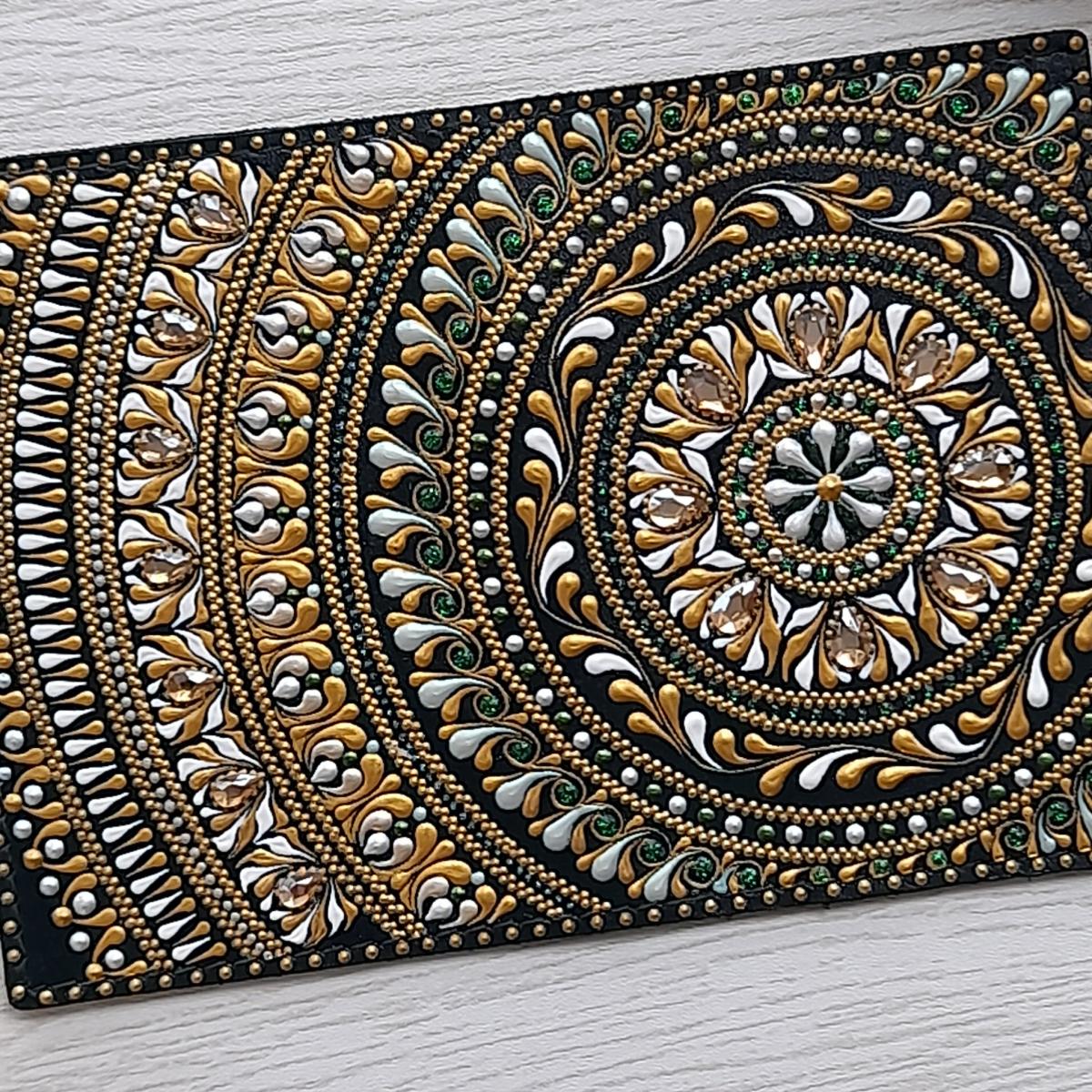 Гармония в деталях. Аксессуары, где натуральная кожа встречается с ювелирной росписью. Ваши повседневные вещи заслуживают прекрасного. Я создаю аксессуары, в которых сочетается благородство натуральной кожи и ювелирная точность ручной росписи. Каждая мандала — это уникальный, идеально симметричный узор, рожденный в медитативном процессе из тысяч безупречных точек. Вы получаете не просто обложку или чехол, а произведение искусства для ежедневного использования.