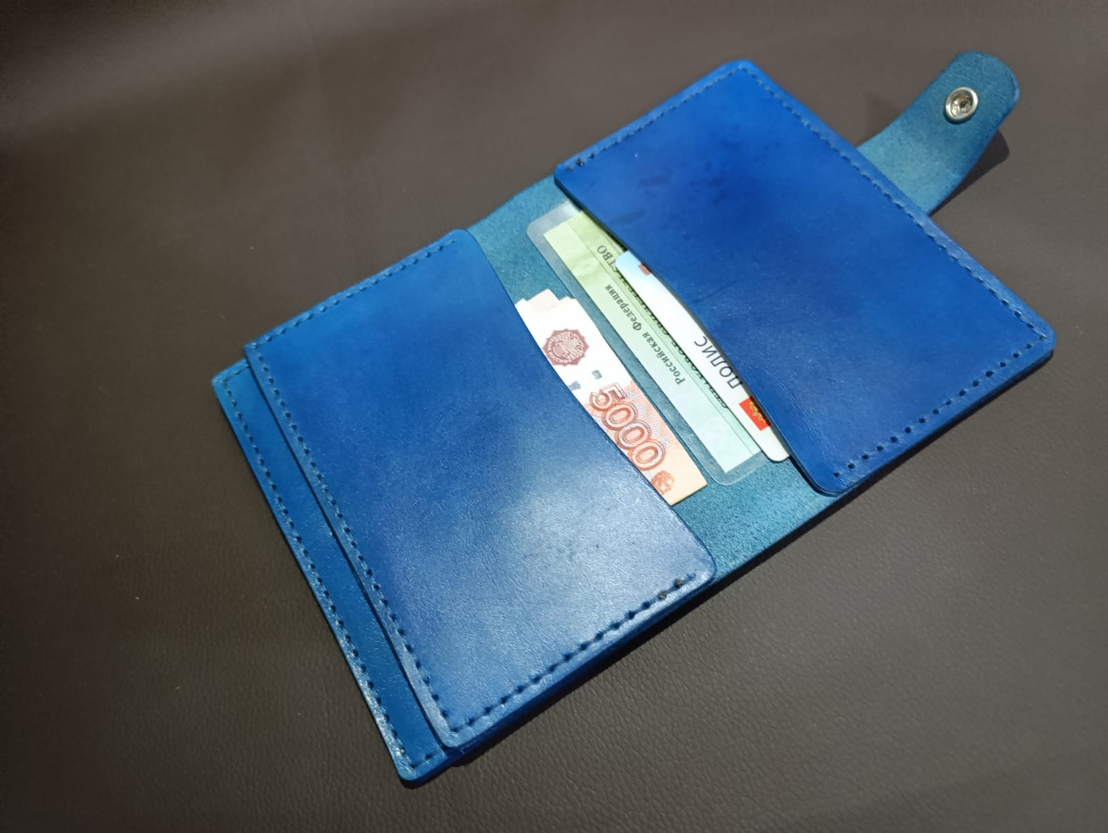 Портмоне из натуральной итальянской кожи растительного дубления, ручной окрас.