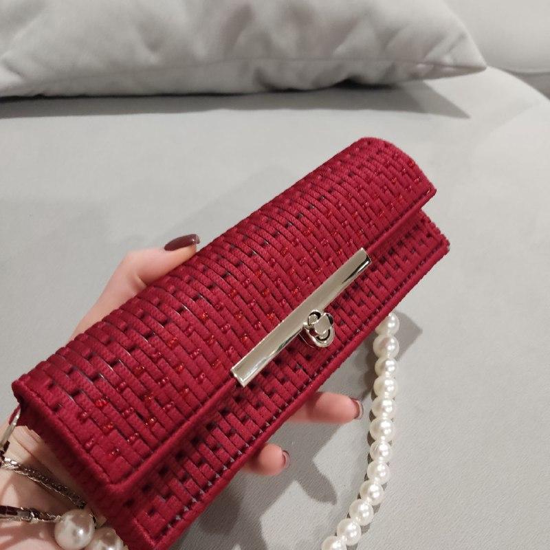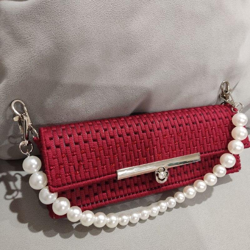 Элегантная сумка-клатч ручной работы, из полиэфирного шнура, отлично держит форму благодаря пластиковой канве, с красным подкладом внутри, на ручке с бусинами в основе ручки тонкий металлический тросик на карабинах, с металлической застежкой, идеально подойдет на вечерний образ, Ширина 23/ Высота 8/ Глубина 2.5 см, отличное решение для тех кто ценит качество, стиль, уникальность.