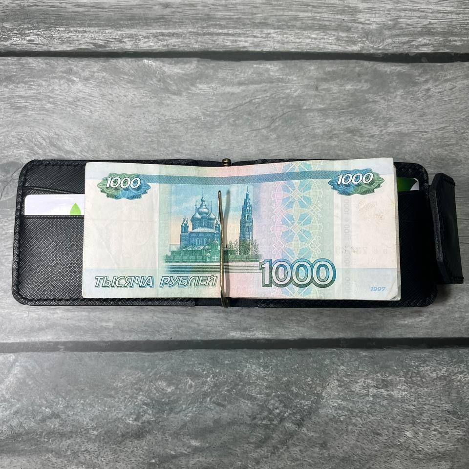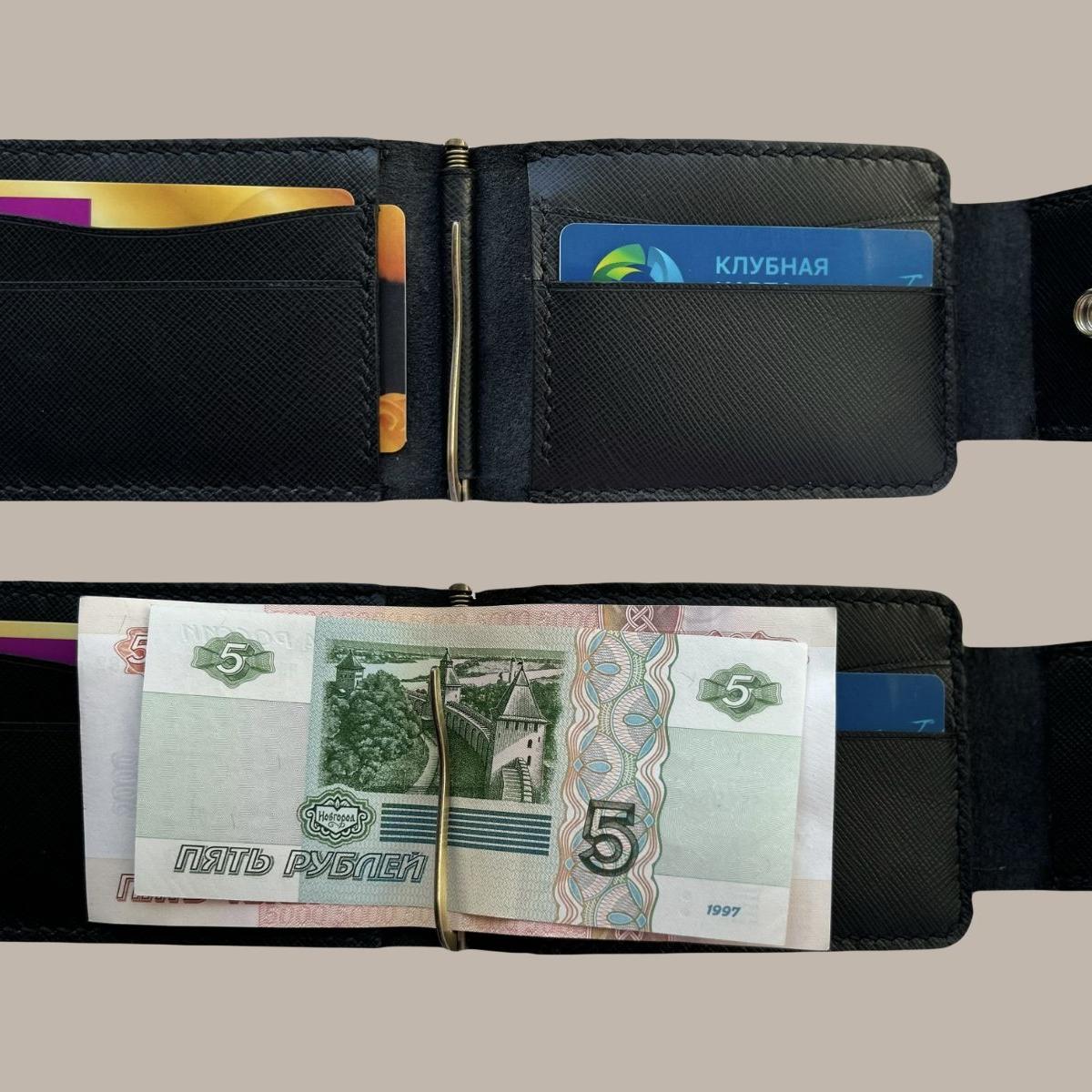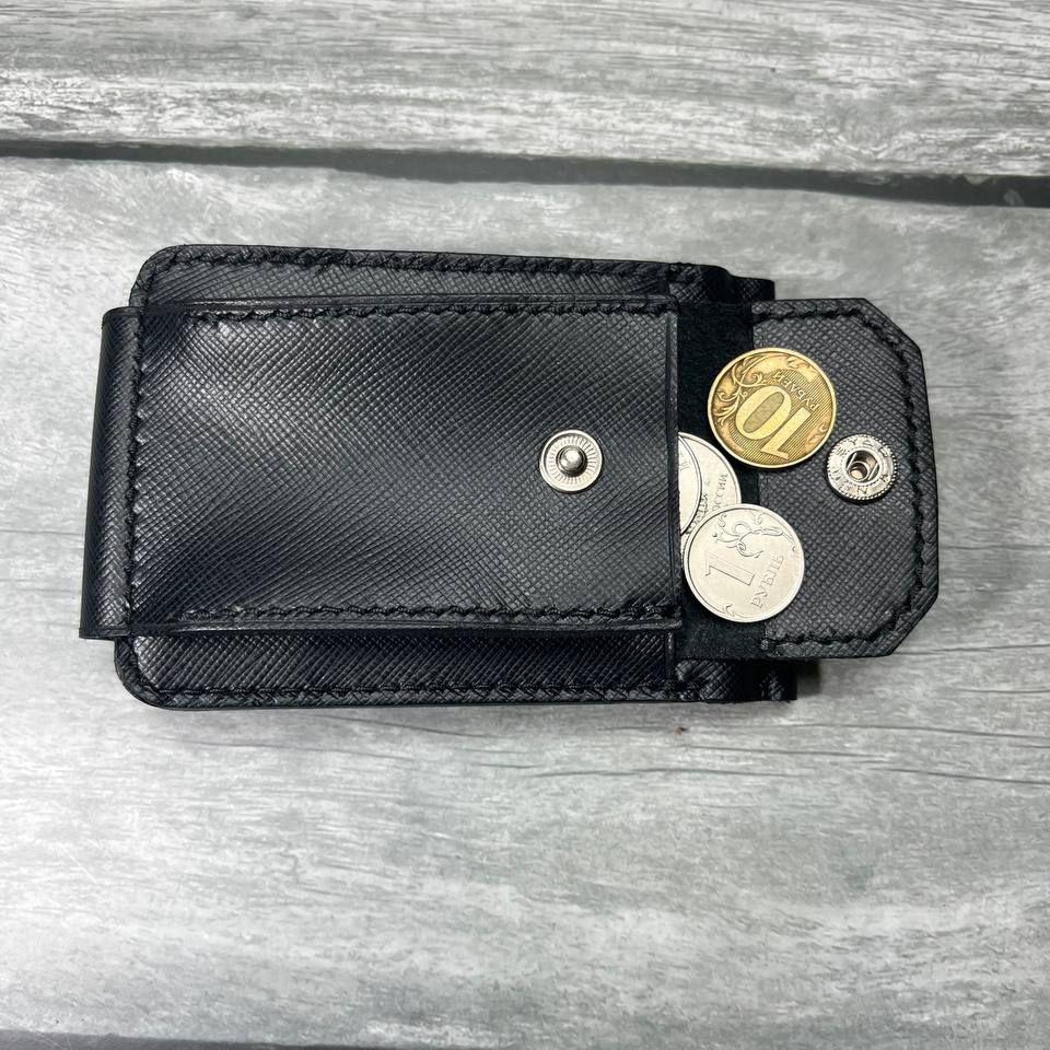Кожаный зажим для денег,практичный акксесуар ,купюры удерживаться внутри с помощью металлического зажима,удобная конструкция,вместительный,есть 4 кармашка для карт расположены в основной части и 2 скрытых кармана,так же есть большой кармашек под мелочь на кнопке.Прекрасно подойдет для подарка на день рождения,14 февраля,23 февраля.Папе ,брату,деду,молодому человеку.