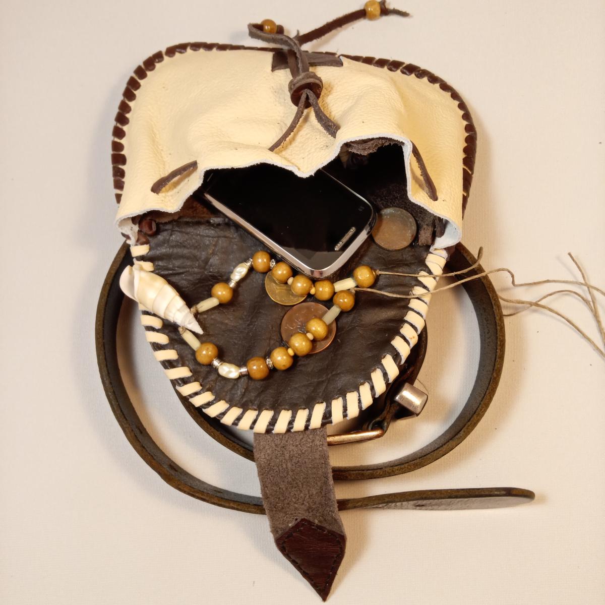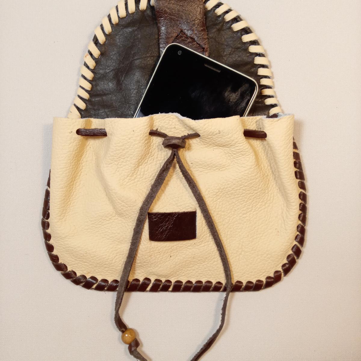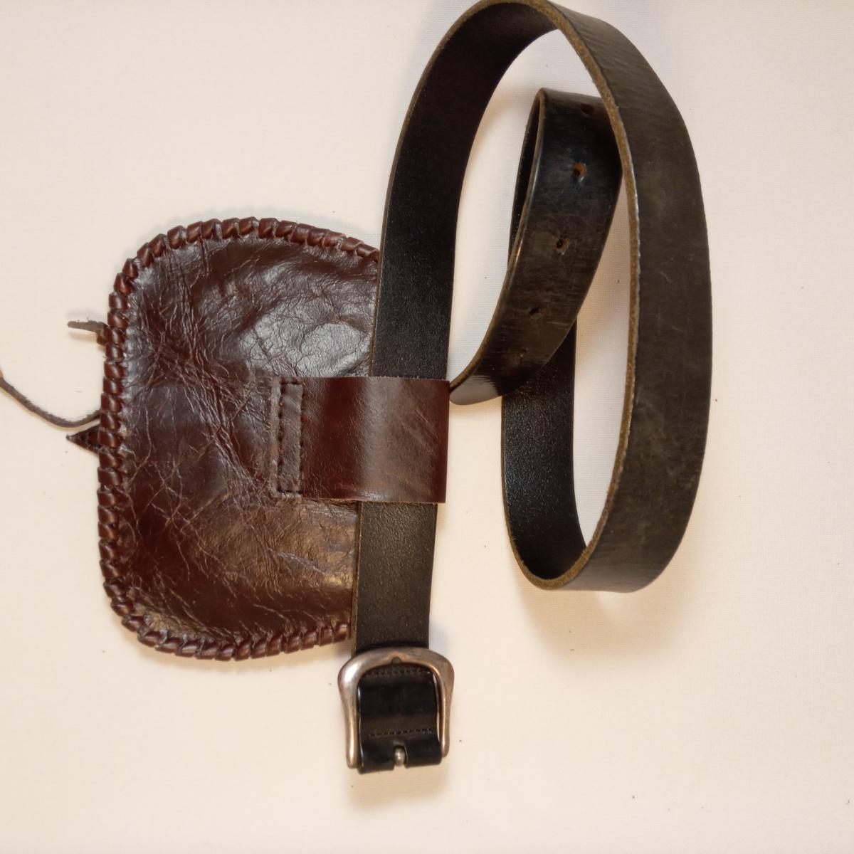 Сумка реконструкция на поясной ремень, натуральная кожа, ручная работа. Отделение одно. Размер: длина - 19 см, высота - 14 см.