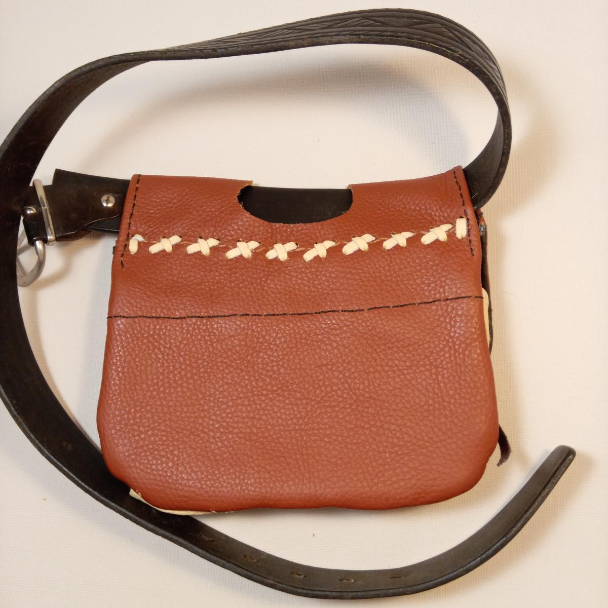 Поясная сумка стилизована под средневековье. Данная модель широко известна как фасолька. Выполнена из натуральной кожи. Полностью ручная работа. Сумочка имеет 1 большое отделение и 2 кармашка. Размер: длина - 20 см, высота - 13 см. Под ремень шириной 4 см.