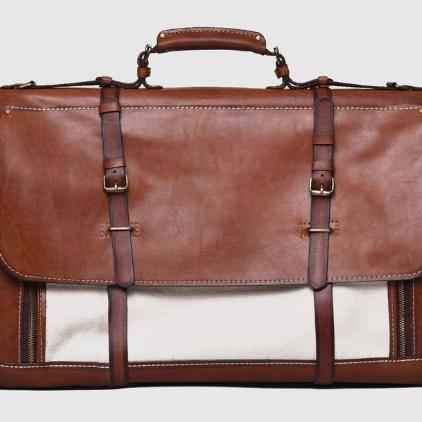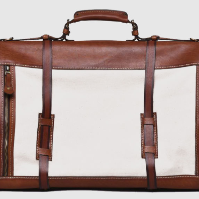 Кейс выполнен из кожи и канваса. Кожа натурального дубления. Финишное вощение. Толщина кожи 1,4-1,6 мм. Цвет коньяк. Канвас высокой плотности, Cotton 100%, цвет светло бежевый. Подклад Poliestr/Plant. Фурнитура цвет латунь. Размер 500х300х200 мм.