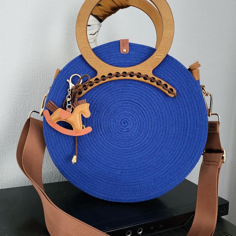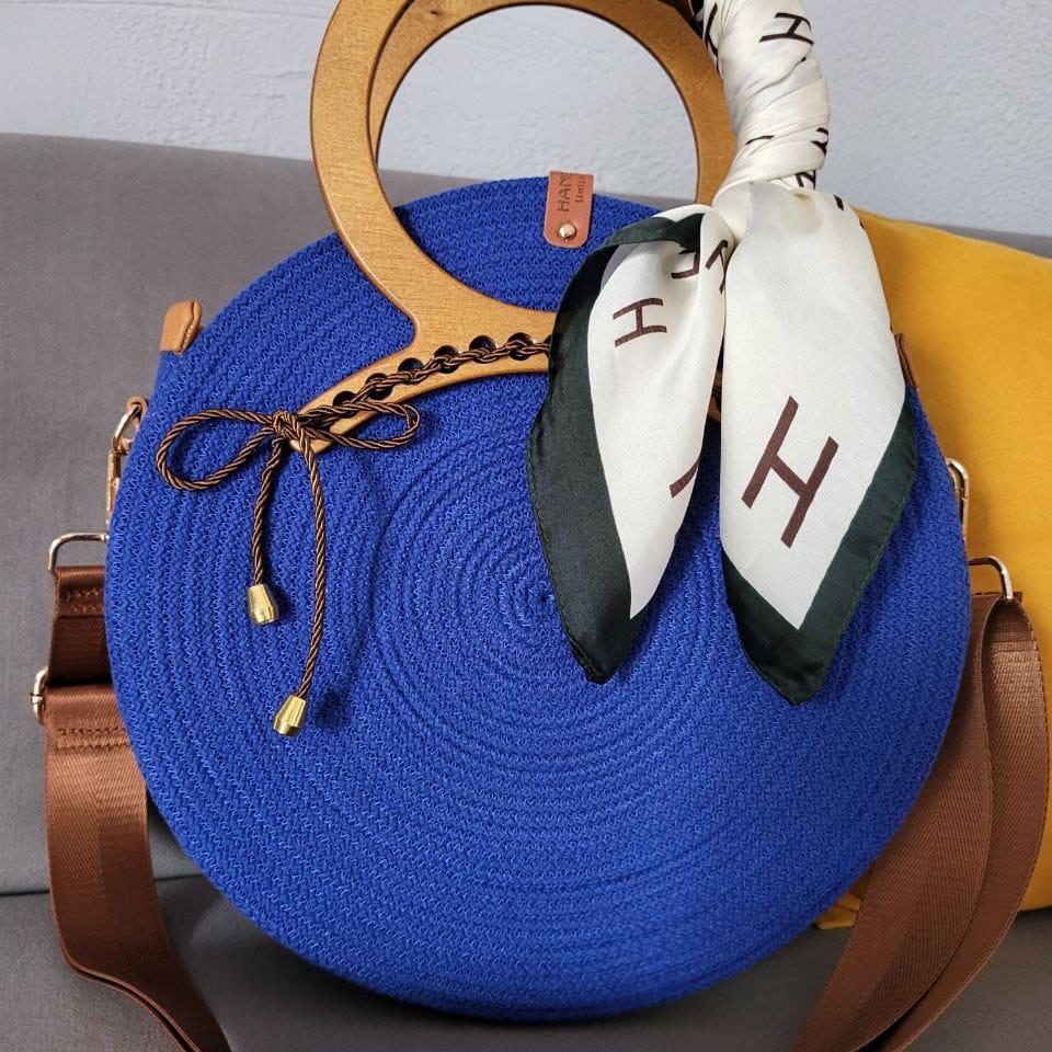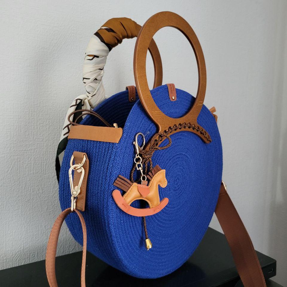 Элегантная круглая сумка с каркасом сохраняет форму на протяжении всего срока службы. Внутренняя отделка из водоотталкивающей ткани облегчает уход, а деревянные ручки и съемная брошь из бусин добавляют изысканности. Атласный ремень позволяет носить сумку удобным способом, делая её стильным и практичным аксессуаром.