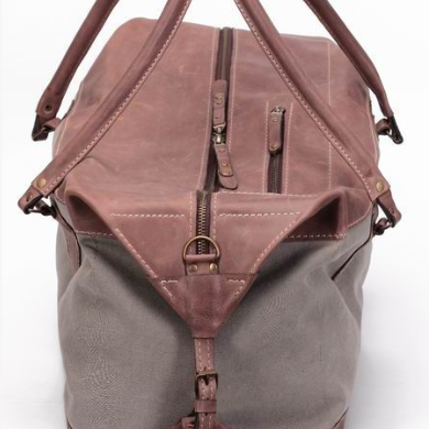 Натуральная кожа и полотно Canvas. Два внешних кармана на молнии. Длина ручек рассчитана на ношение "на плечо". Возможно укомплектовать наплечным ремнем. Размер 500х300х200 мм.