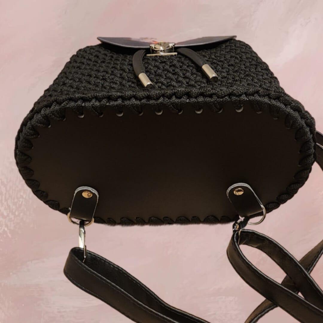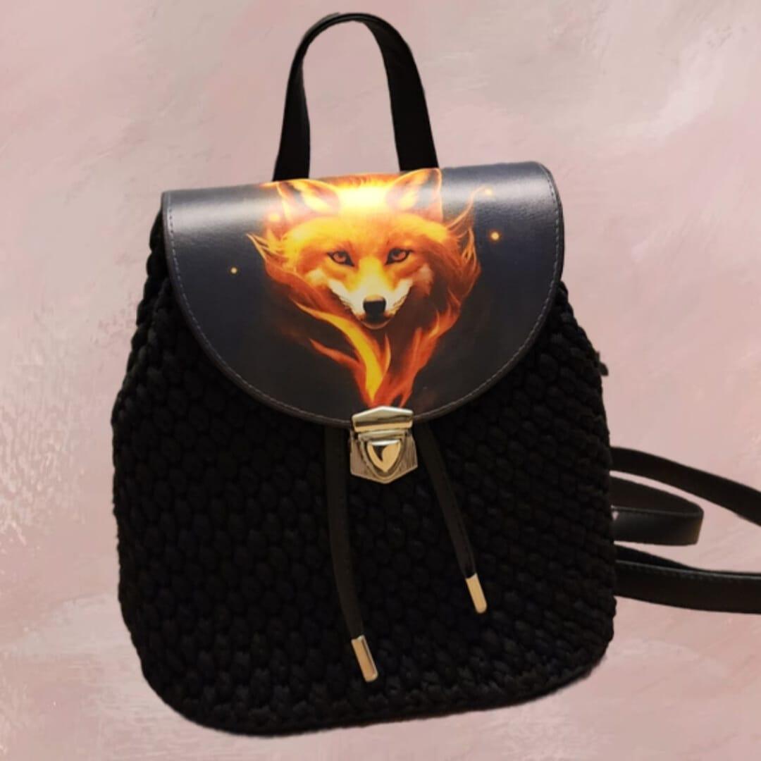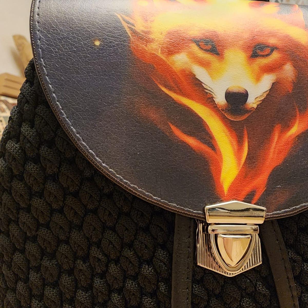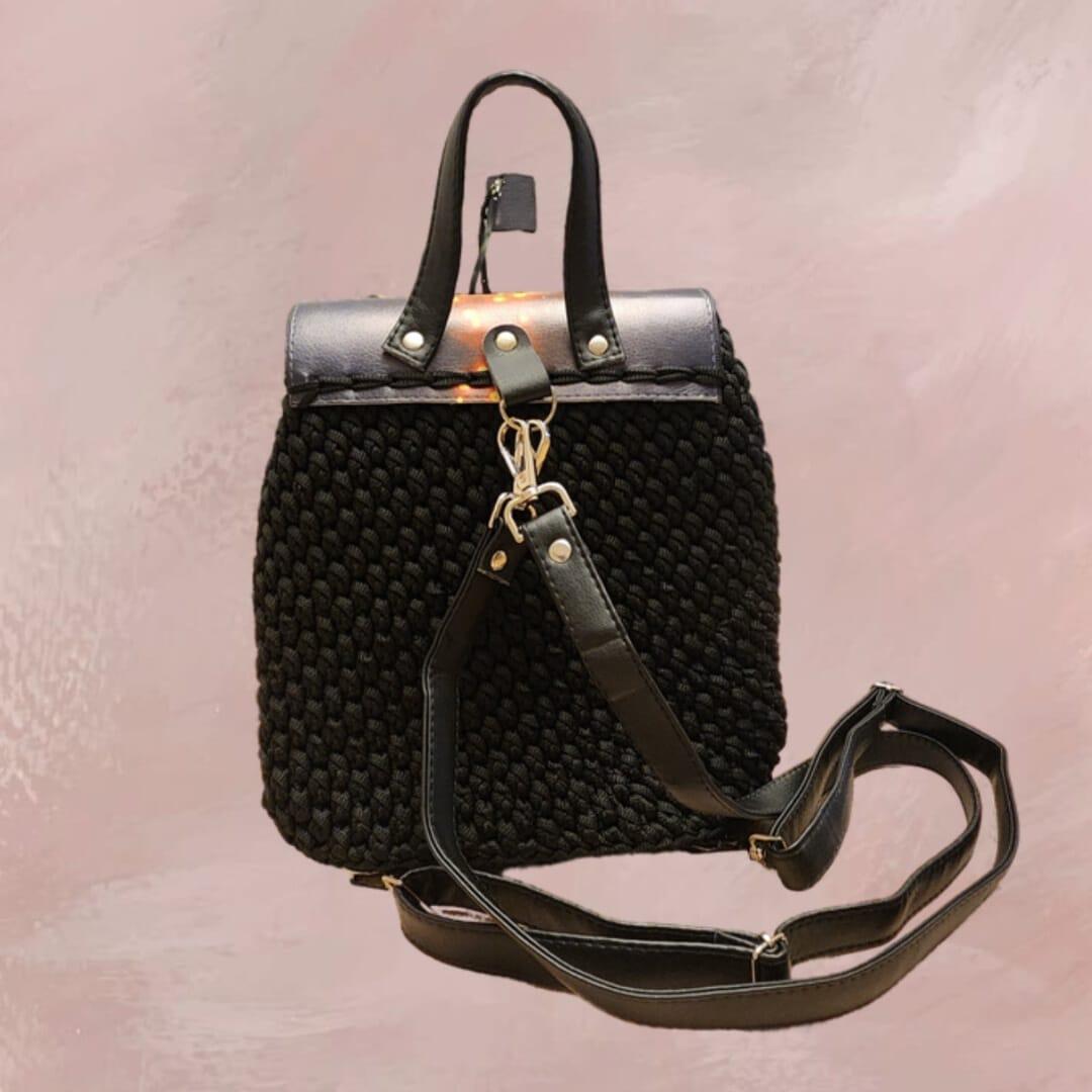 Рюкзак вязаный крючком из полиэфирного шнура.