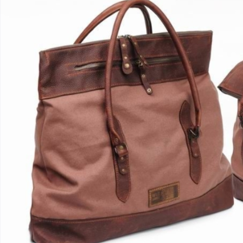 Натуральная кожа Brava Buff с эффектом Pull Up (Португалия) и полотно Canvas, цвет Cacao-Milk. Два внешних кармана на молнии. Длина ручек рассчитана на ношение "на плечо". Размер 500х160х250(350) мм.