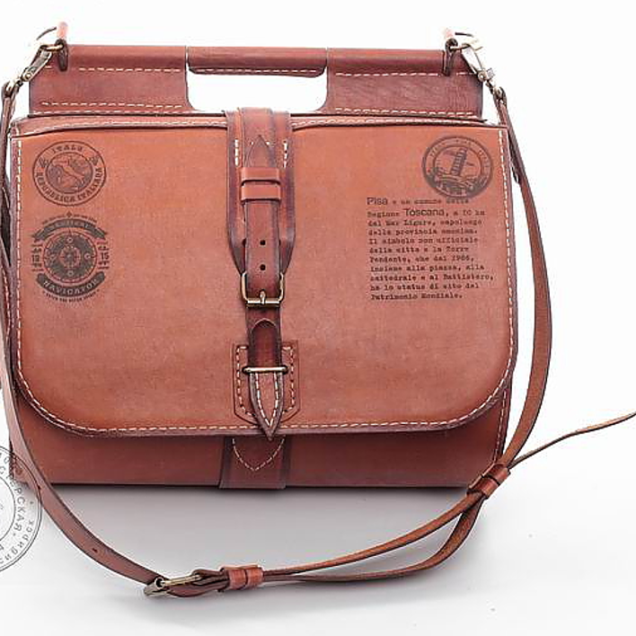 Сумка выполнена из кожи Pola Martina Sun 1.4-1.6 мм. Фурнитура цвет латунь. Наплечный ремень регулируемый. Корпус сумки усилен кожкартоном и спилком толщиной 1,2 мм. Ручной шов. Размер 190х300 мм.