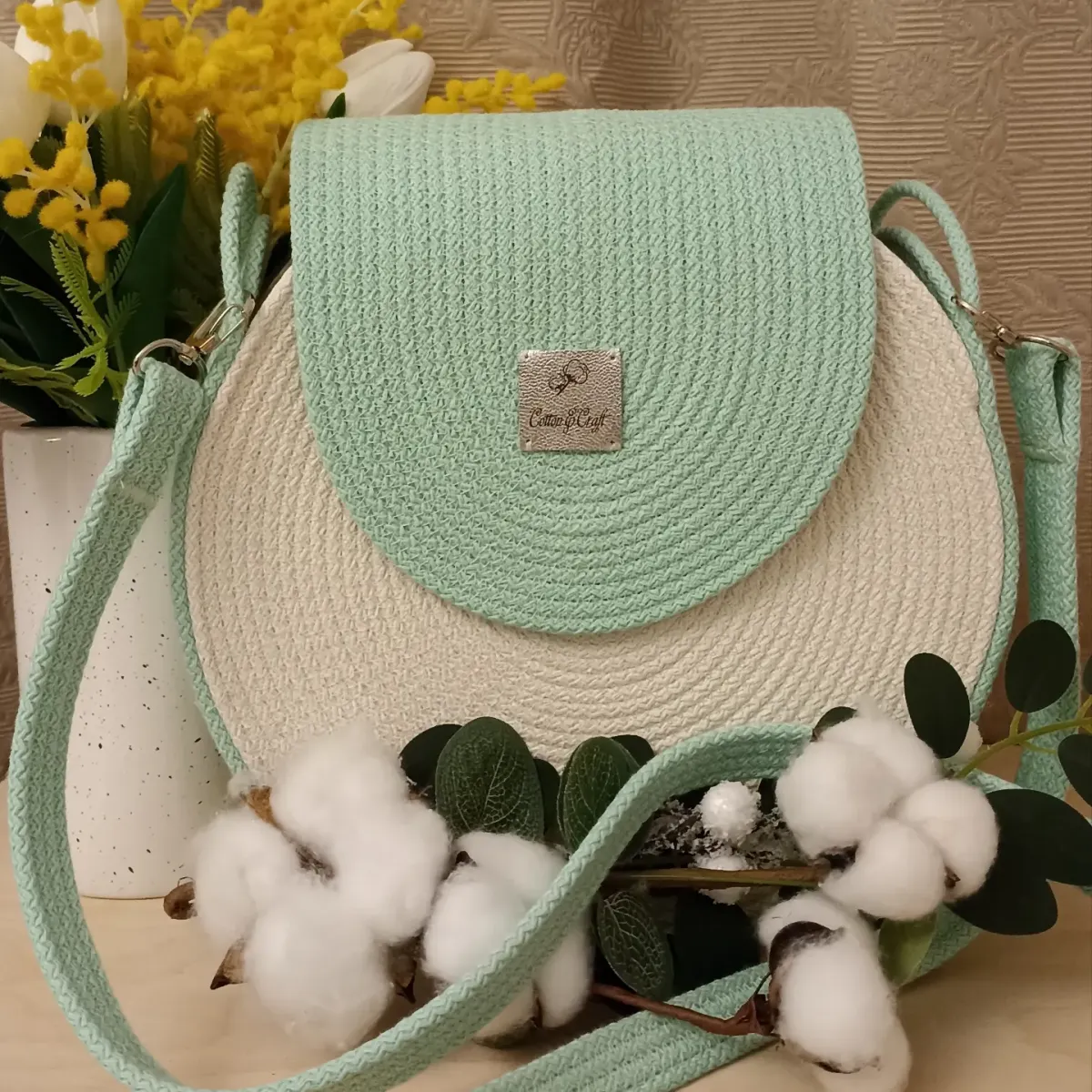 Сумка круглая выполнена на заказ из хлопкового шнура