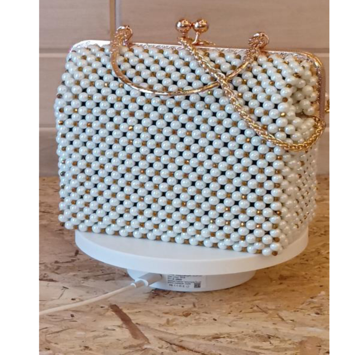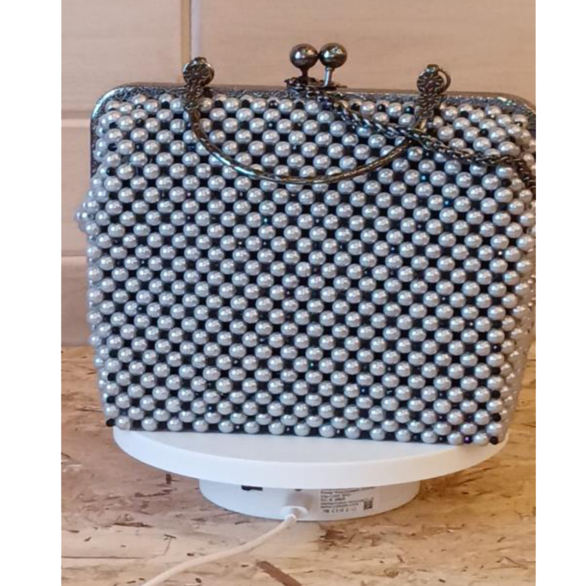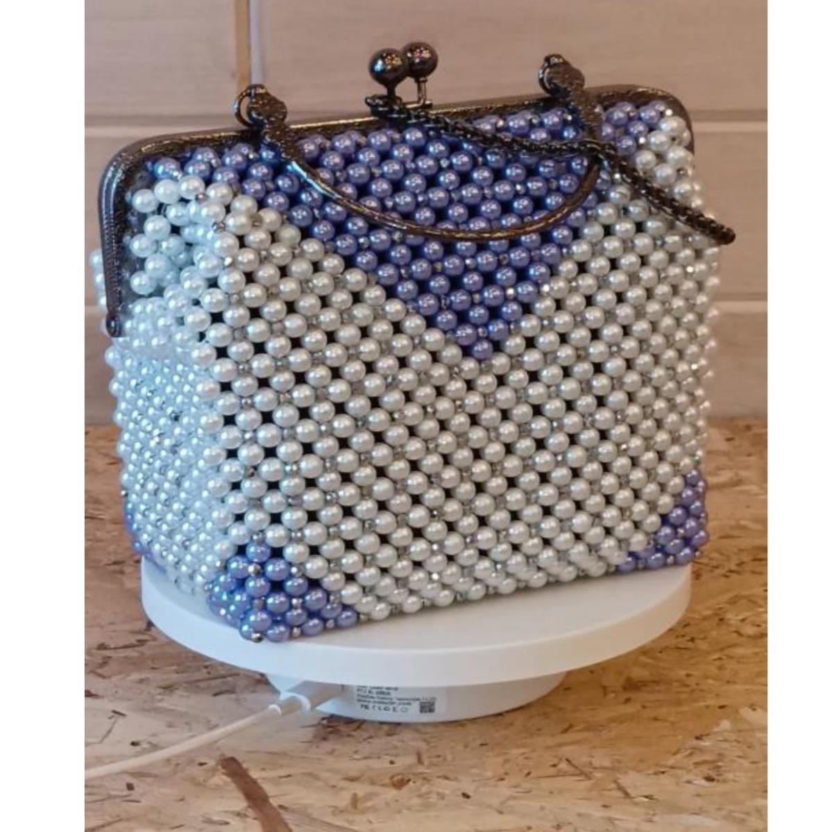 Сумочки жемчужных из бусин 8мм серого, сиреневого и белого цветов на цепочке 120 см, без подкладки.