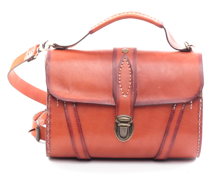 Фурнитура цвет латунь. Наплечный ремень регулируемый, съёмный. Отшивка строчек выполнена ручным стежком.