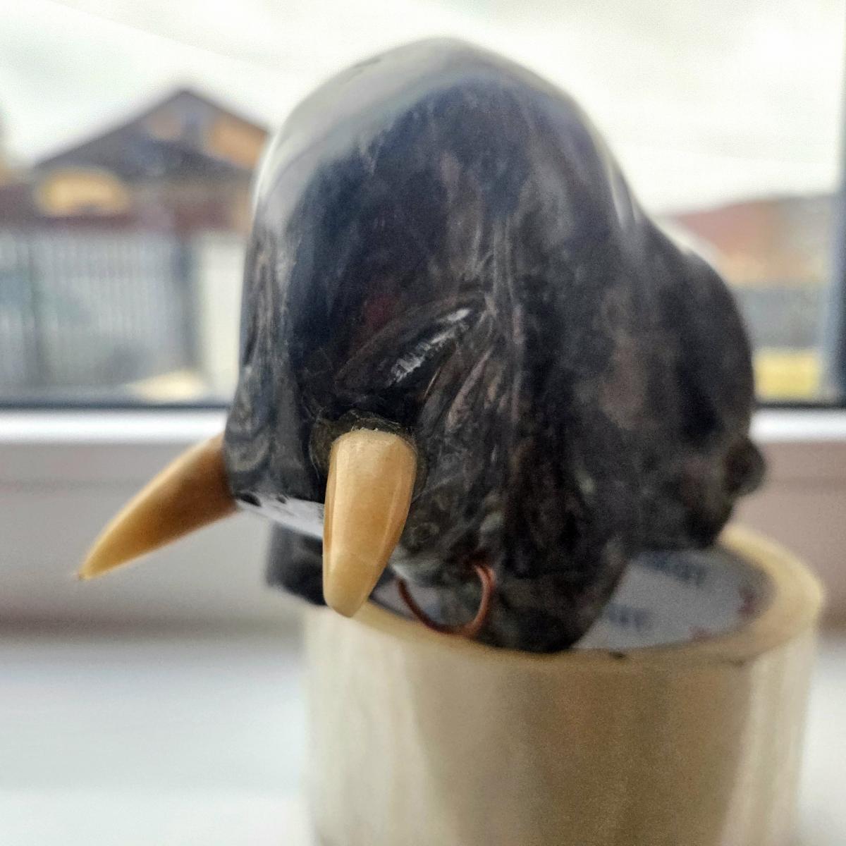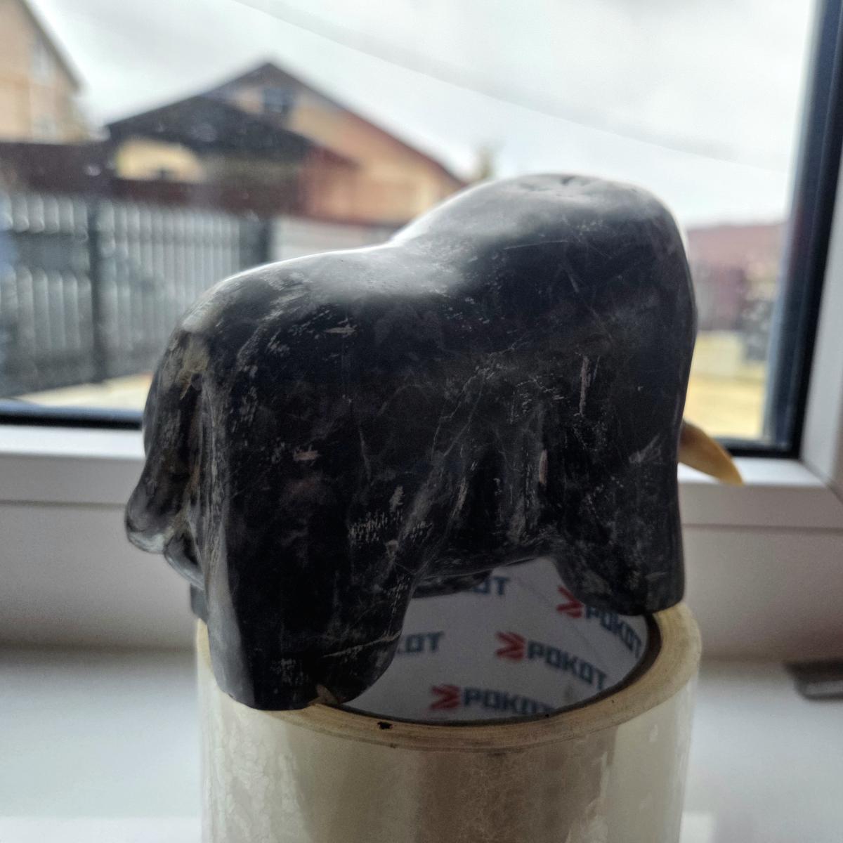 Статуэтка быка из черного кальцита - антраконита. Эзотерики считают, что минерал избавляет от чувства безысходности, дает надежду в трудной ситуации, смягчает потери, ускоряет процесс адаптации к новым условиям, в целом способствует восстановлению, возрождению, омоложению.
