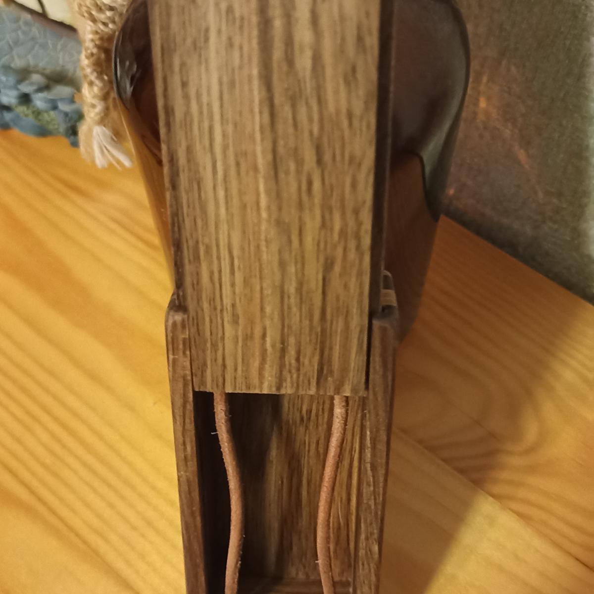Прекрасная деревянная коробка оригинальной конструкции легко выполнит функции портсигара. Система запирания обеспечит полную сохранность содержимого. Внутренние размеры 88, 36,5 14 мм. Материал - грецкий орех. Покрытие - льняное масло, пчелиный воск. Кожанный шнур из кожи бизона. Самое главное: отсутствие предупреждающих надписей, портящих настроение перед затяжкой.