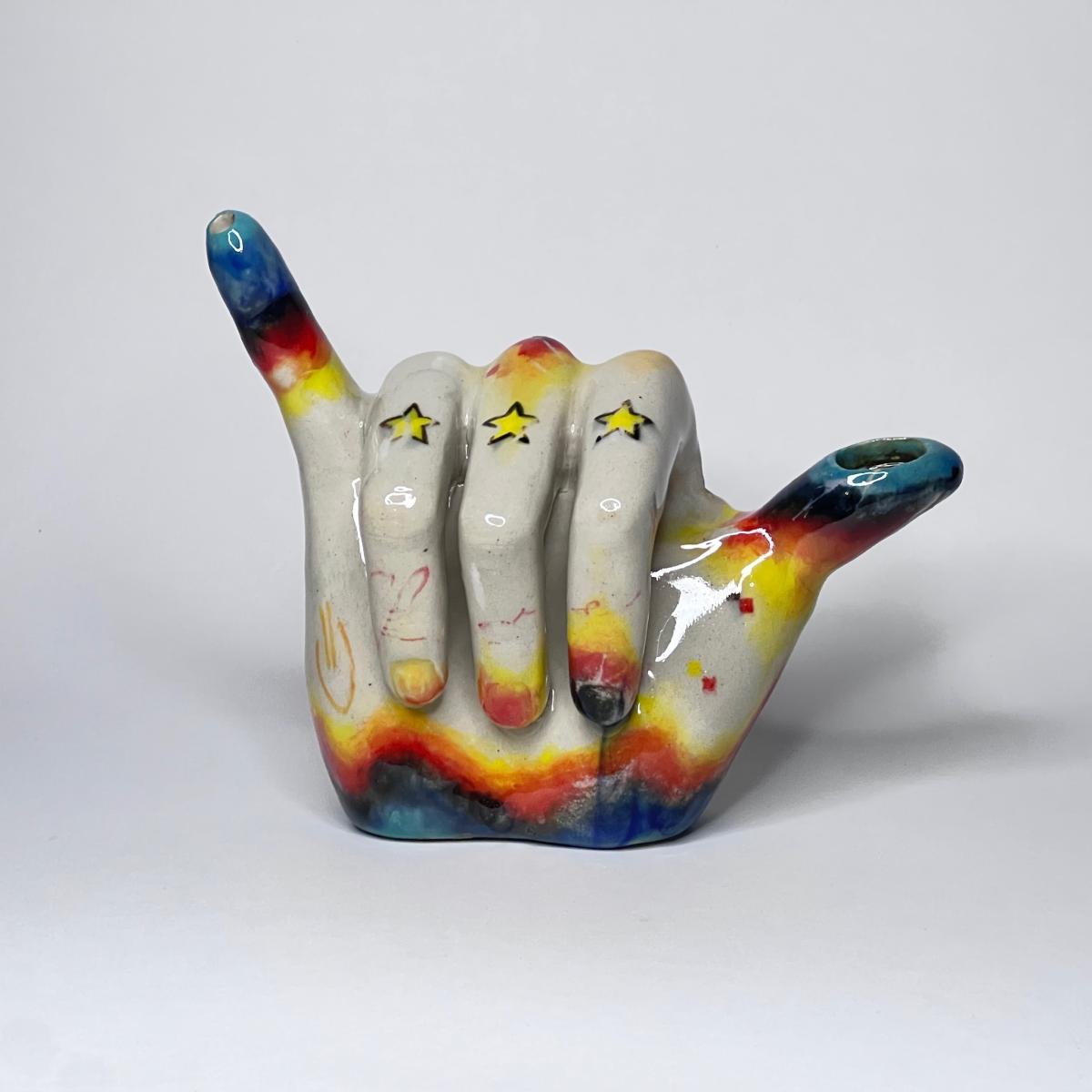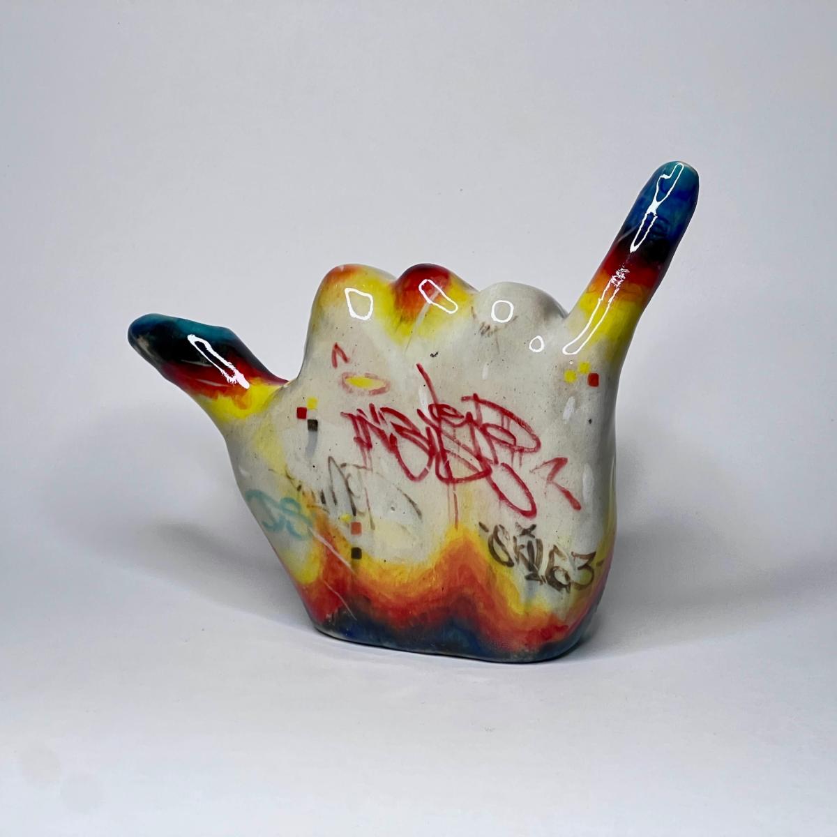 Он впервые работал с такими материалами - роспись по глине имеет свои особенности, цвета проявляются только после обжига, а изначально выглядят иначе. Это добавляет определенные сложности при создании рисунка. И несмотря на это, получилось круто, мне результат понравился