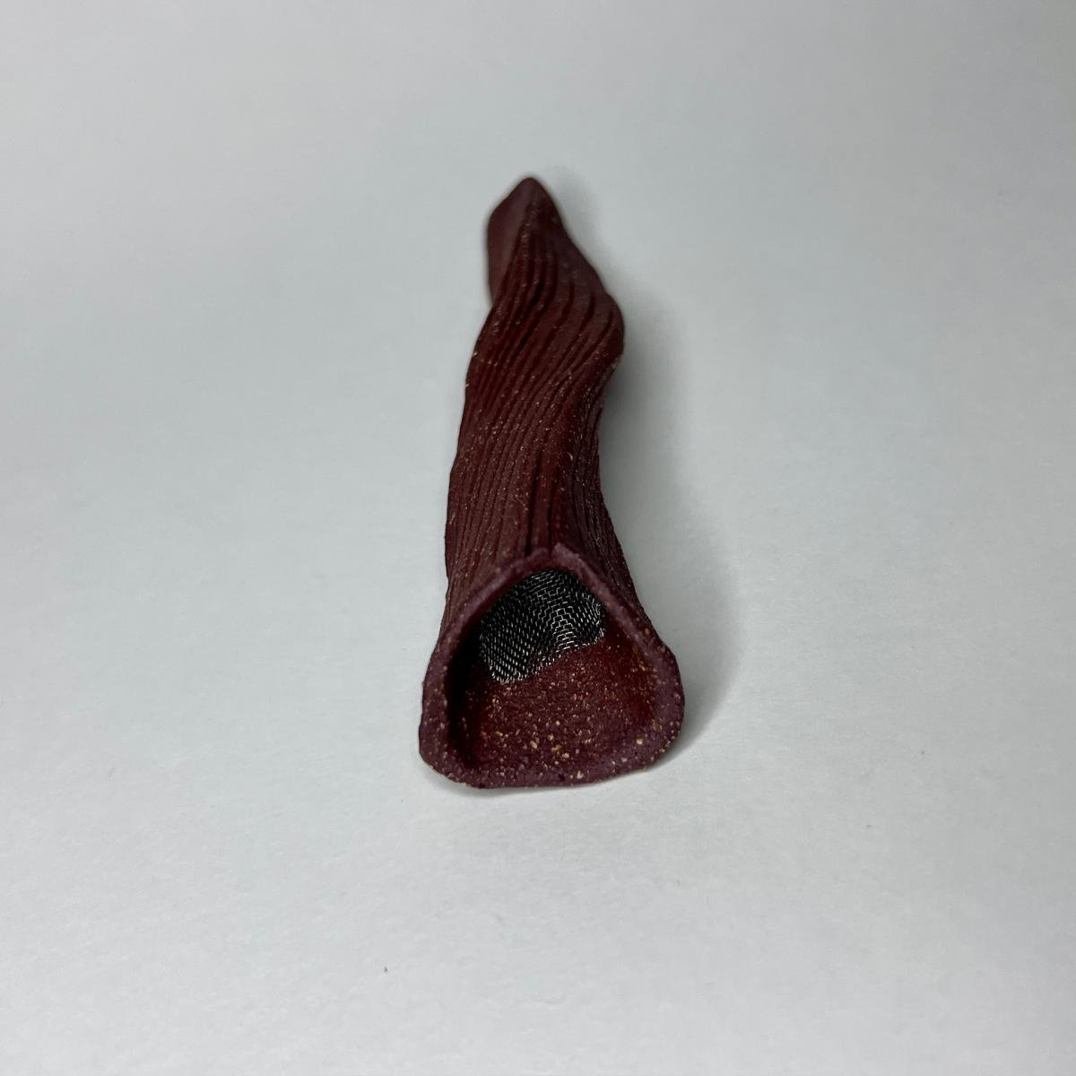 Компактная трубка ручной работы. Сделана из высокопрочной коричневой глины
