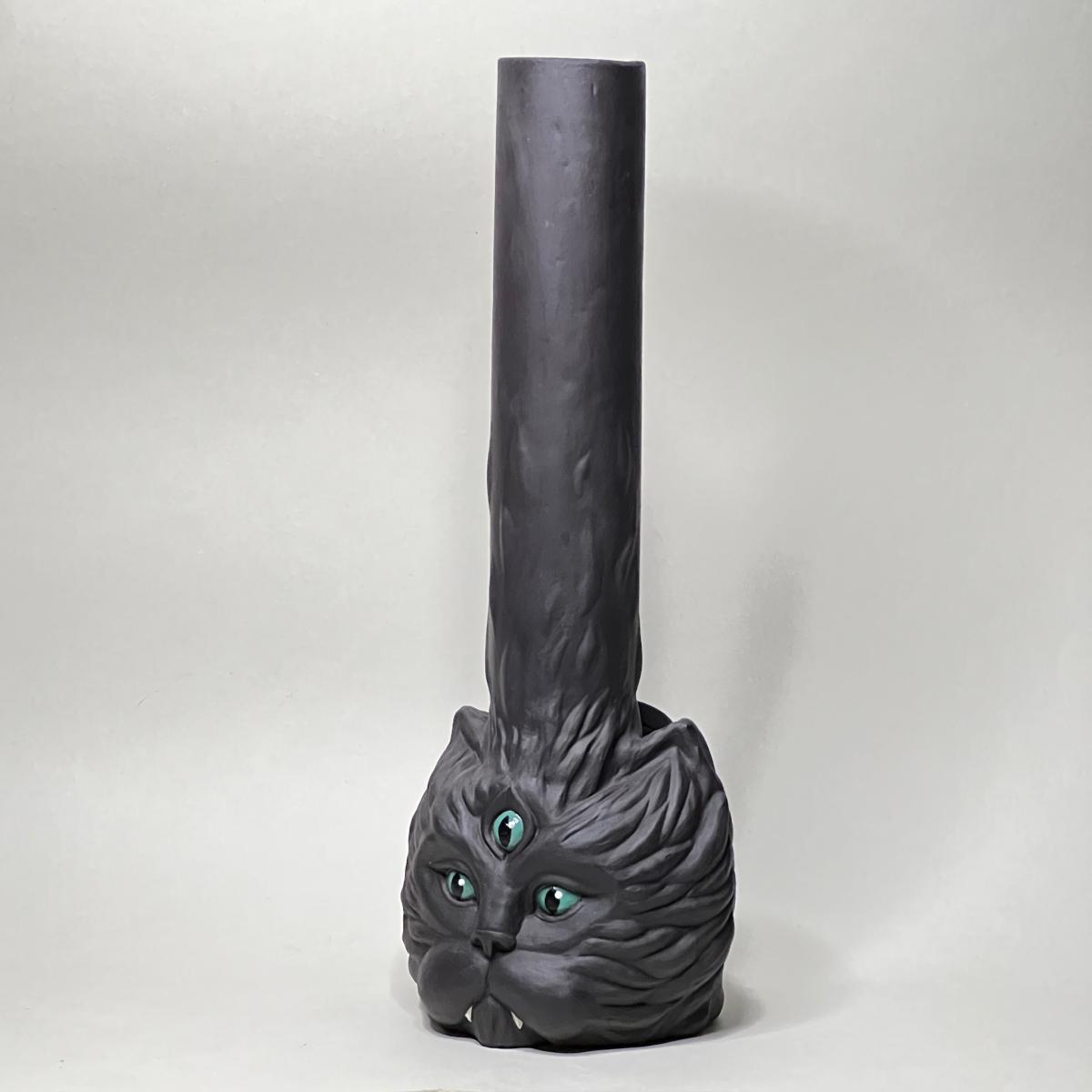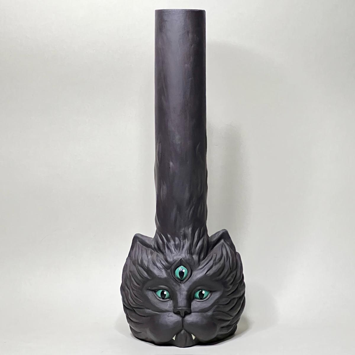 Уже ставший классикой - кот с тремя глазами. Выполнен из высокопрочной черной глины, а внутри покрыт пищевой глазурью