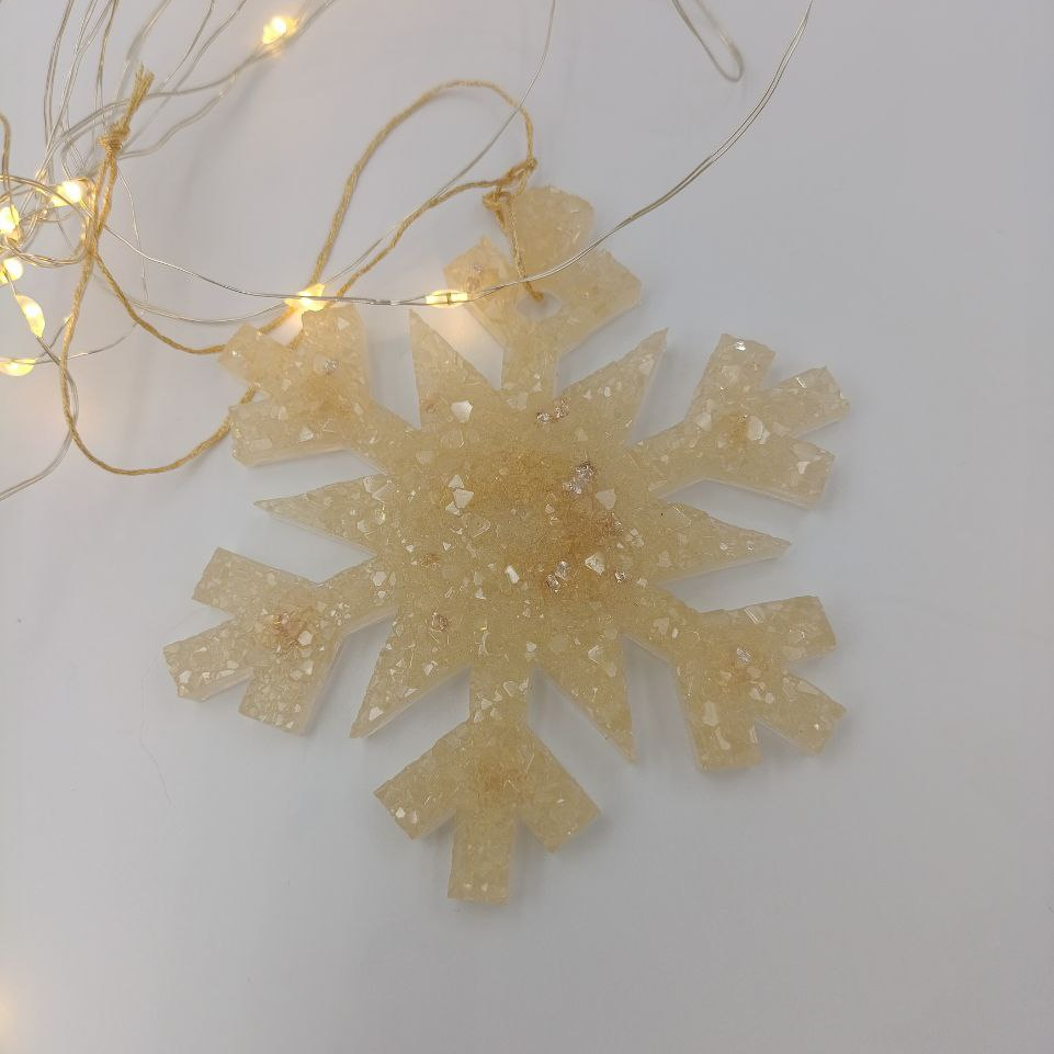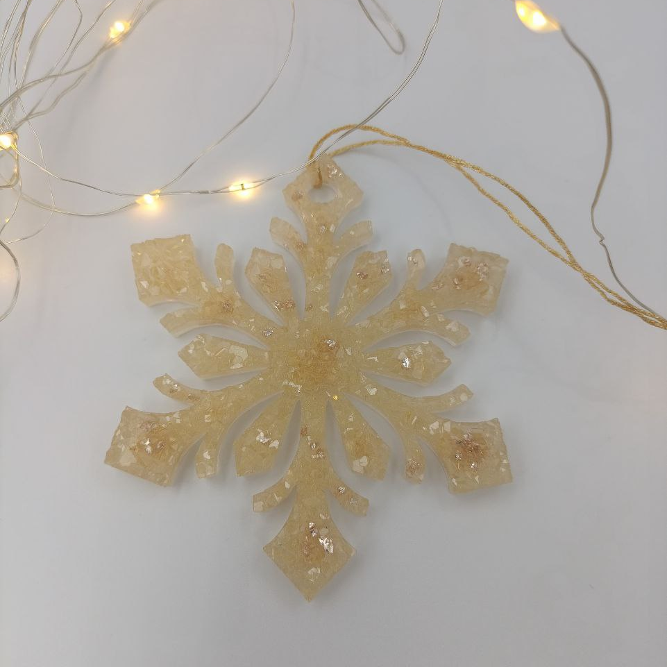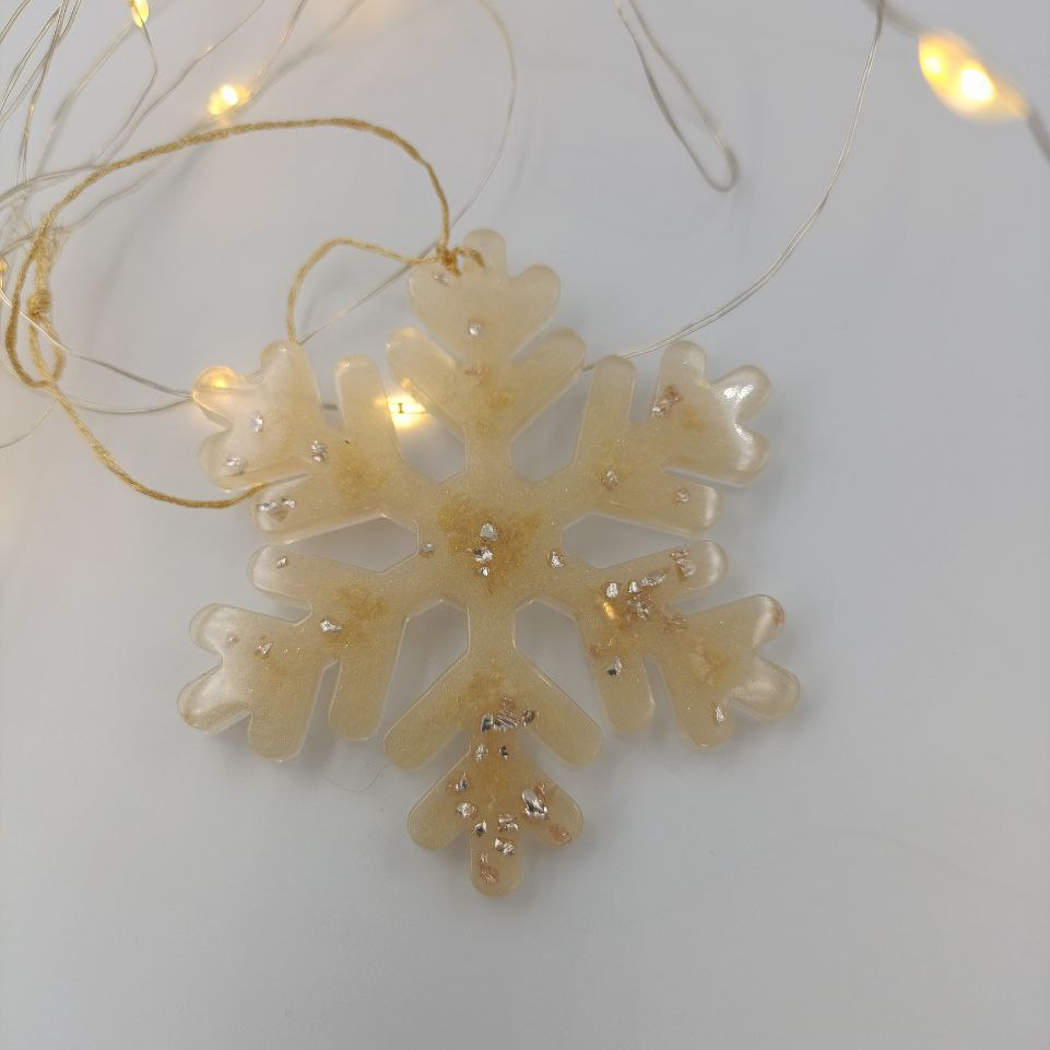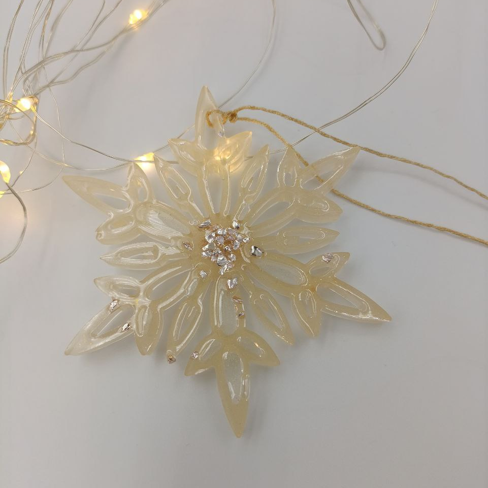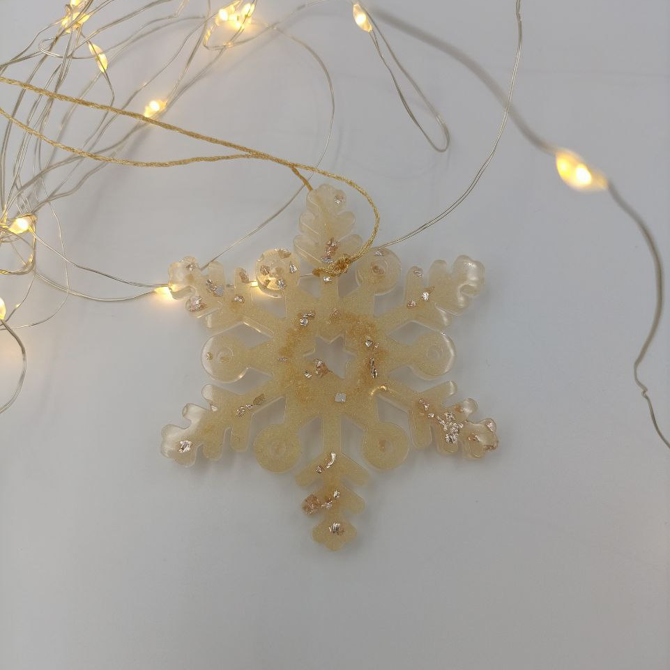 Ёлочная игрушка в виде снежинки из эпоксидной смолы - лёгкого и долговечного материала. В примечании к заказу напишите порядковый номер фотографии для получения конкретного цвета и формы. Возможно изготовление на заказ любого цвета.