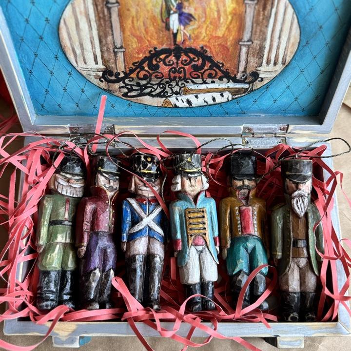 солдатики из дерева в деревянном расписном коробе.
