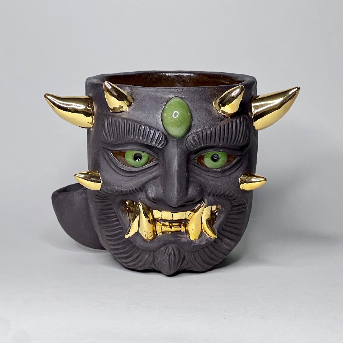 Рога и зубы покрыты 9% золотом. Кружка сделана из высокотемпературной прочной шамотной глины