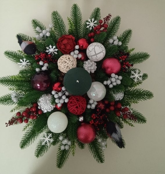 Новогодняя композиция как украшение праздничного стола или камина, создаст атмосферу уюта и тепла. Ветки ели премиум класса, особую изюминку составляют снегири с ягодками. В единственном экземпляре!