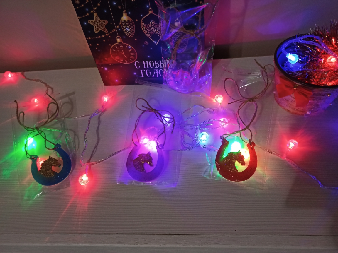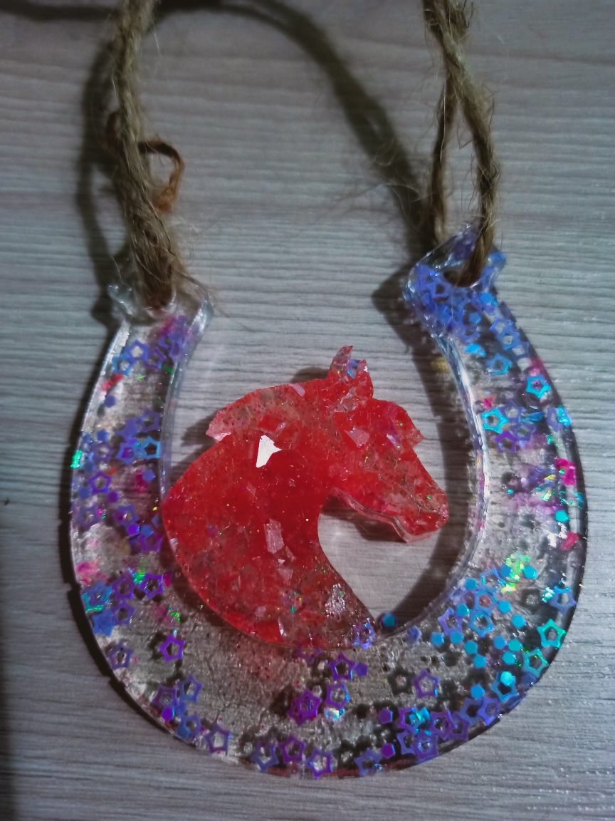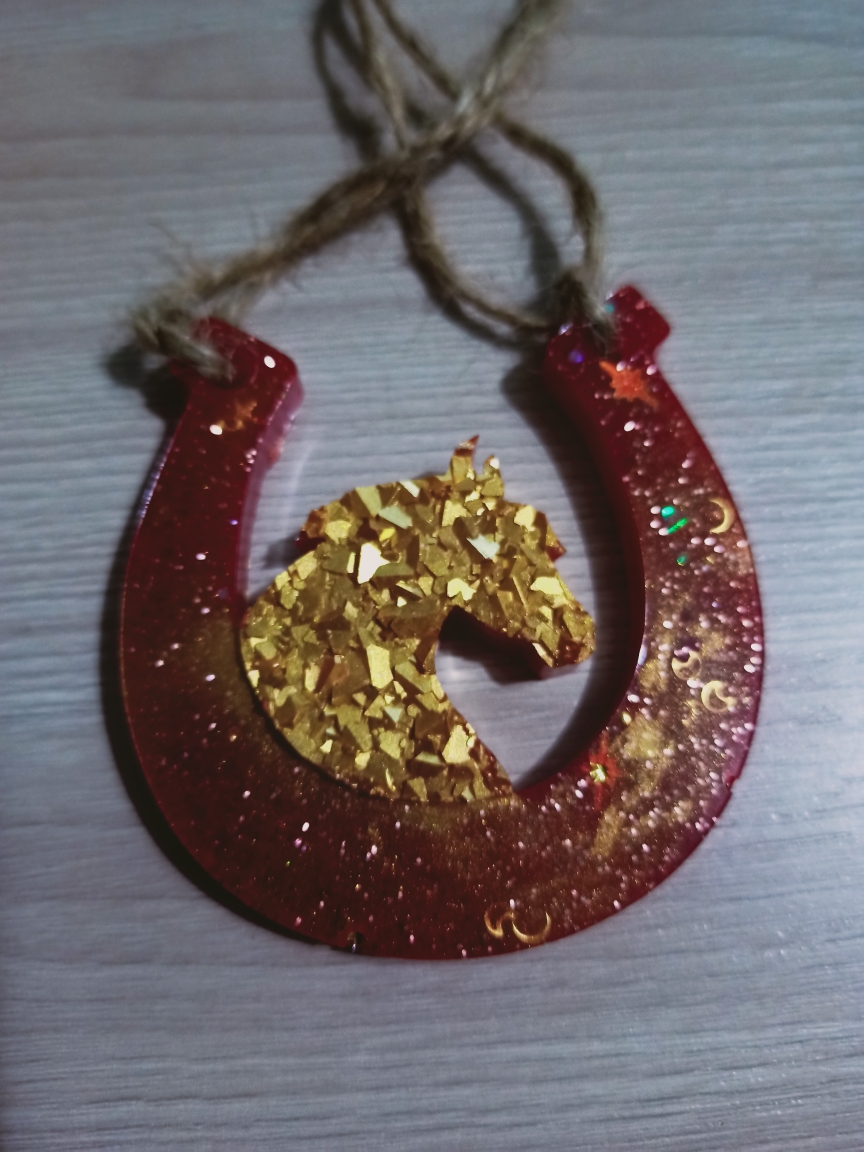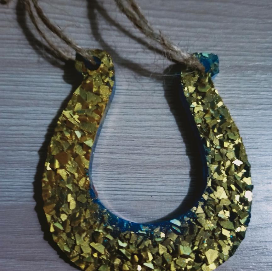 Подвеска декоративная Подкова выполнена из эпоксидной смолы с добавлением различных красителей и блесток станет прекрасным подарком к любому празднику. Возможное оформление прозрачный пакет с открыткой, коробочка с открыткой. Подвес сделан из джутового шпагата, что добавляет подарку аутентичности.