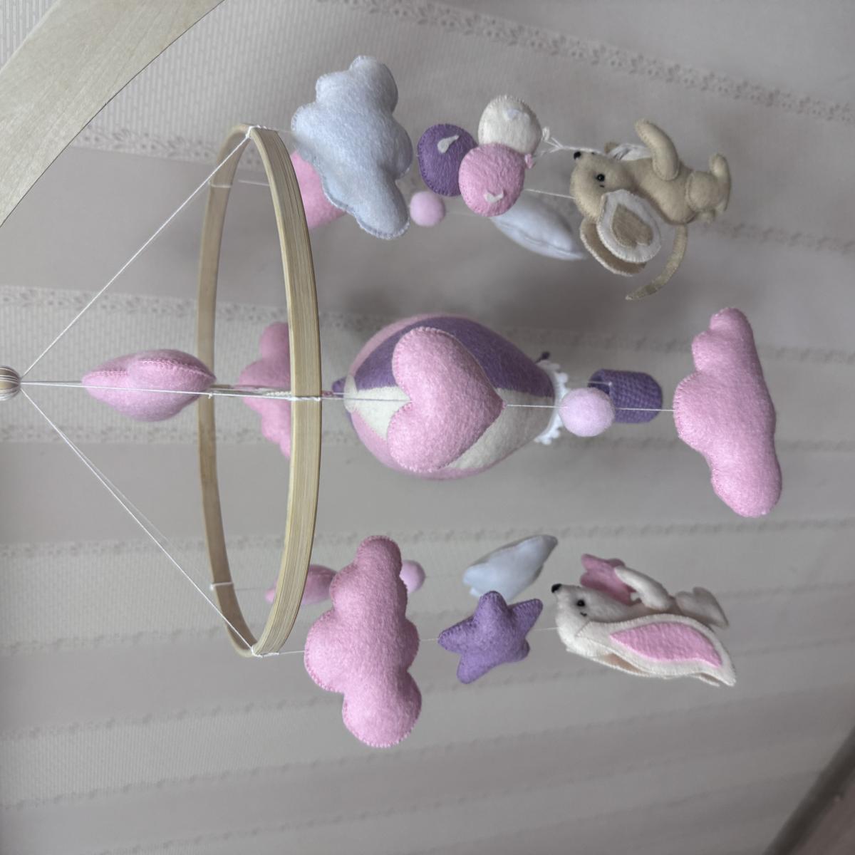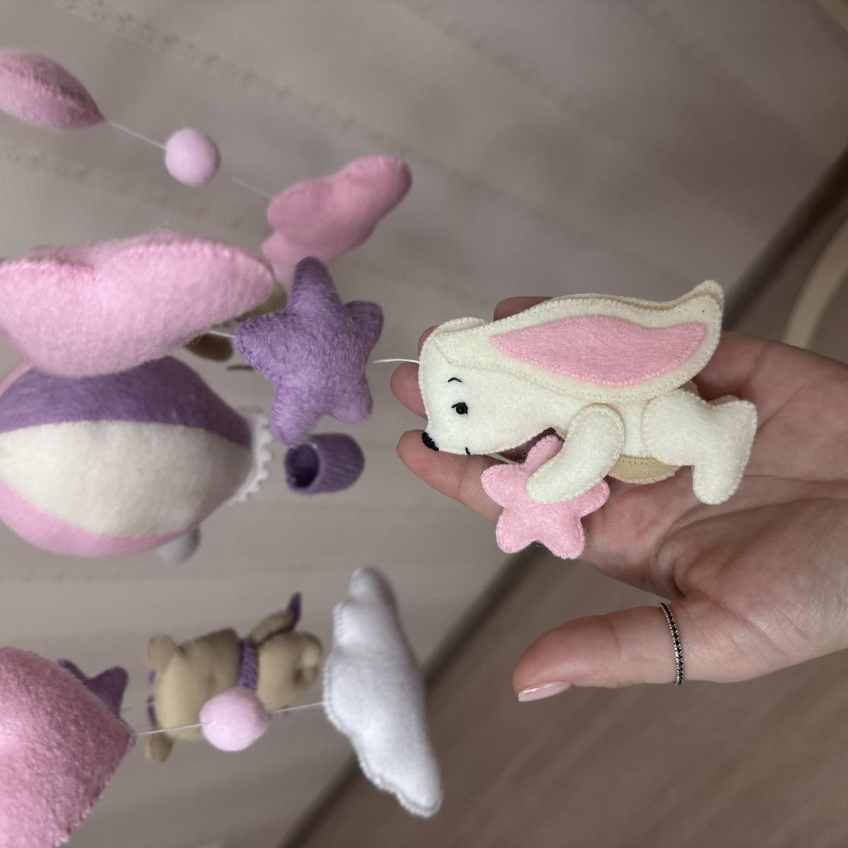 Мобиль из фетра Полет для девочки. Сшит полностью вручную.