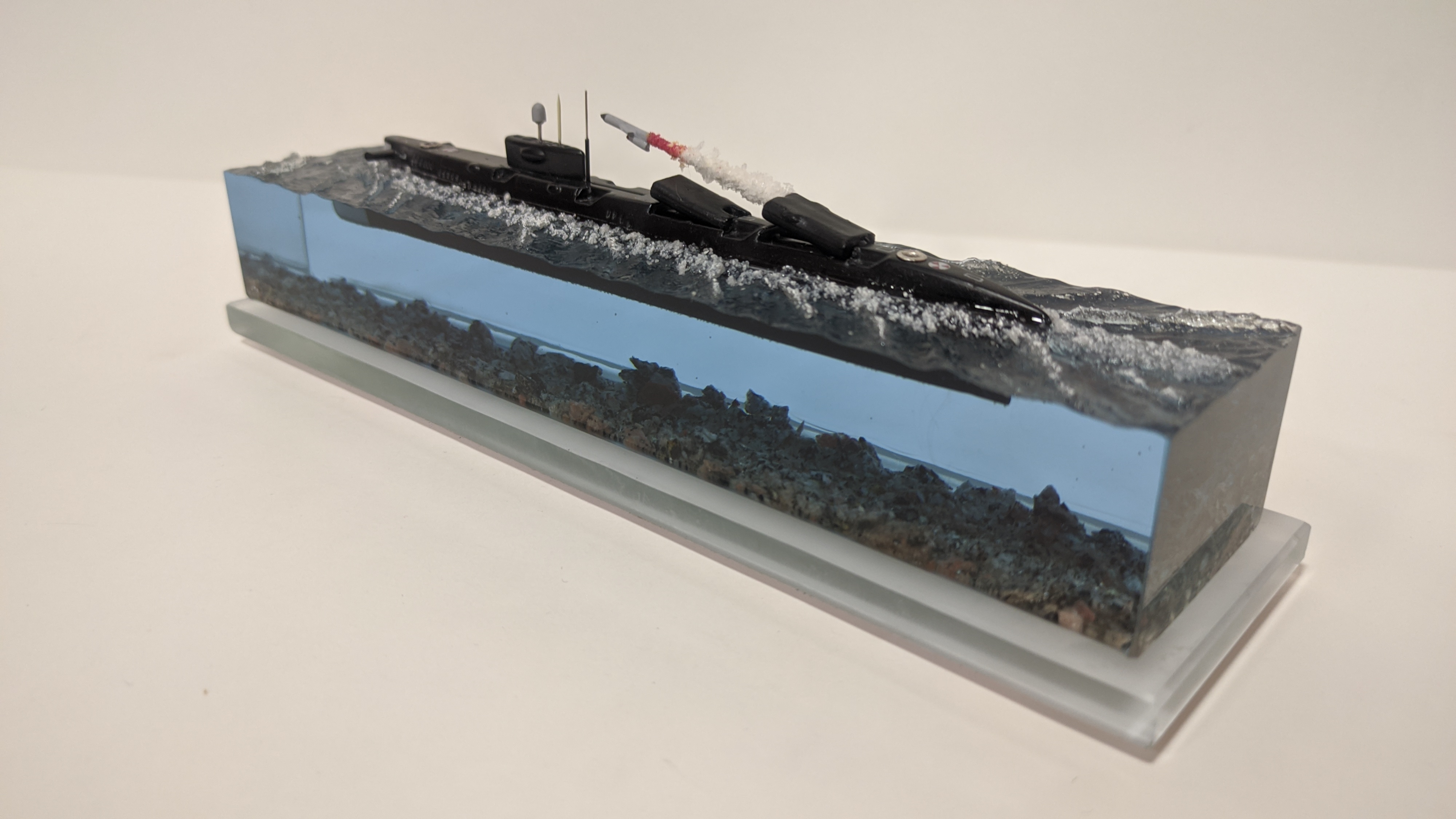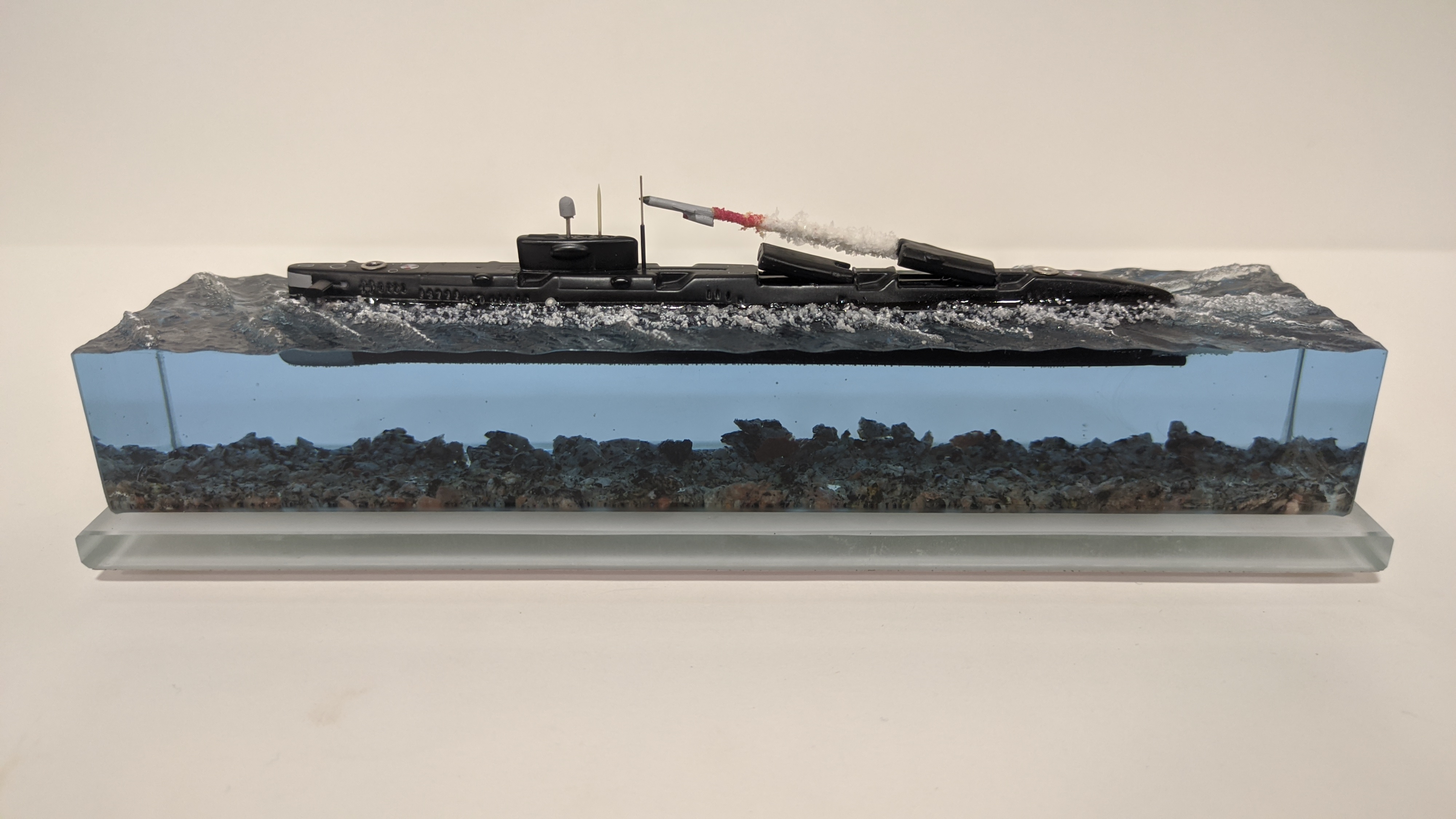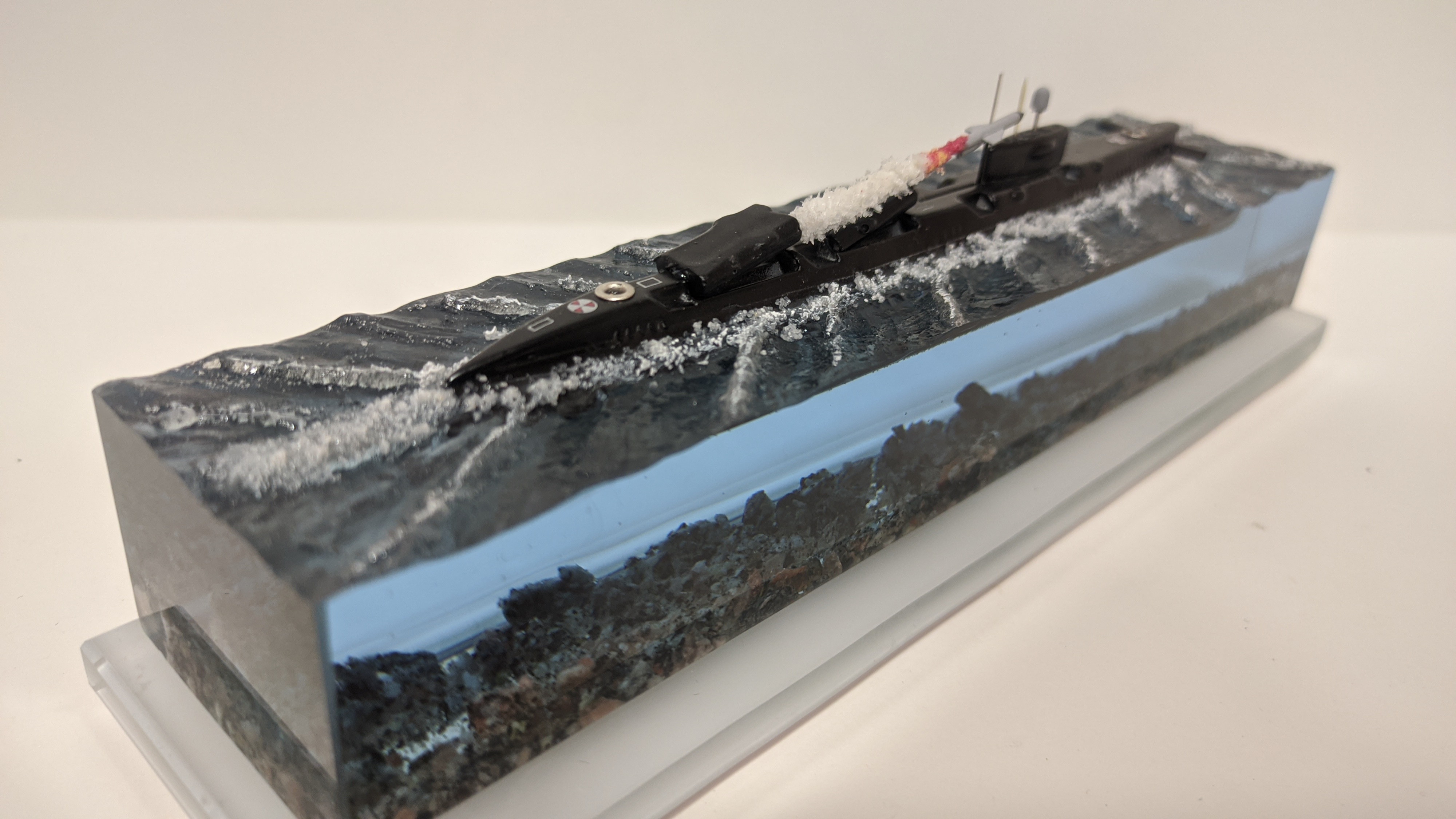 Ракетная атомная подводная лодка проекта 675 «Echo-II» с имитацией запуска крылатой ракеты П-1000 «Вулкан». Возможно добавить подсветку с аккумулятором и управлением с телефона и с пульта. (+2500р).
