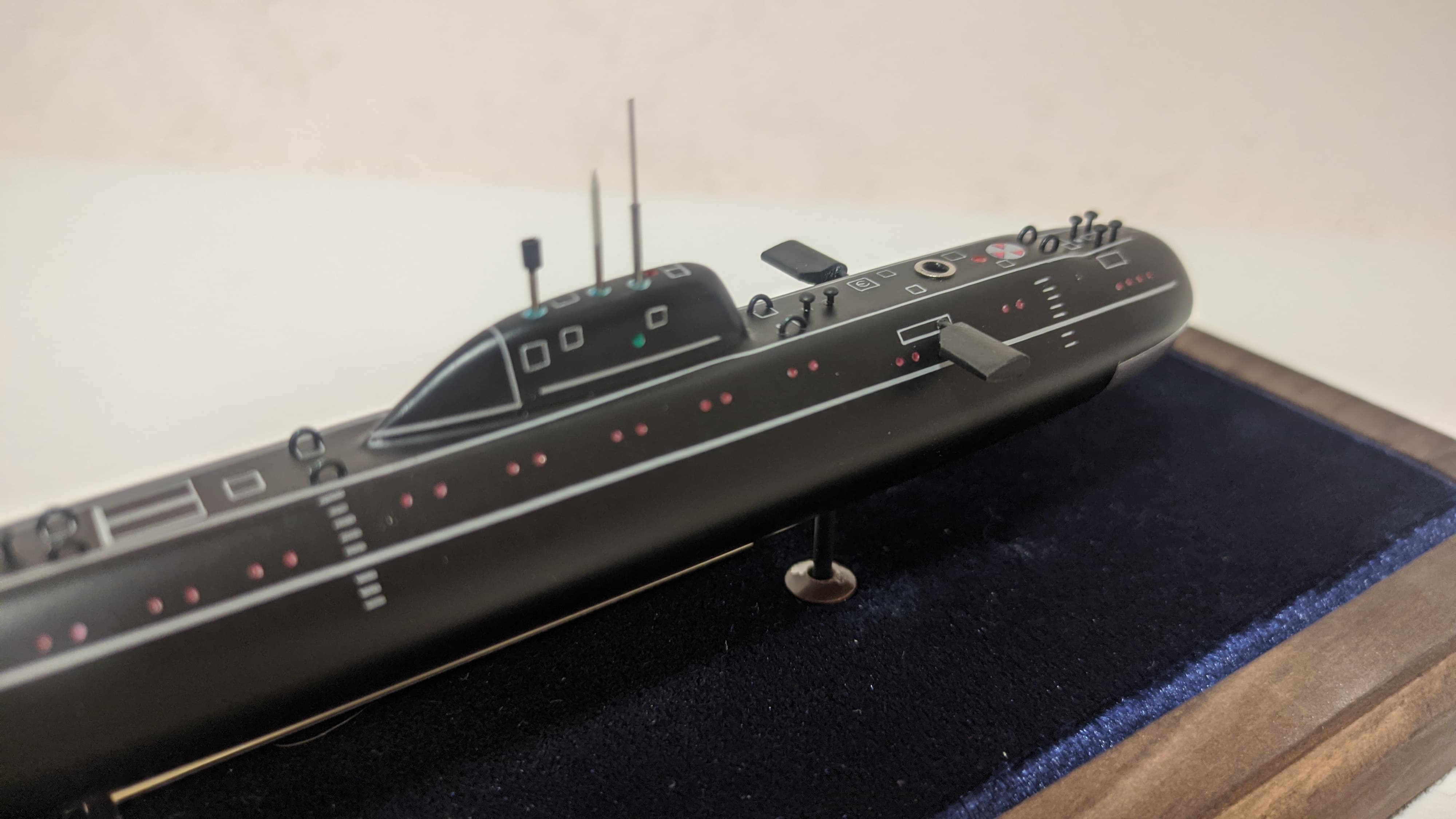 Модель имеет эксклюзивную стилистику при которой вся разметка выполнена по белому. Благодаря светлой разметке, на модели можно увидеть и показать всю сложность устройства подводной лодки , люки, шлюзы, шахты , входные двери и прочее. Элементы разметки модели прорезаются (прочерчиваются) , это не приклеенная бумага, которая со временем может просто отвалиться. Высокая детализация моделей и разметки, индивидуальный подход к каждому клиенту.