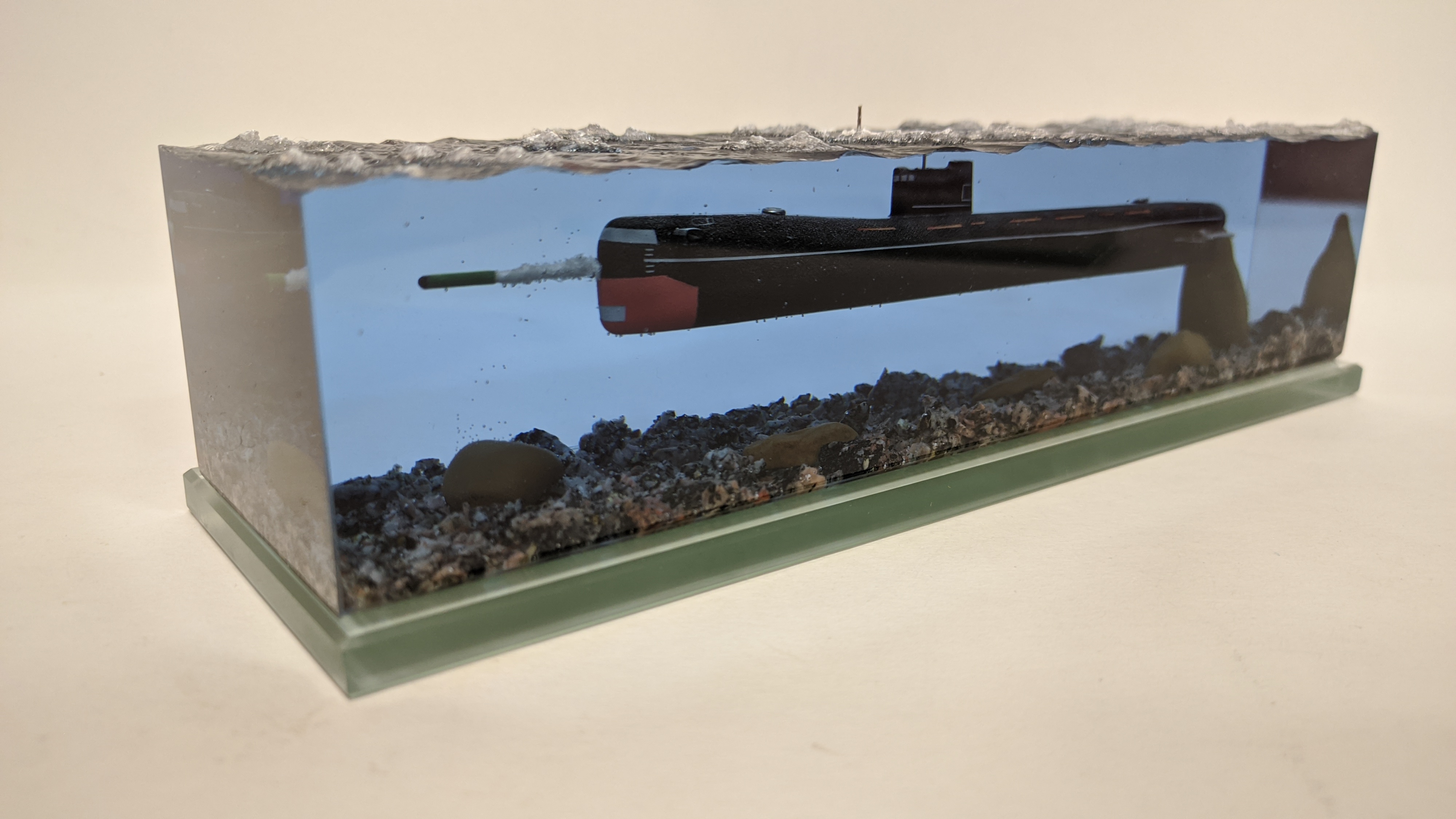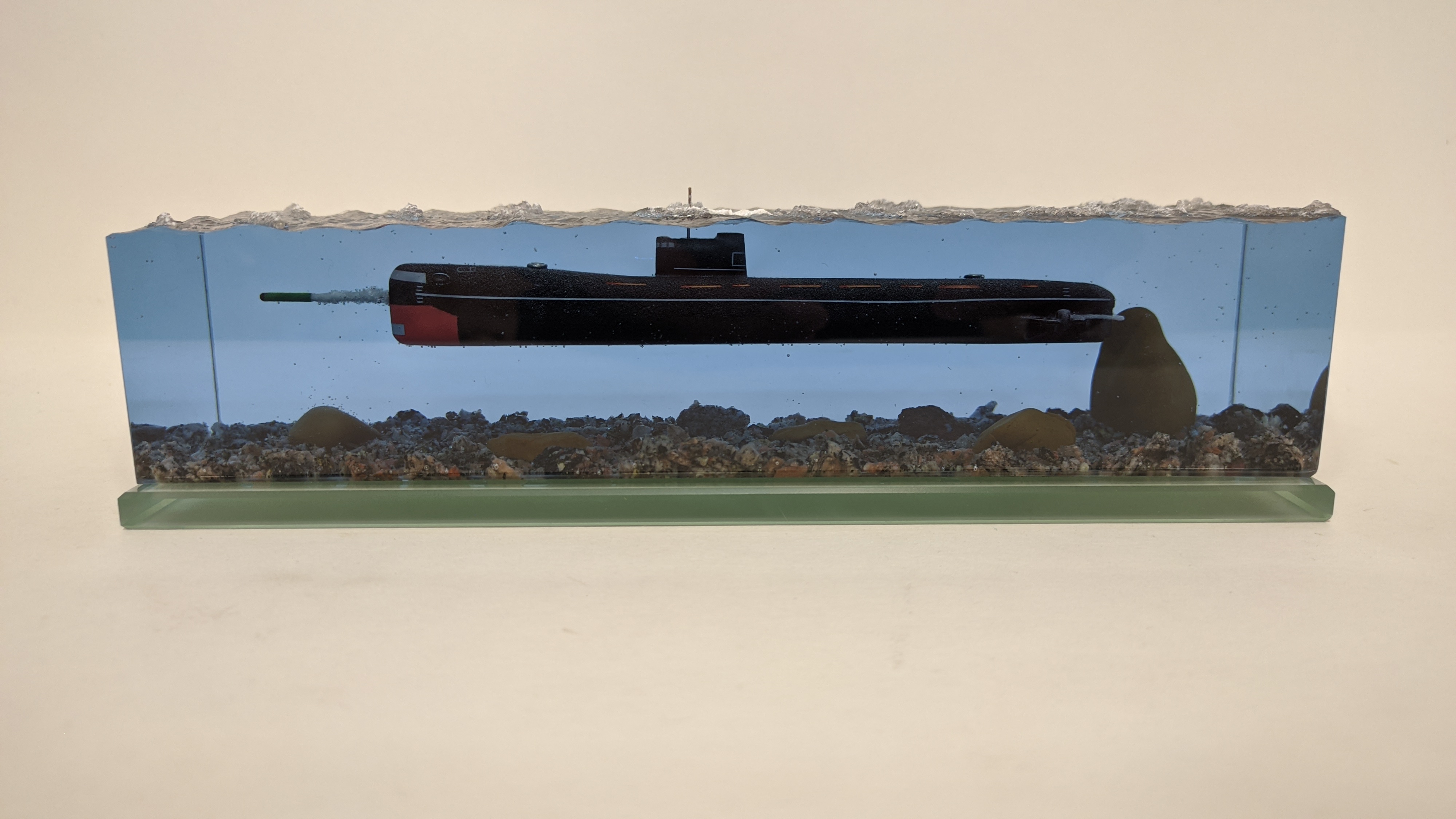 Подводная лодка в эпоксидной смоле с имитацией пуска торпеды проект 641Б "Сом". Возможно добавление подсветки с питанием от аккумулятора и управлением с телефона или с пульта.(+3000р.) Если нужны дополнительные фото или есть вопросы по модели, пишите и я на них отвечу.