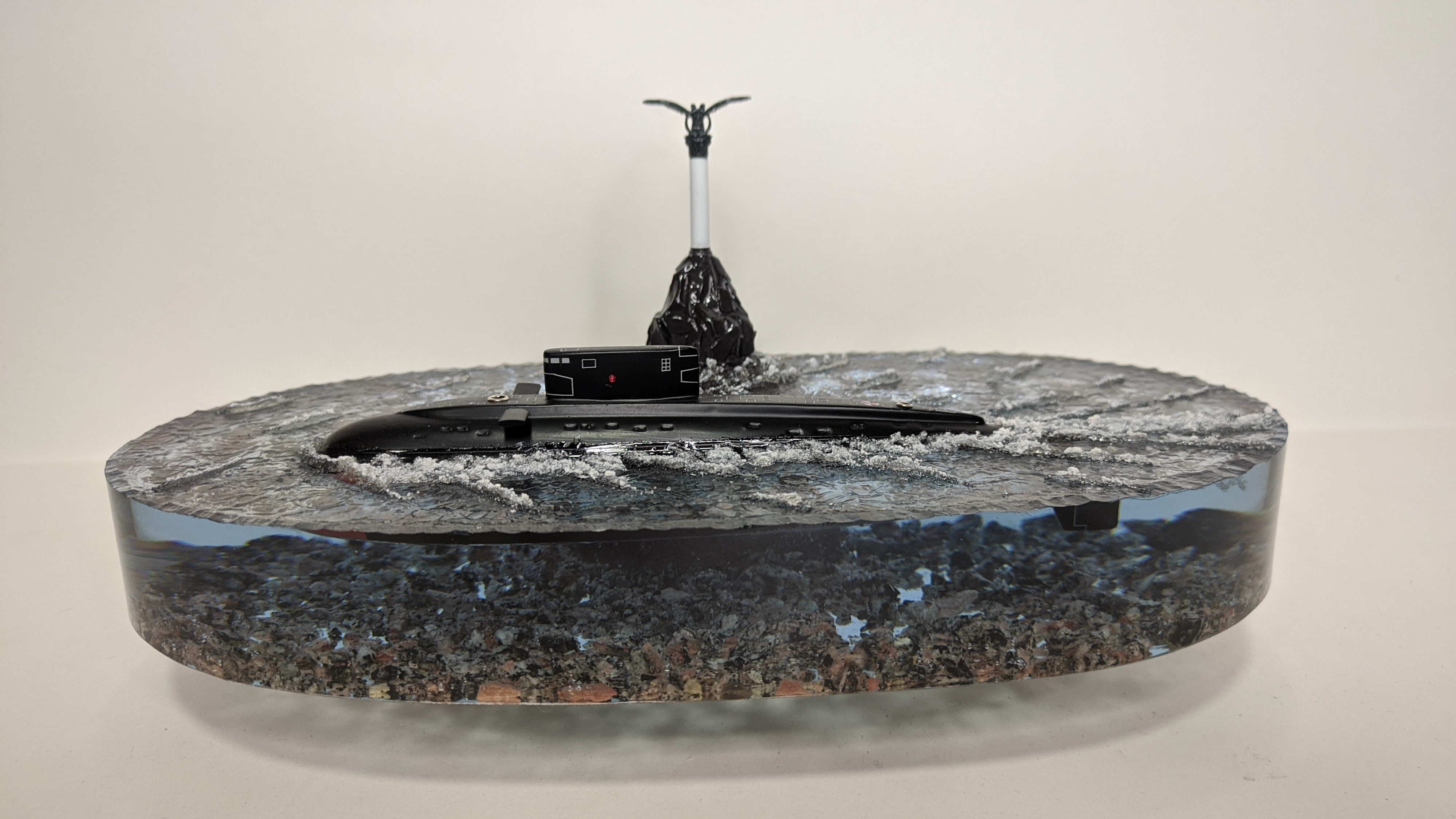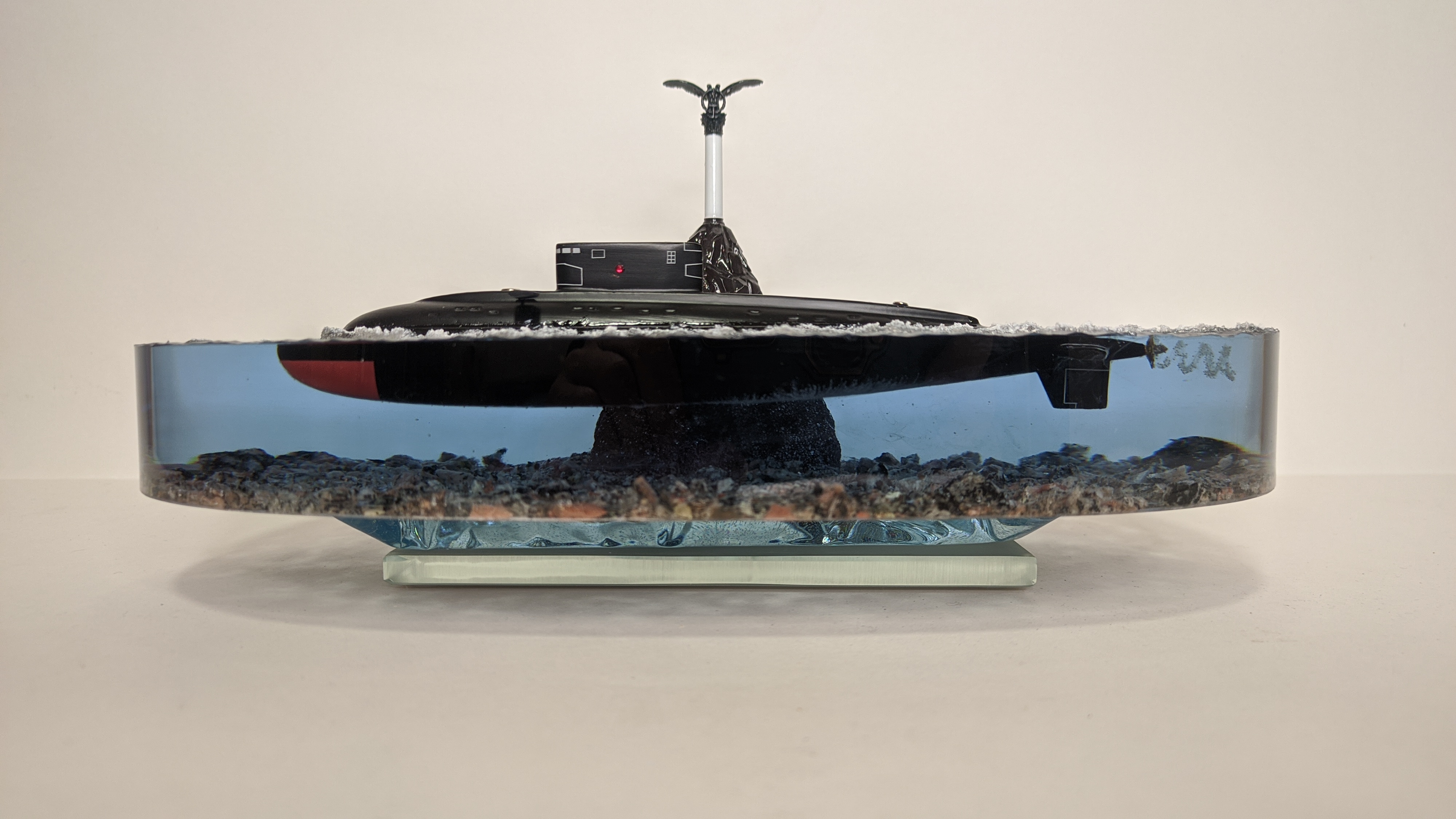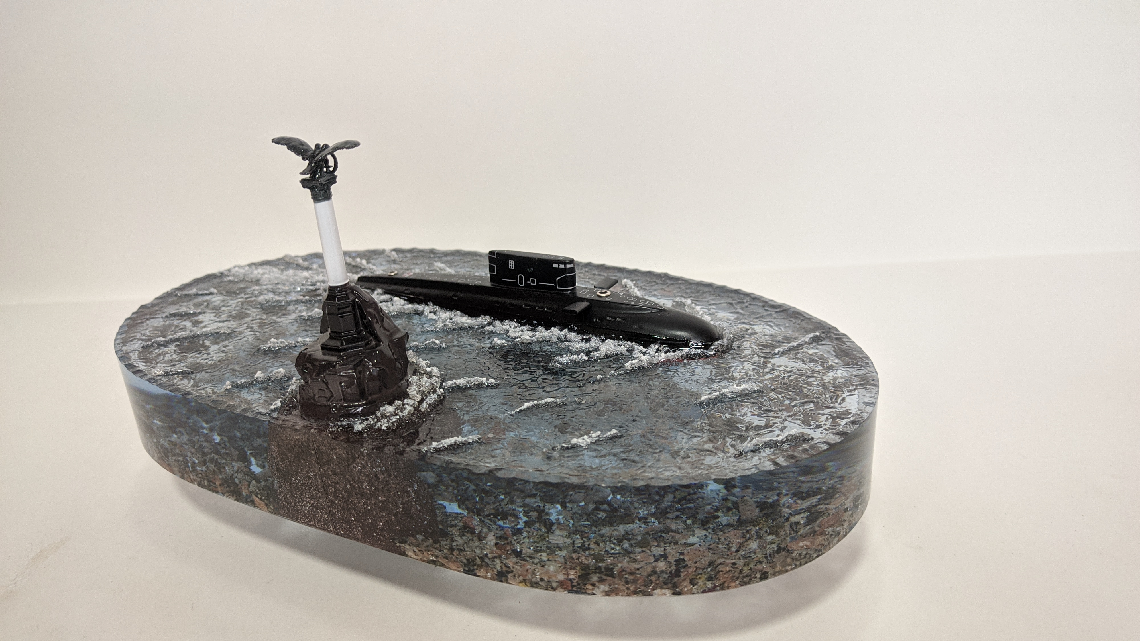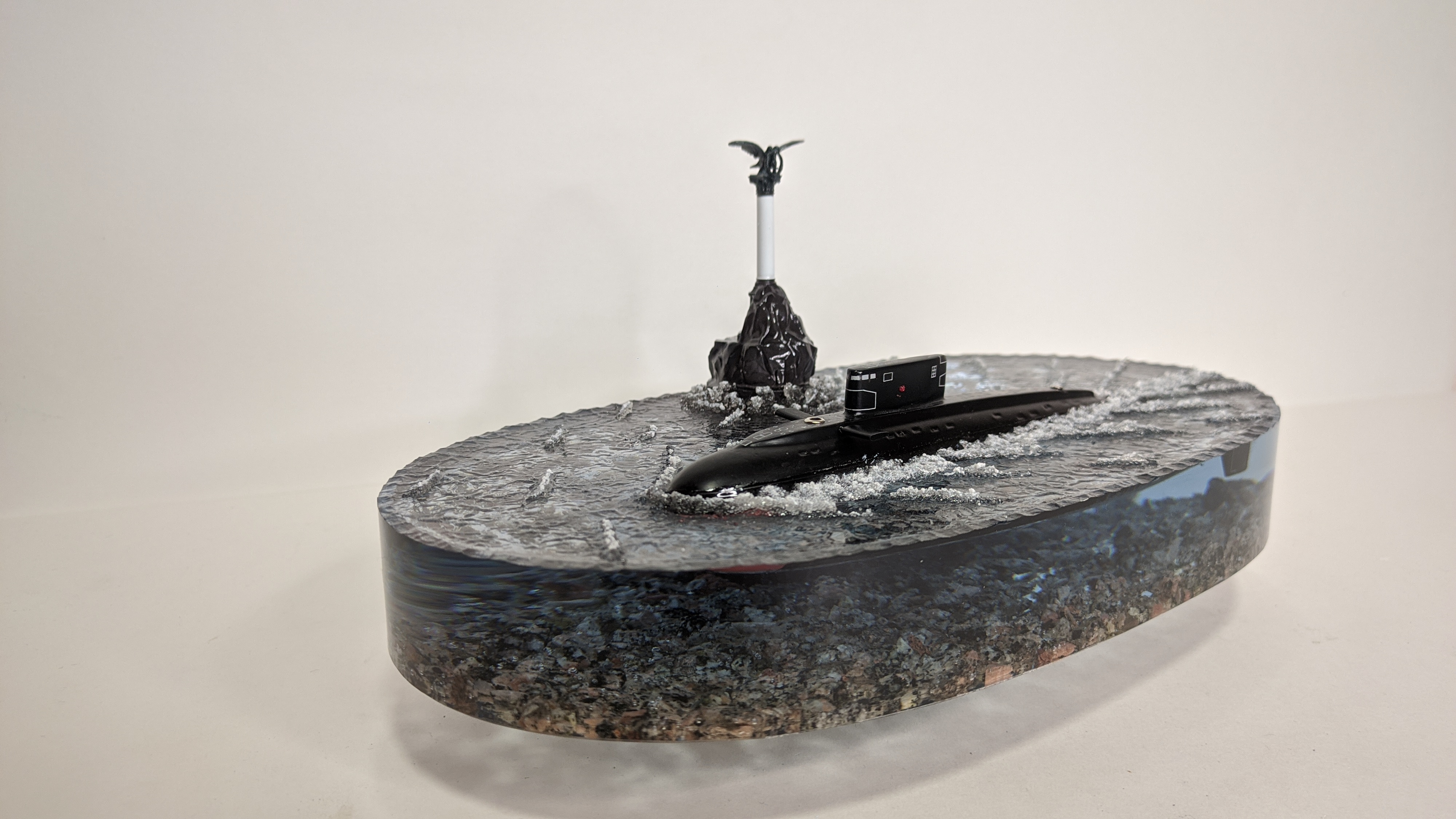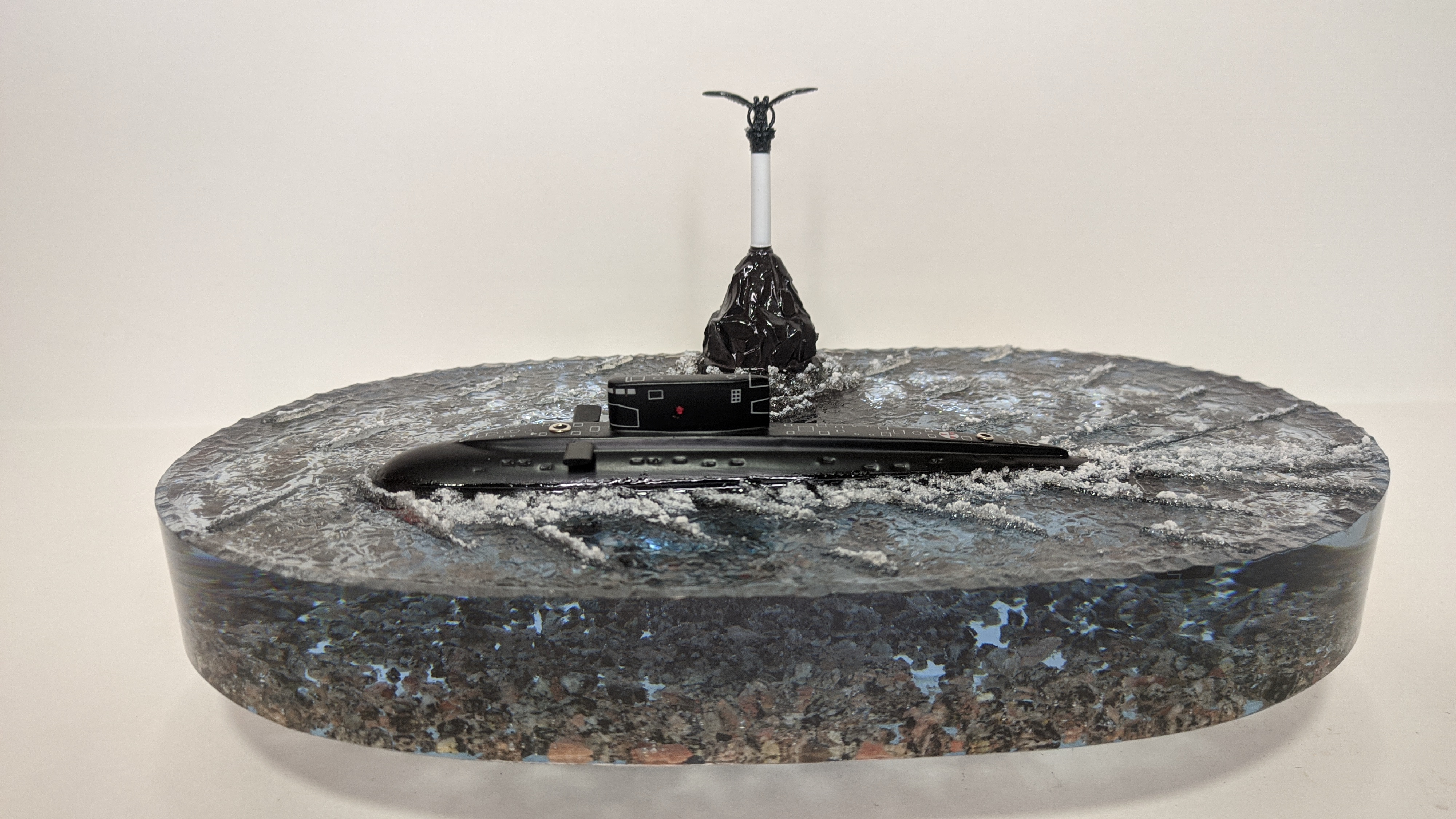 Подводная лодка 636\877 "Варшавянка", на фоне памятника затопленным кораблям в г. Севастополь ЧФ. Дно диорамы из натуральной гранитной крошки. Возможно добавление подсветки с питанием от аккумулятора и управлением с пульта (+3000р.)