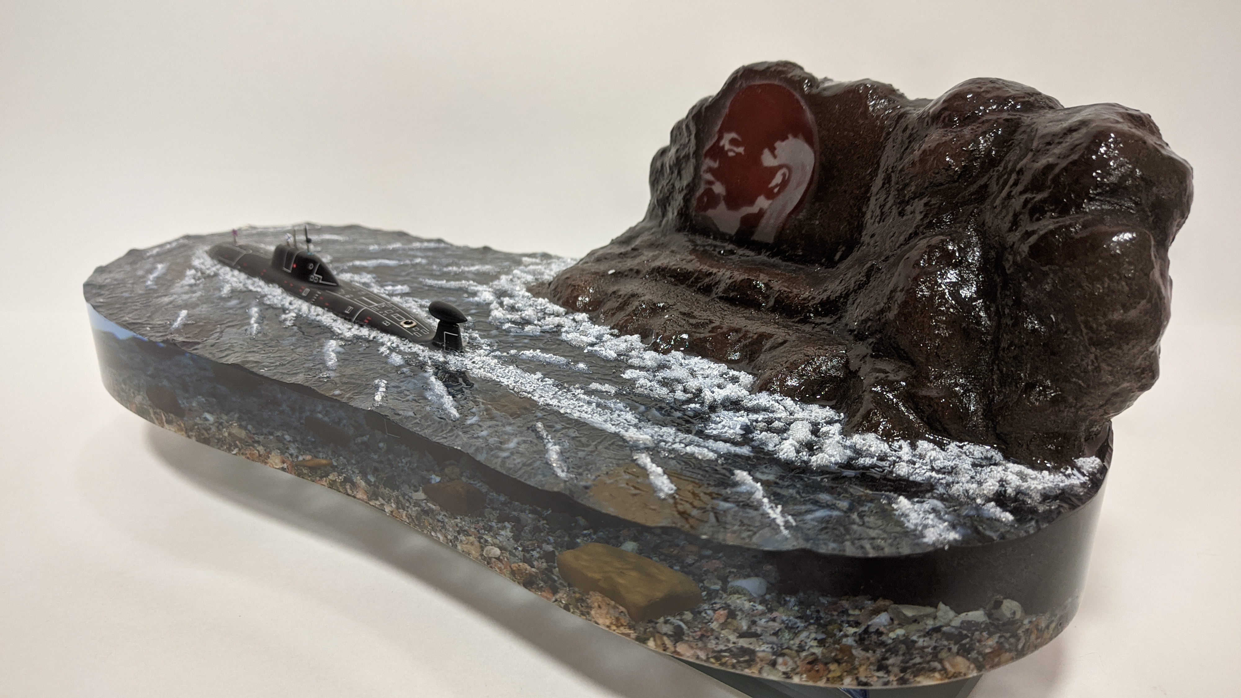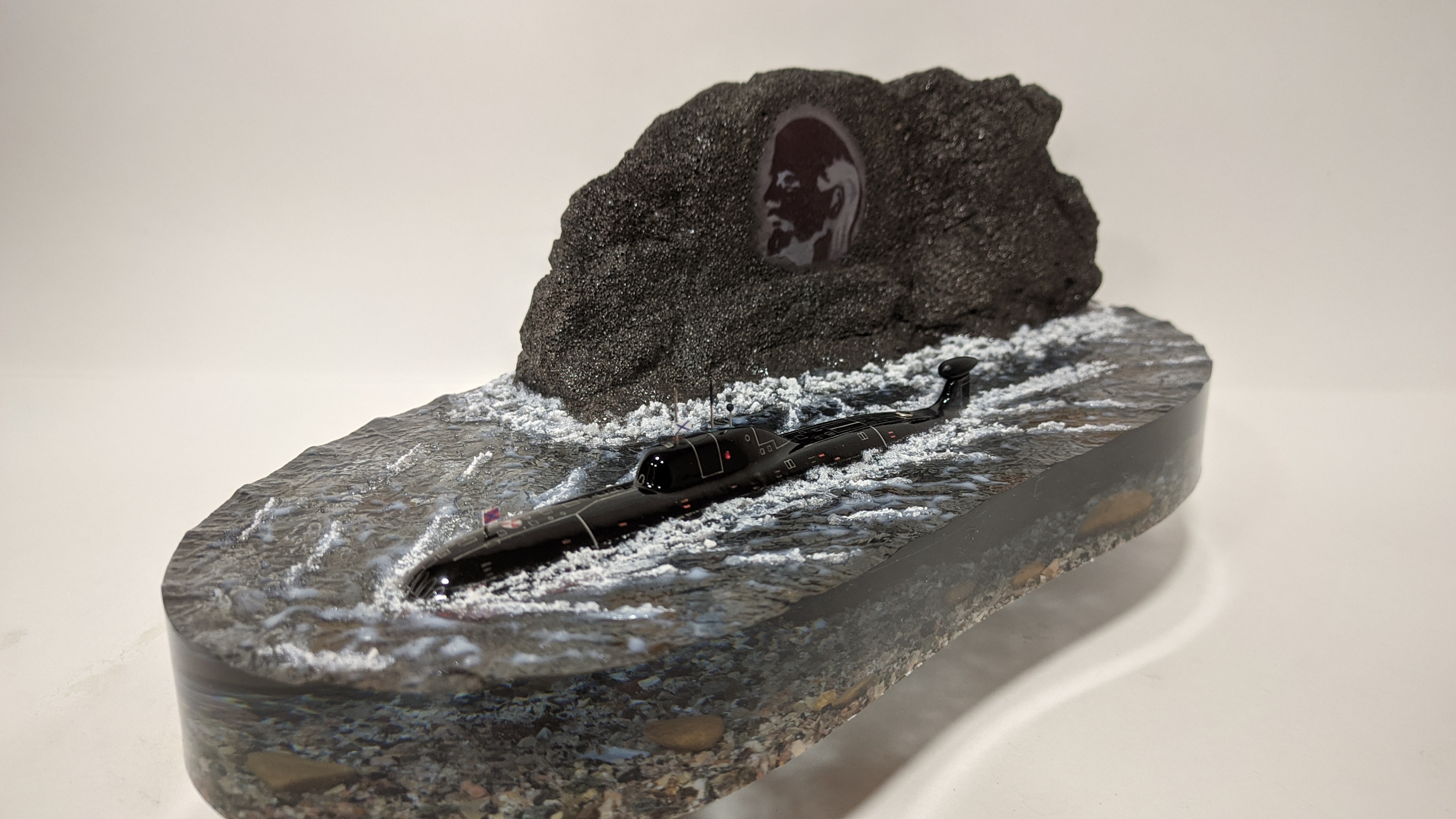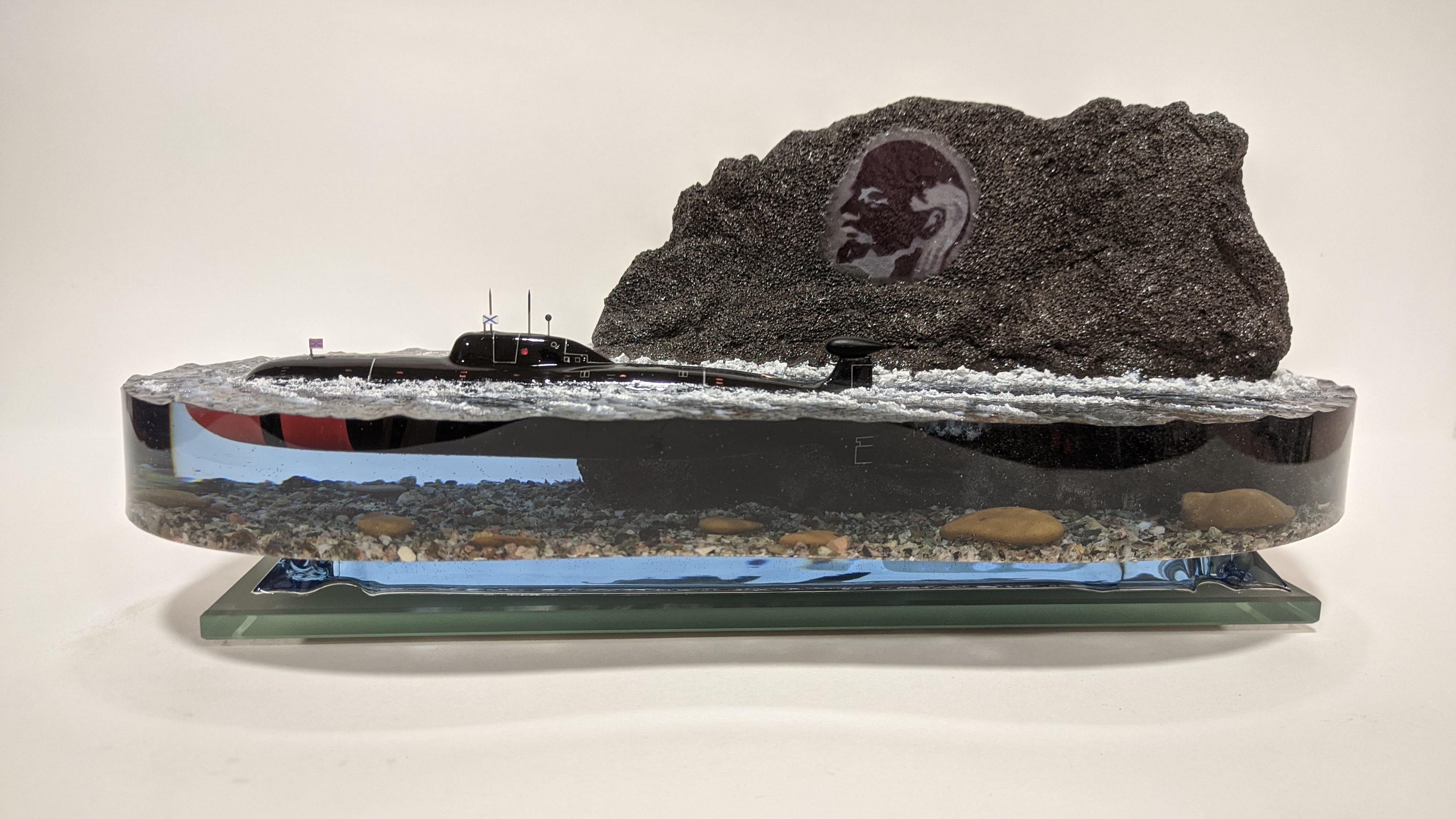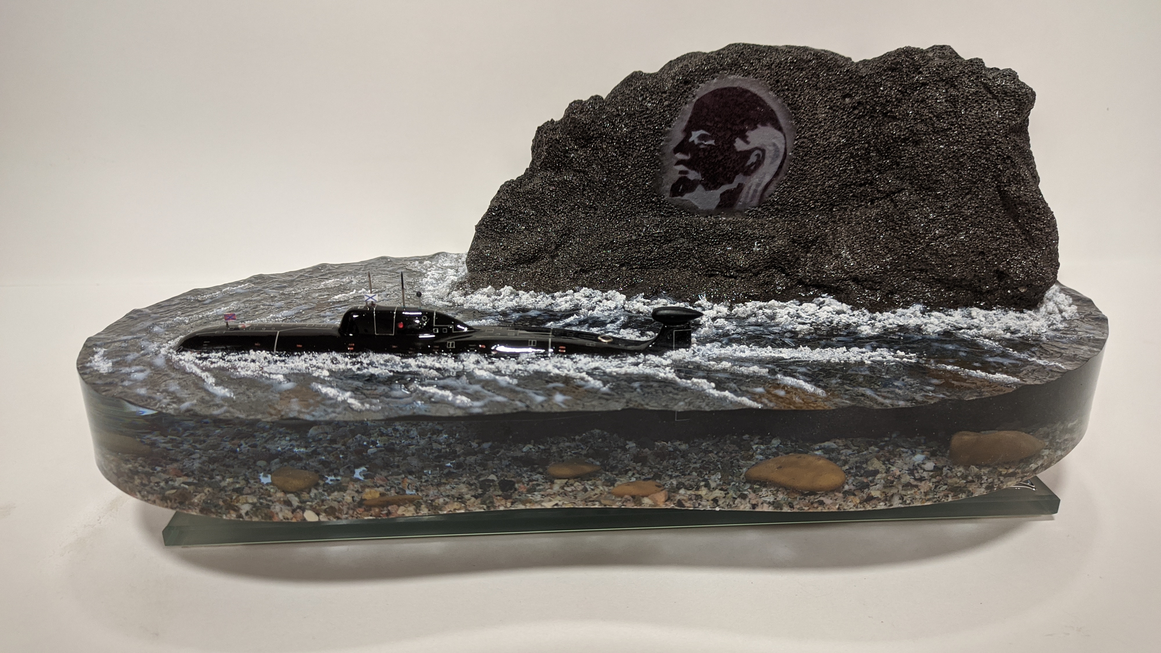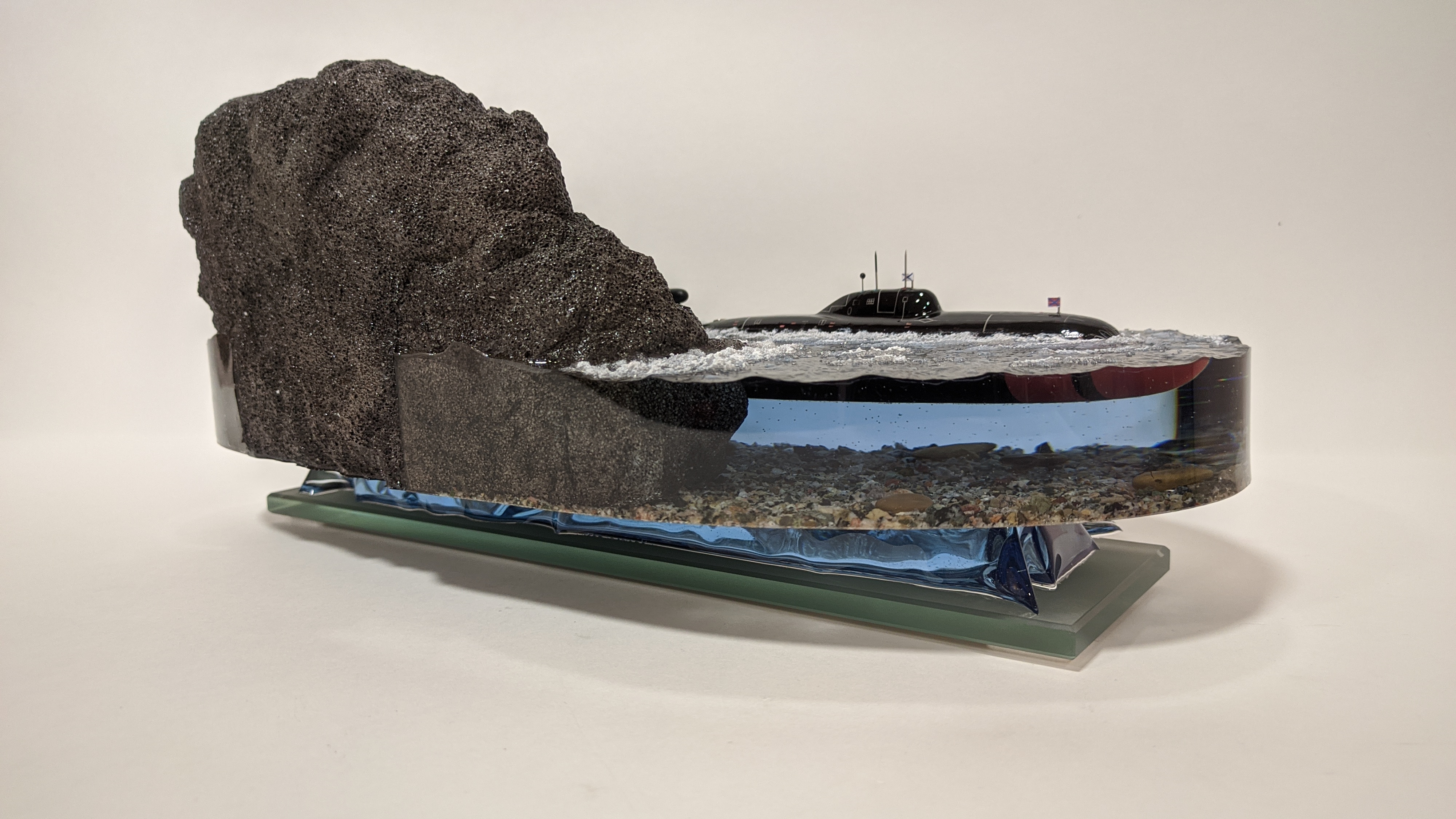 АПЛ проекта 971 "Щука-Б" в надводном положении на выходе из базы г. Гаджиево КСФ. Подставка из стекла 8мм.