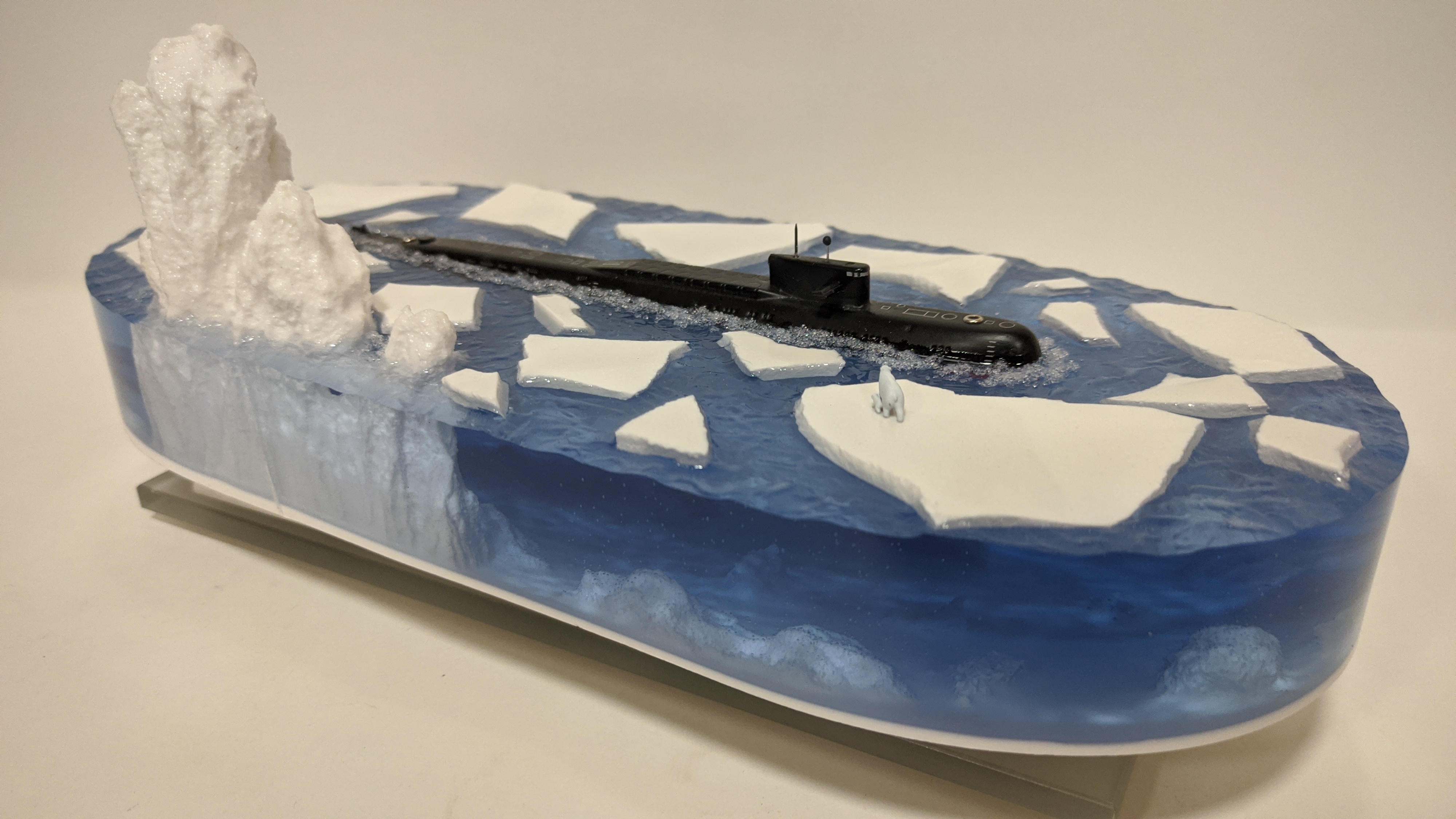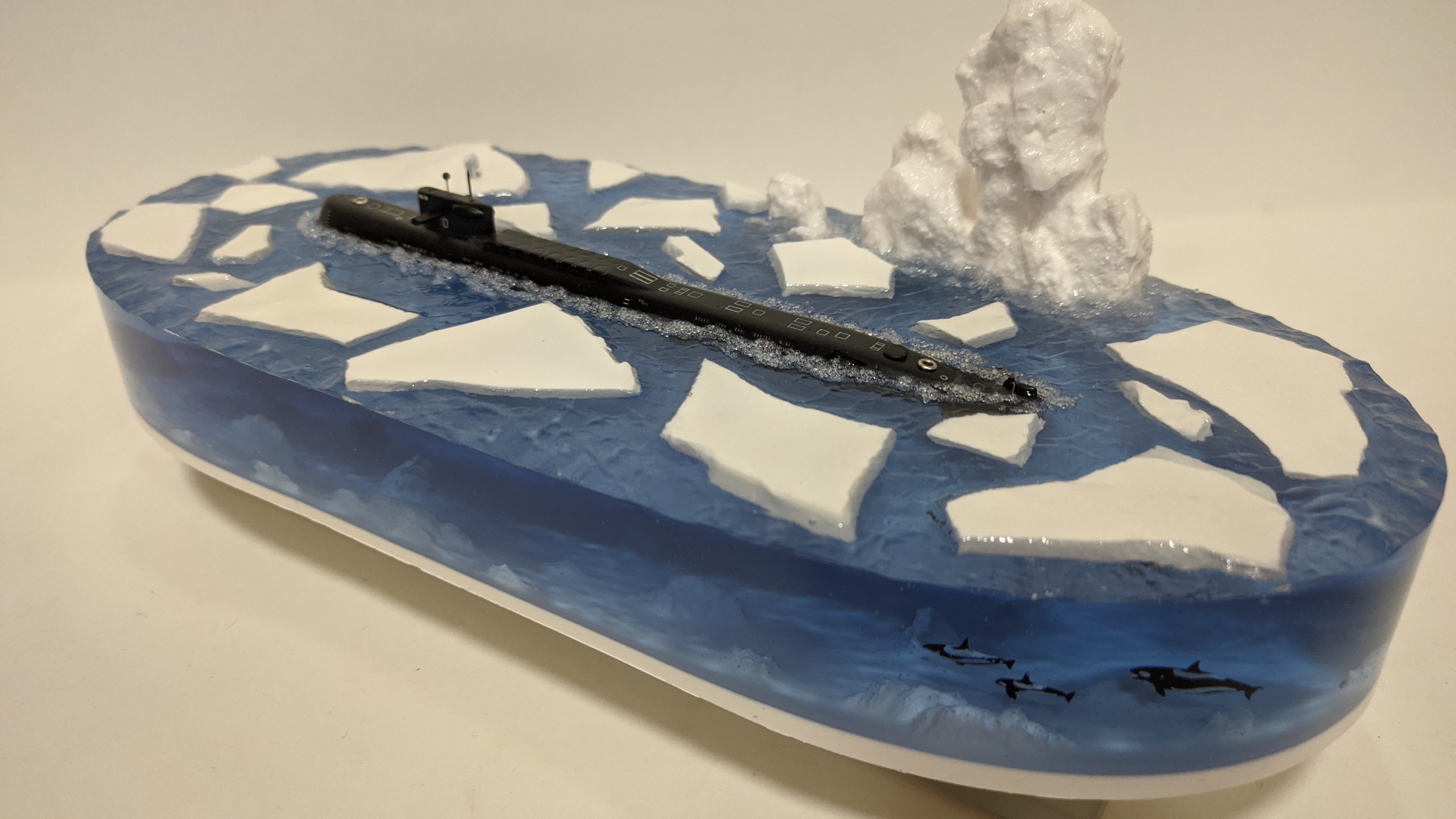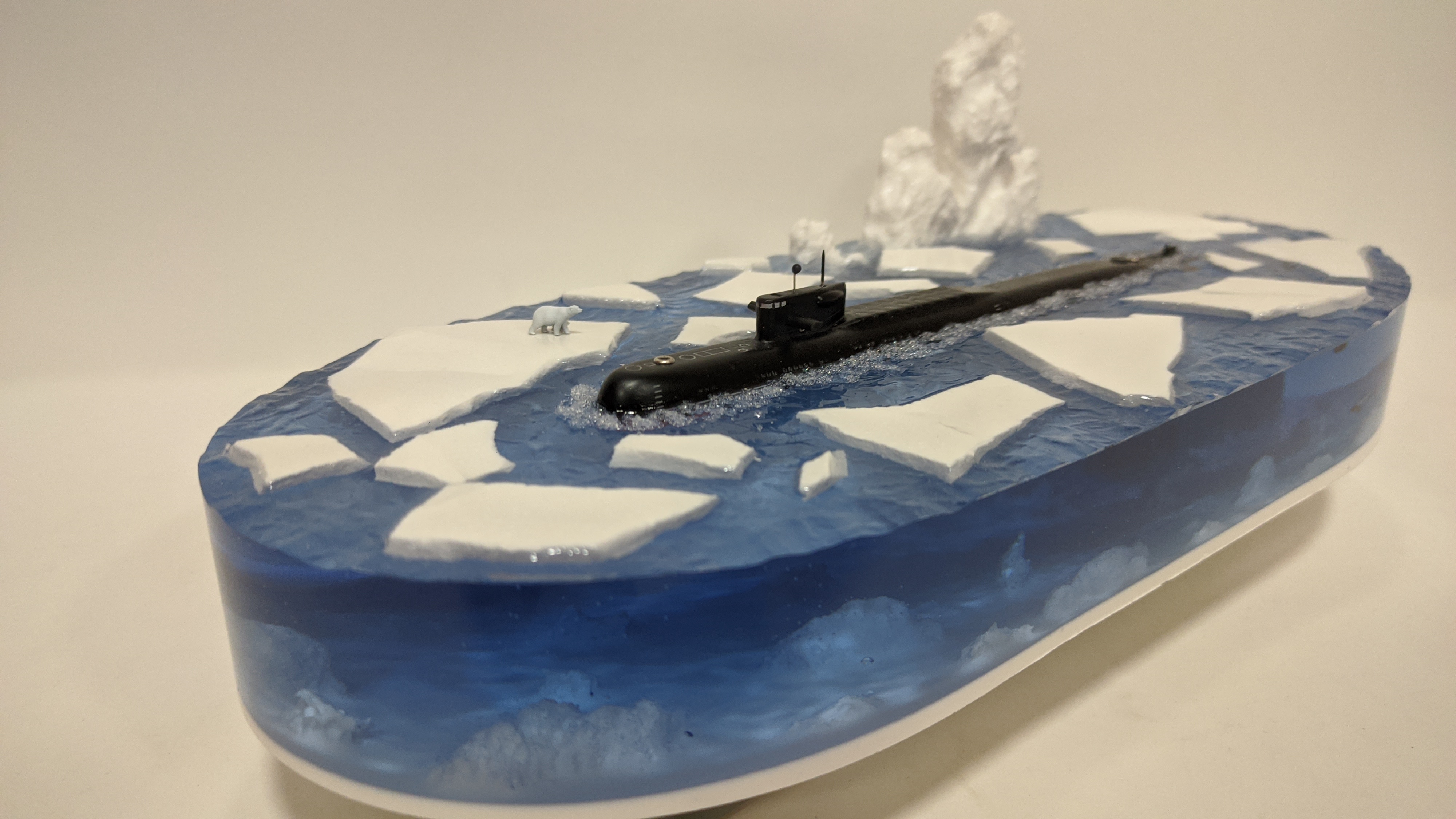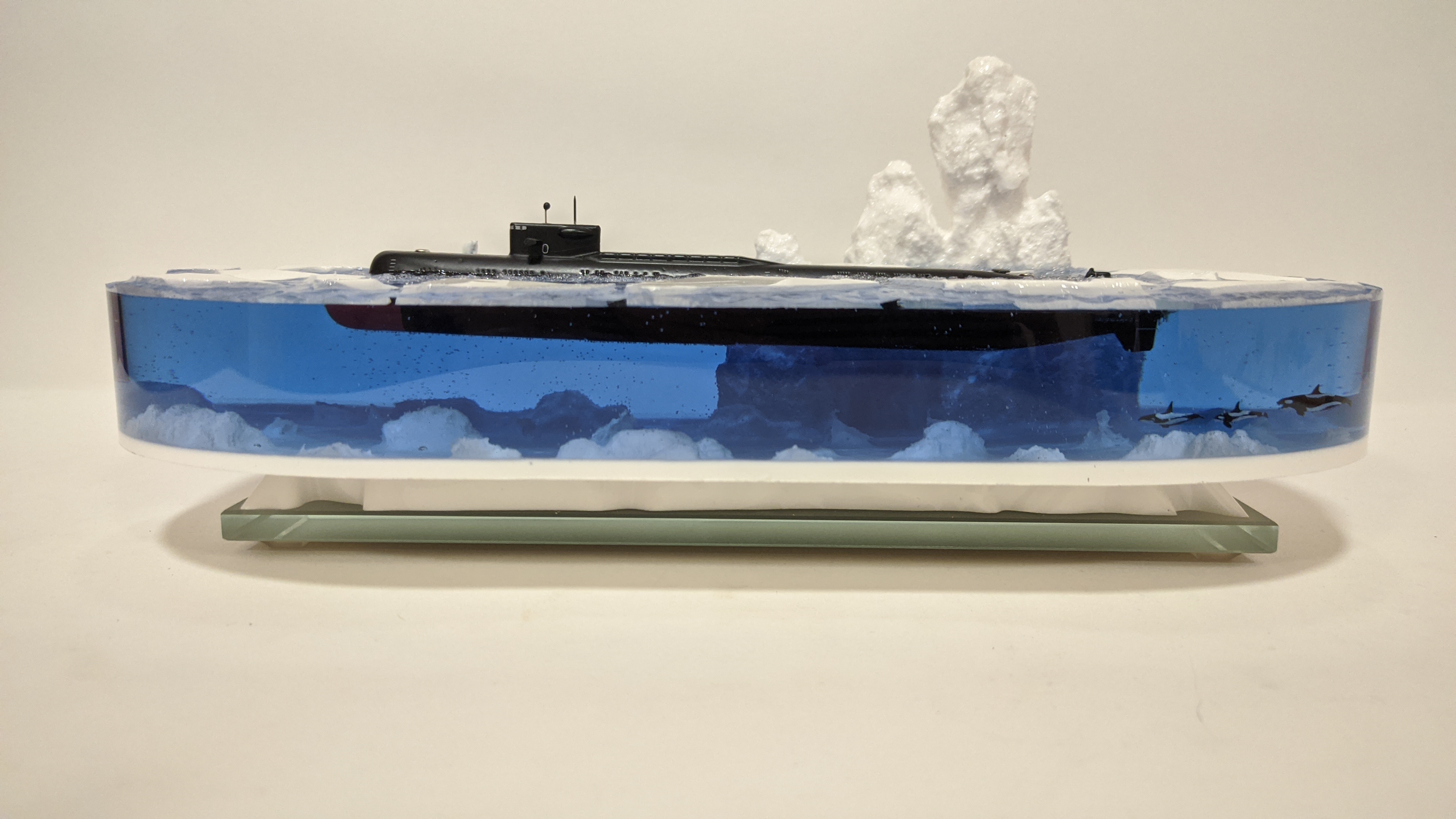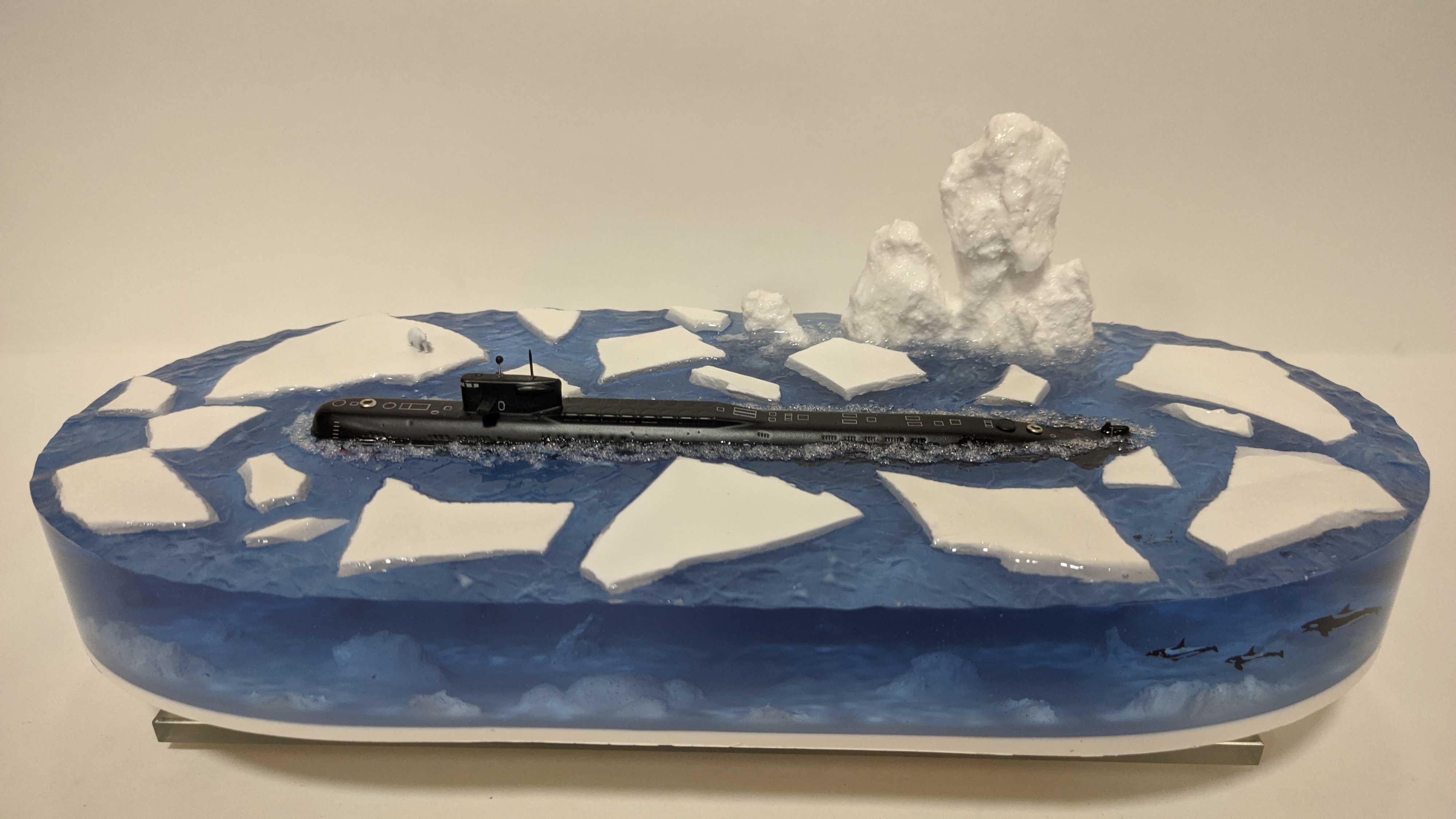 Модель подводной лодки 667АУ "Налим" идущая в надводном положении во льдах. На диораме так же представлены касатки и белый медведь. Всё выполнено в масштабе для сравнения размеров лодки с животными. Доставка в регионы компанией СДЕК. Можно изготовить изделие на заказ по Вашим пожеланиям.