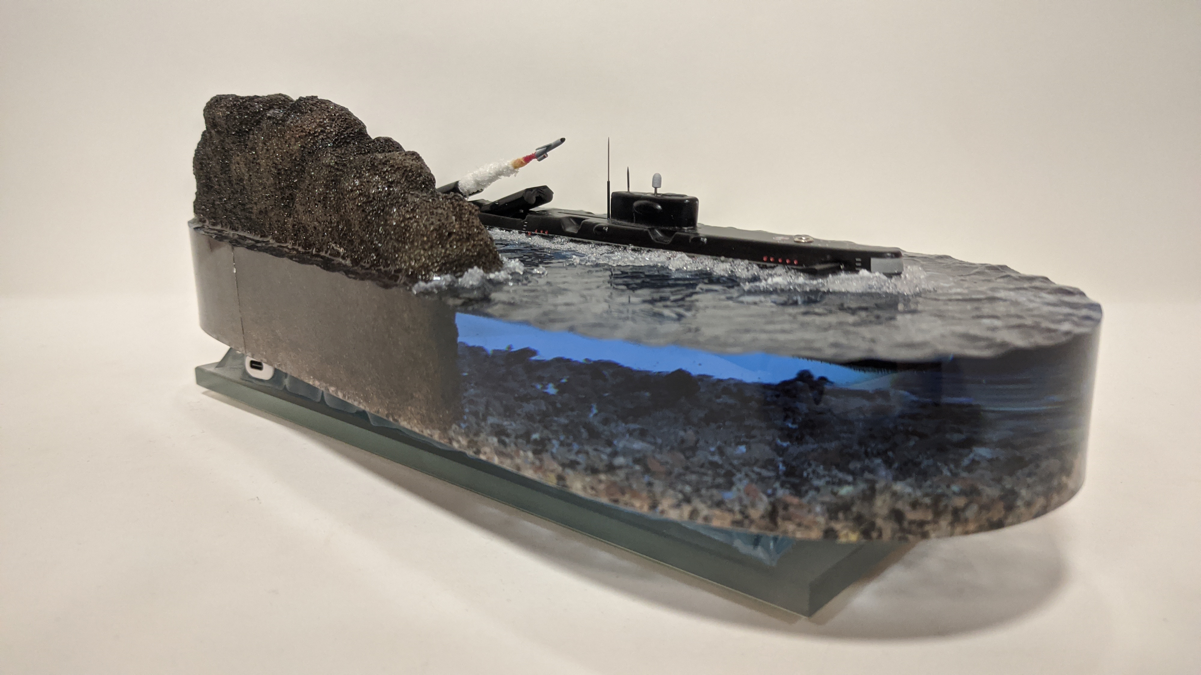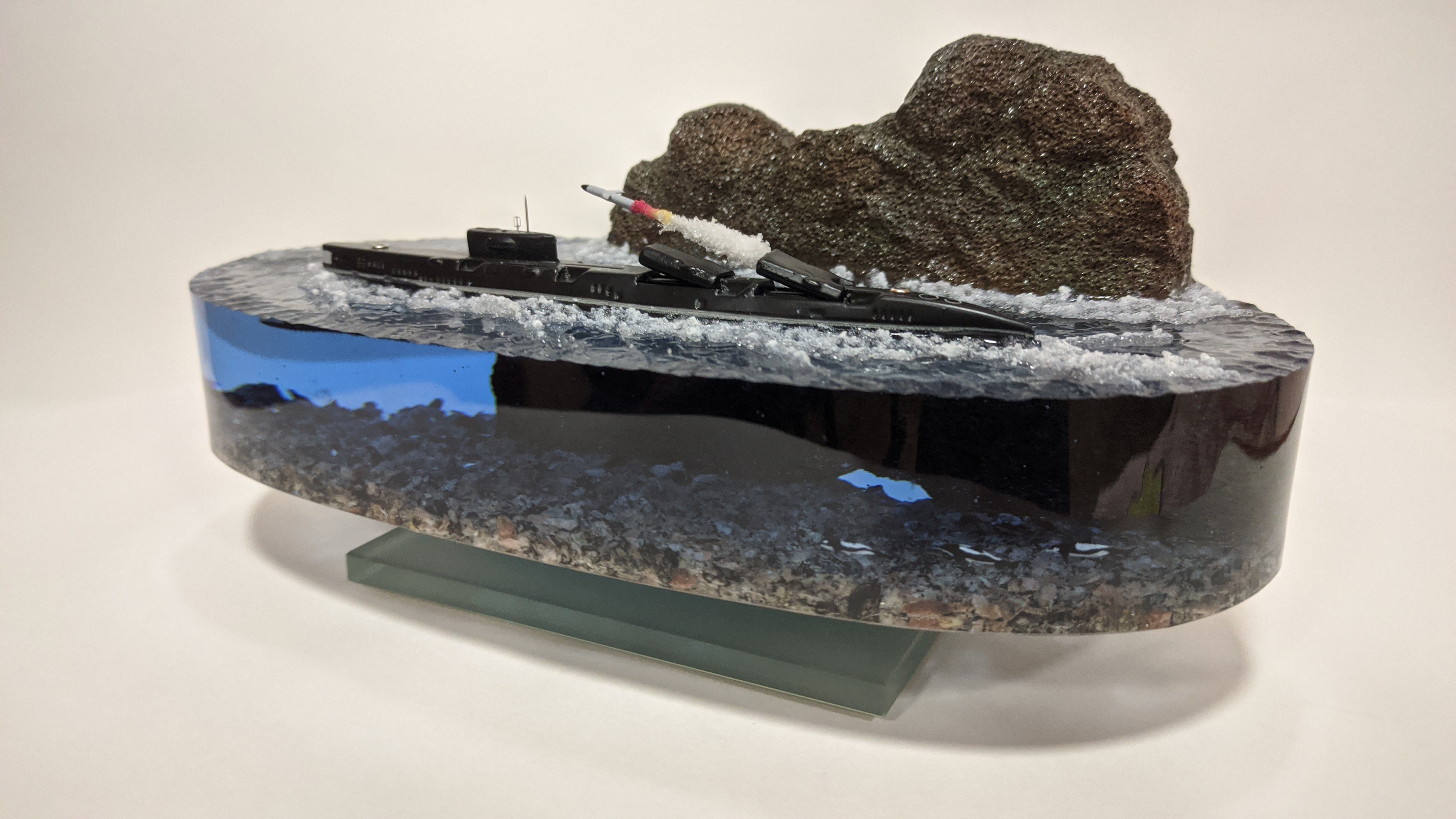 Модель подводной лодки 675 «Echo-II», идущая в надводном положении с имитацией пуска ракеты. На диораме так же представлены касатки. Всё выполнено в масштабе для сравнения размеров лодки с животными. Доставка в регионы компанией СДЕК. Можно изготовить изделие на заказ по Вашим пожеланиям.