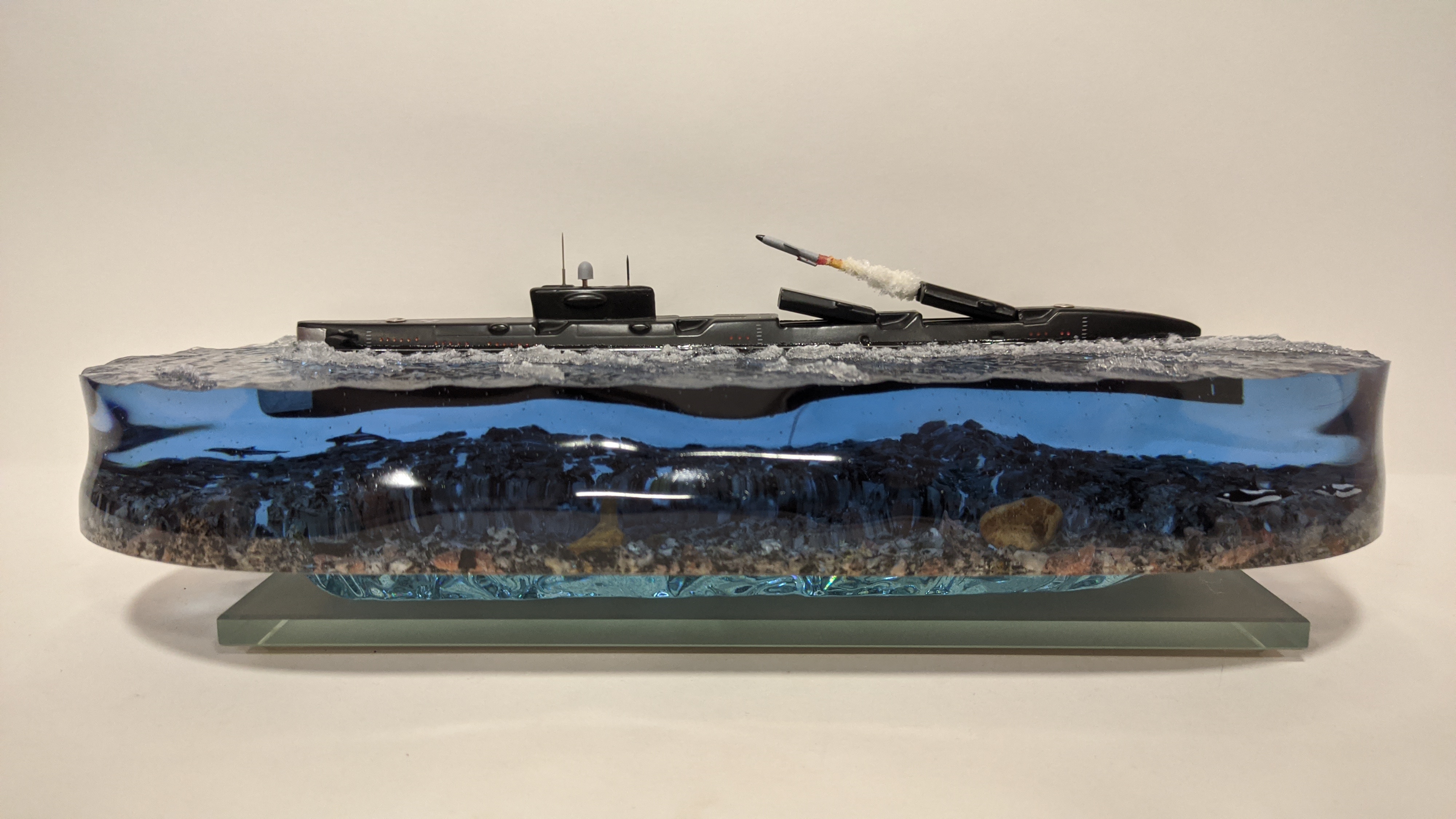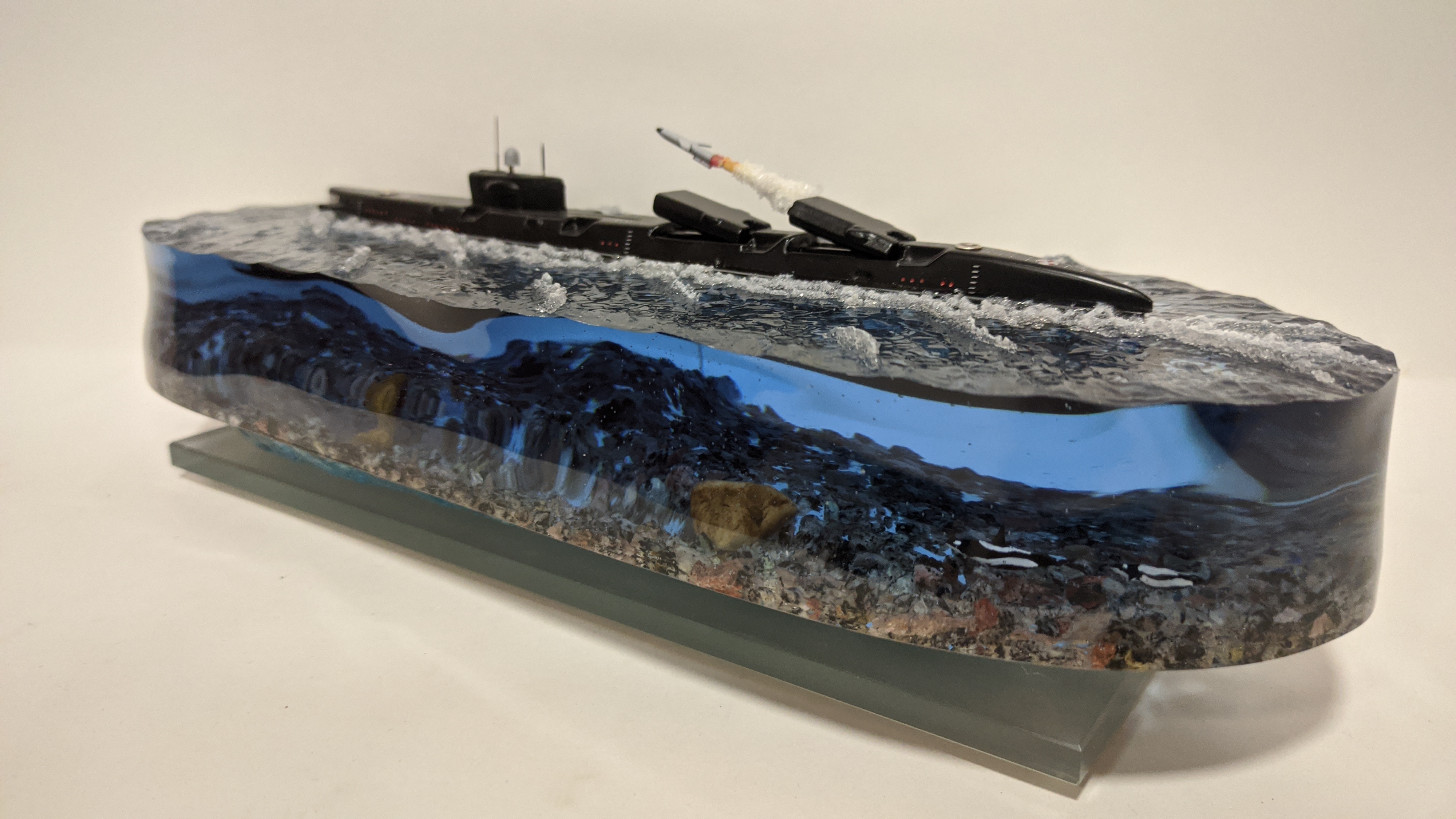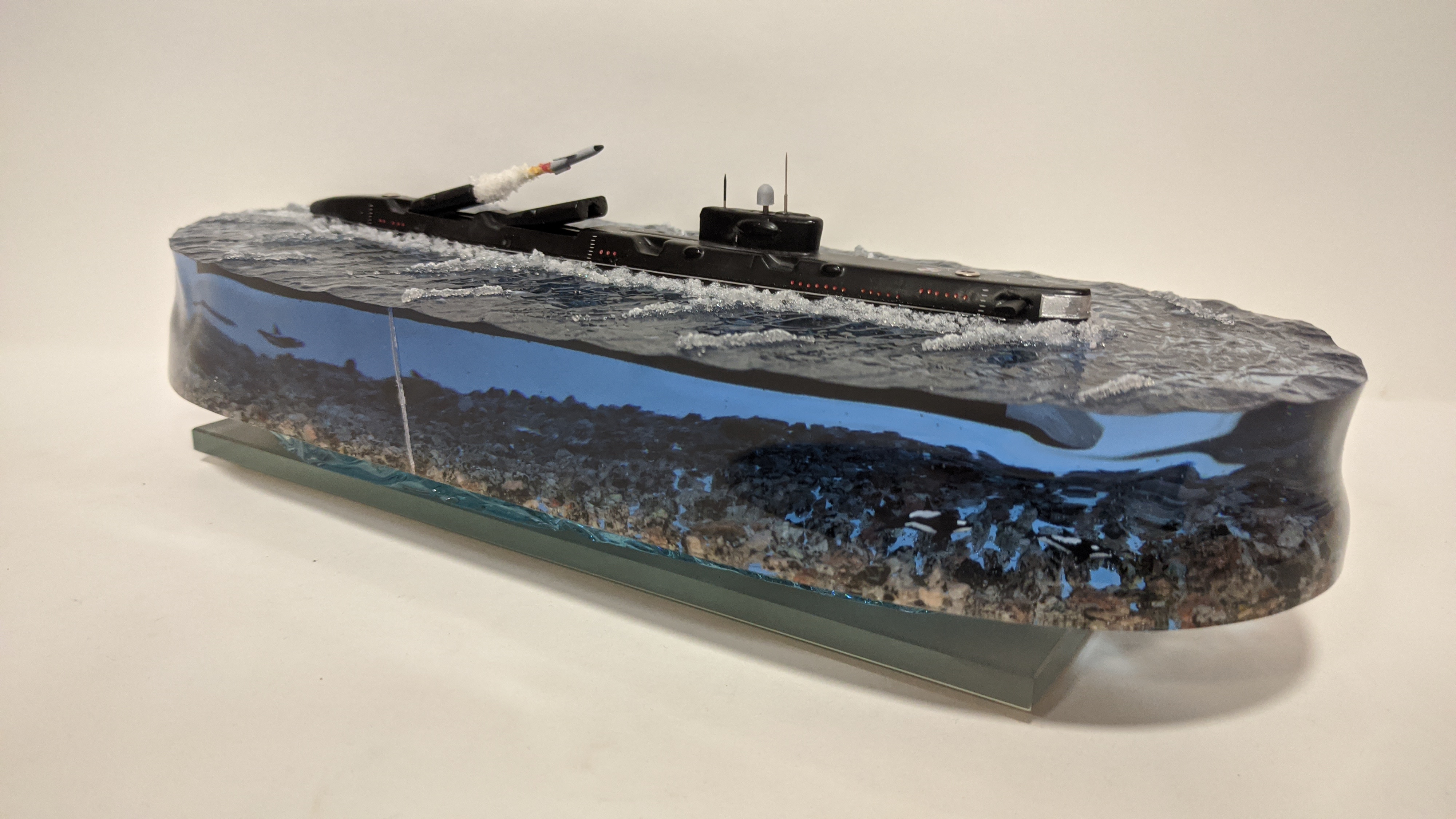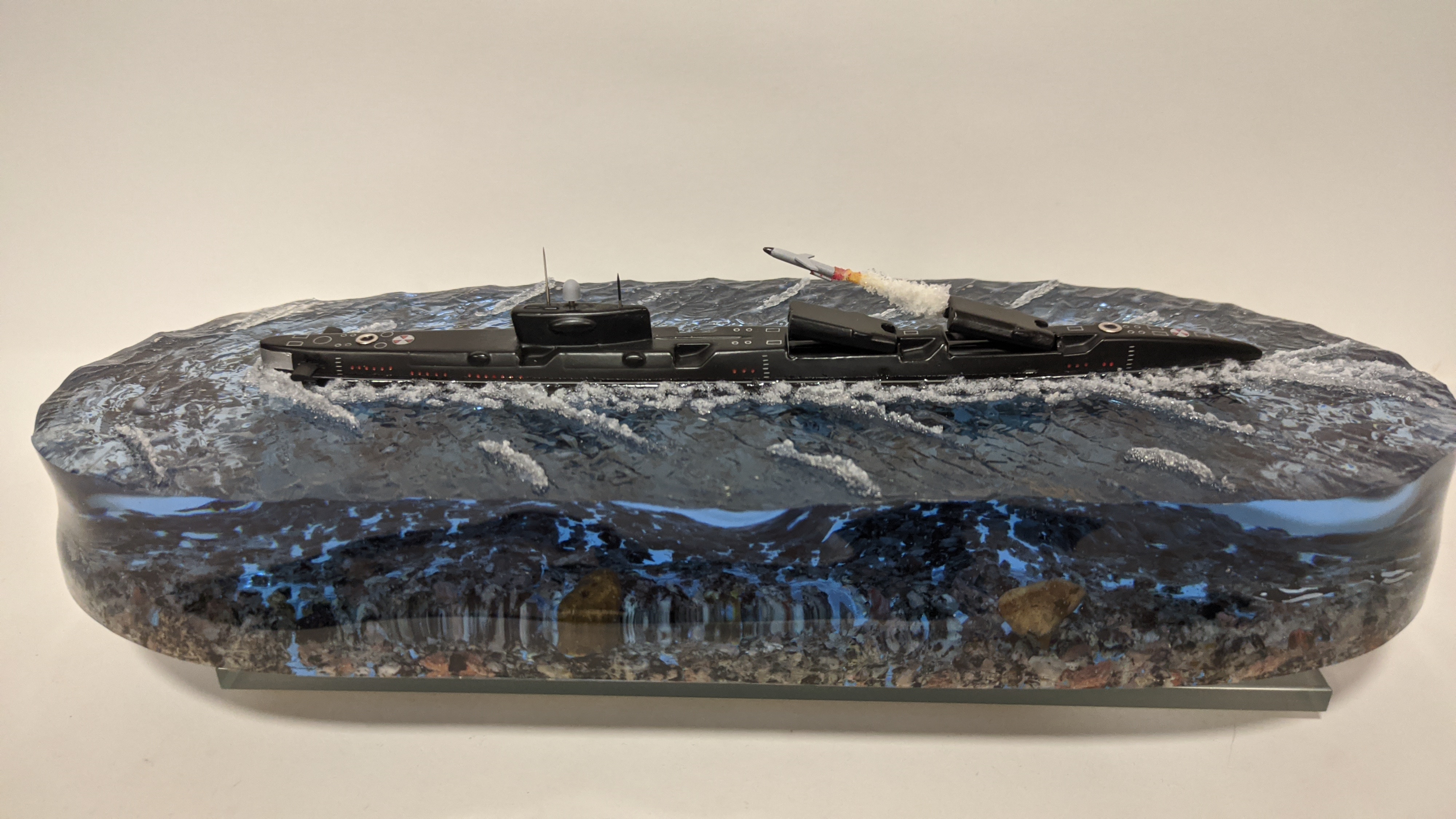Модель подводной лодки 675 «Echo-II», идущая в надводном положении с имитацией пуска ракеты.