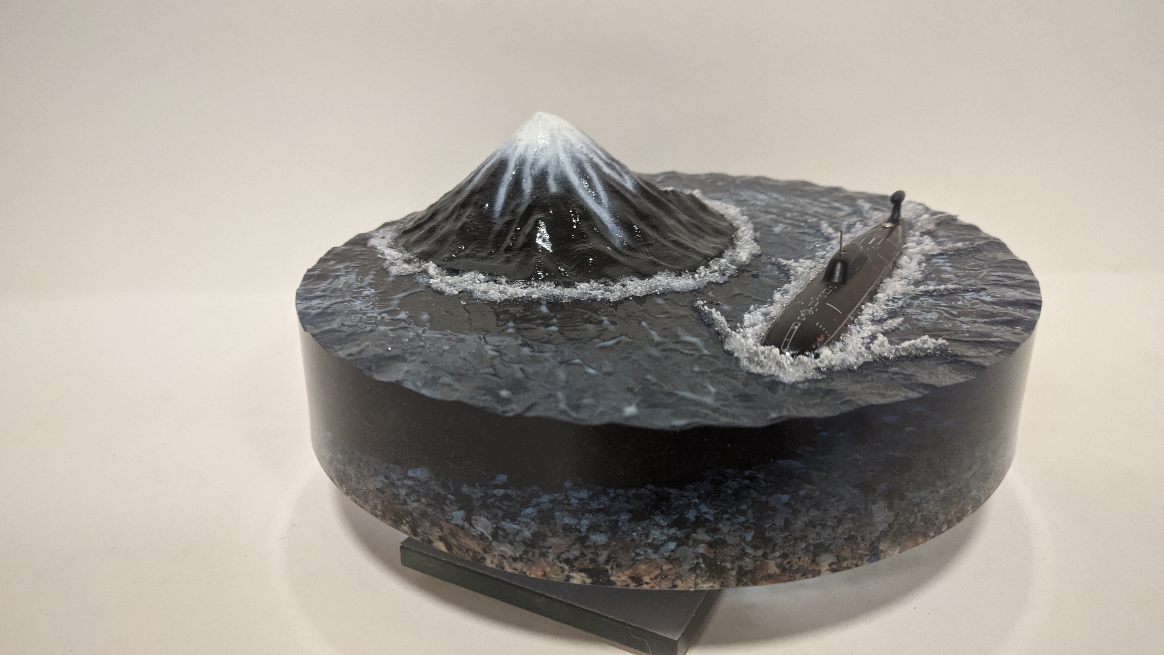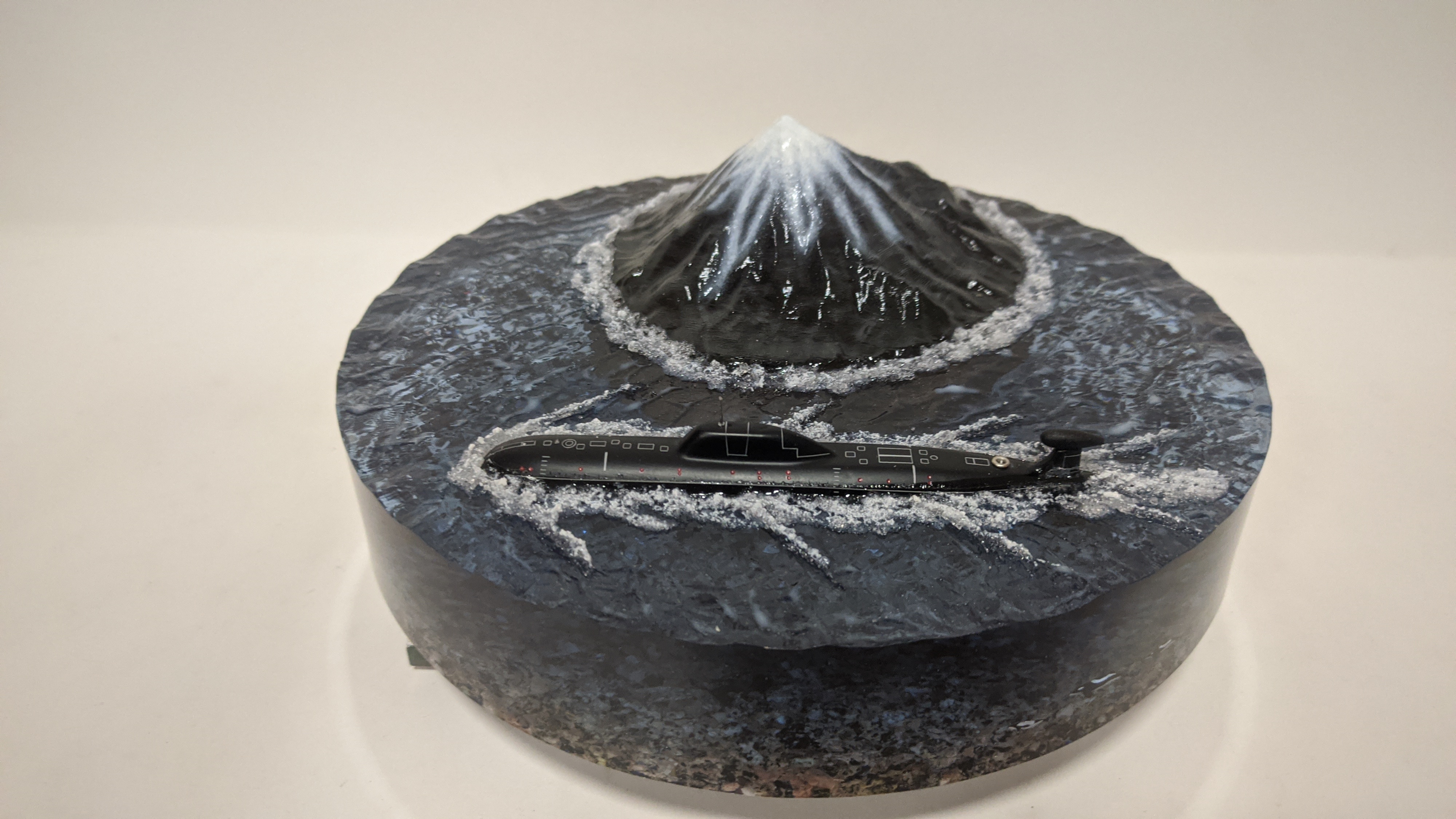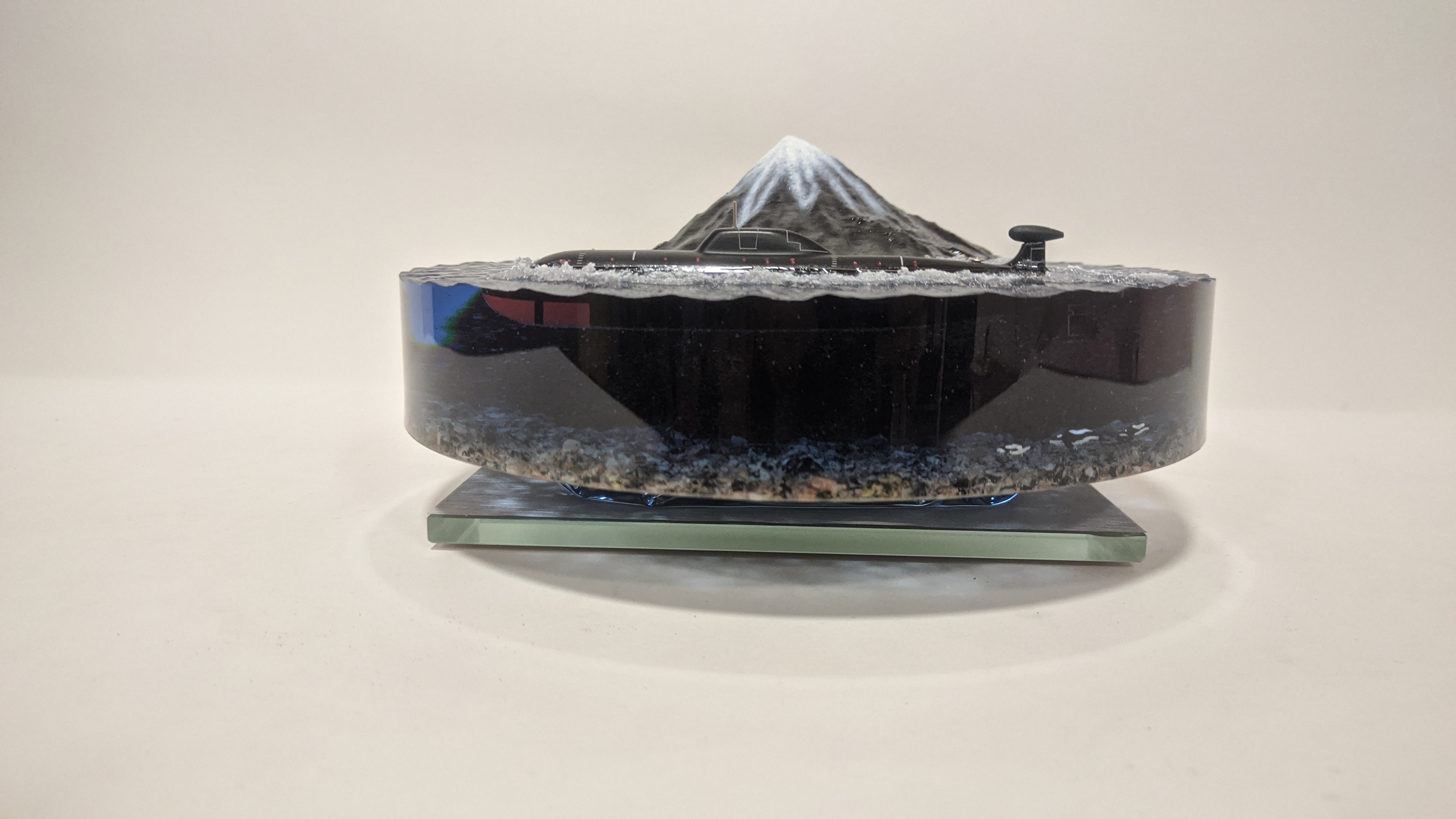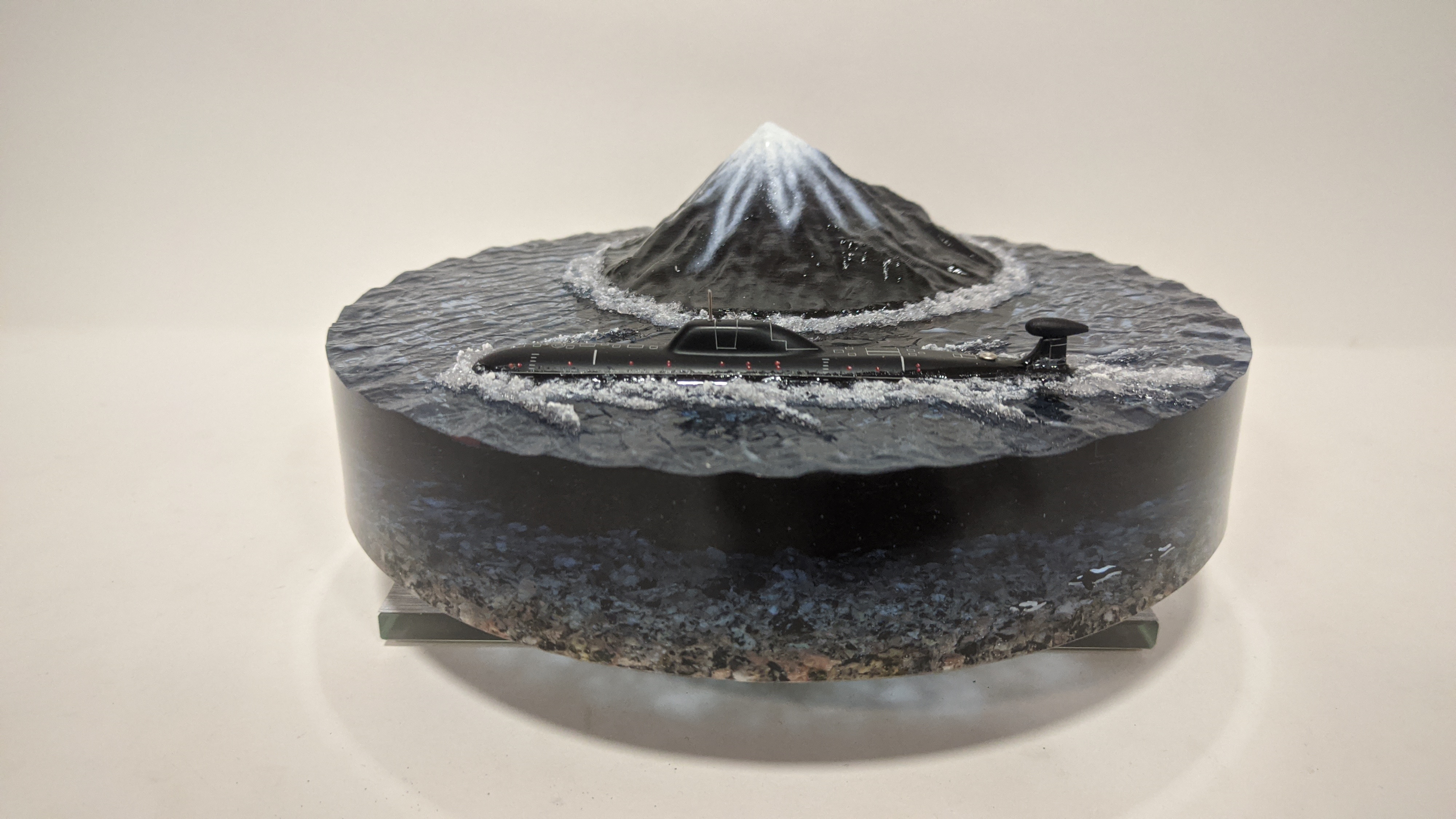 Модель подводной лодки проект 971 "Щука-Б" на фоне Вилючинской сопки. Подставка стекло 8мм.