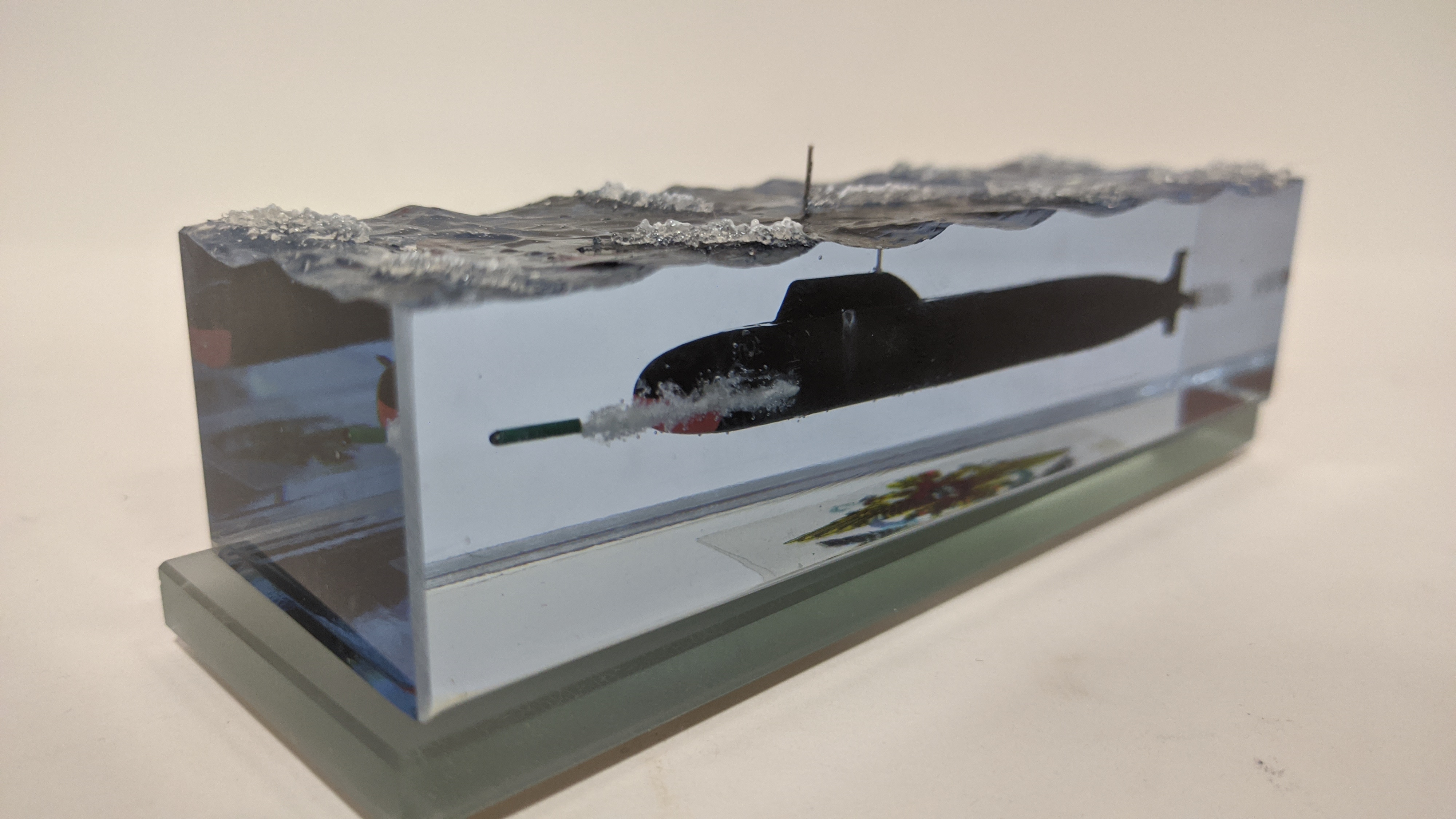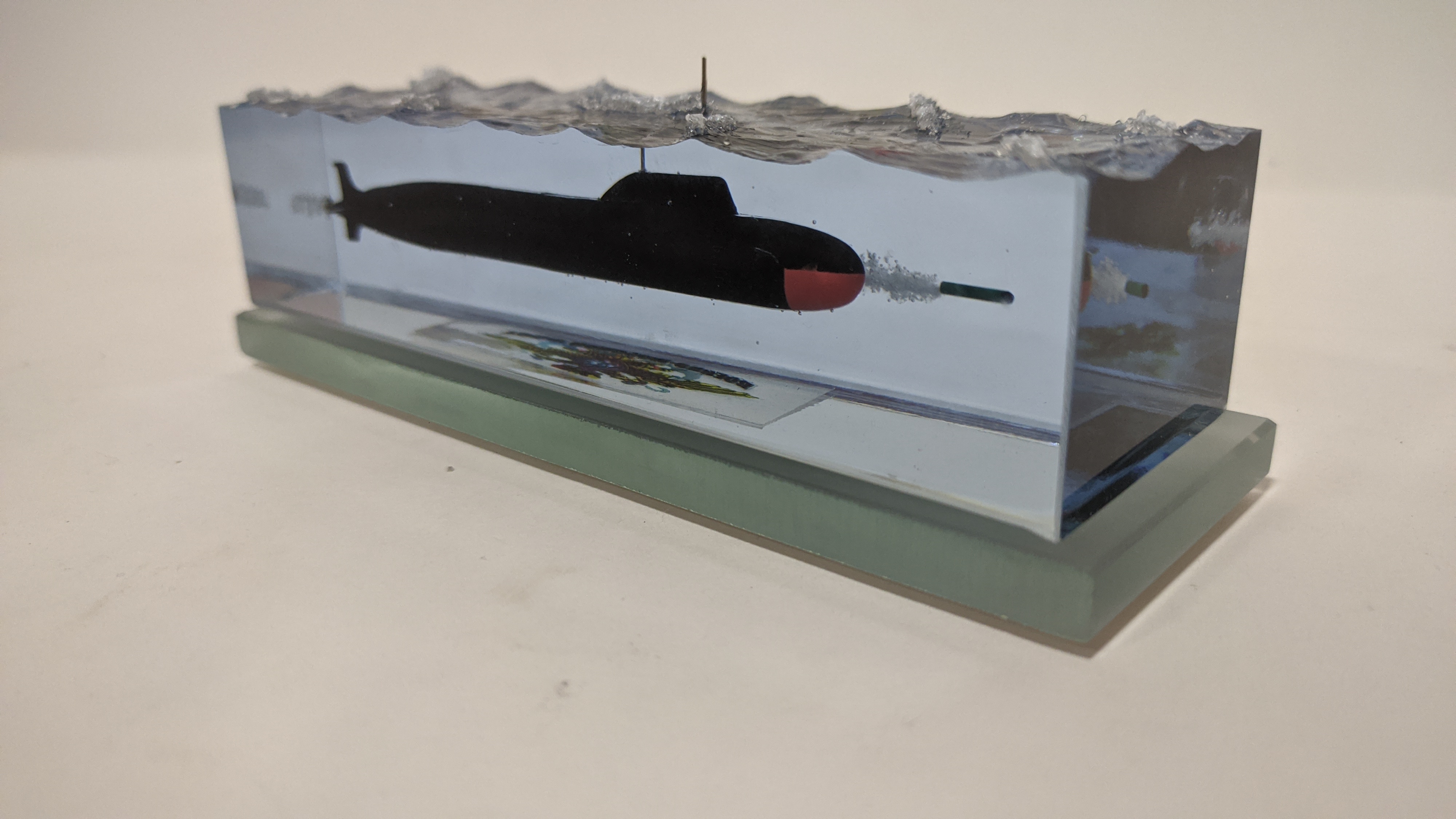 Многоцелевая АПЛ проекта 885М "Ясень-М" с имитацией пуска торпеды. Подставка стекло 8 мм.