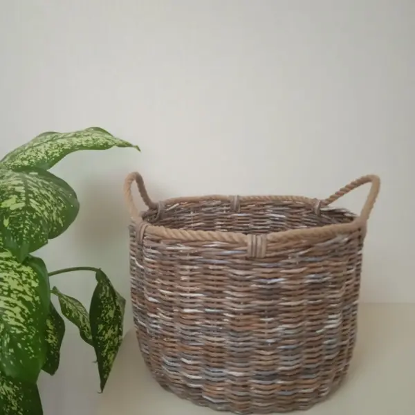 Универсальная корзина плетёная из бумажной лозы для хранения вещей, игрушек и многого другого.Экологически чистая, обработана безопасными составами. В уходе не прихотлива, влаги не боится. Диаметр 40см, высота 28см.В единственном экземпляре.