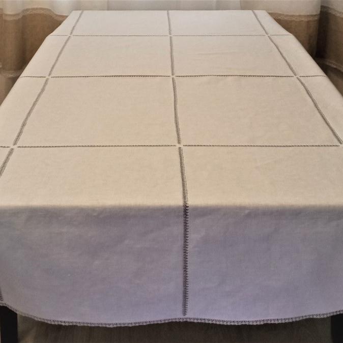 Авторская льняная скатерть "квадраты" с узким кружевом 155х225 см. Ручной крой.