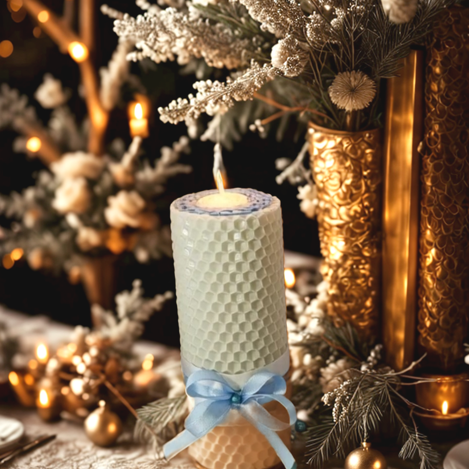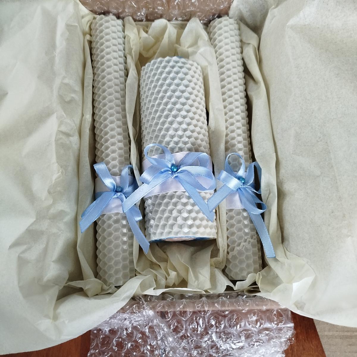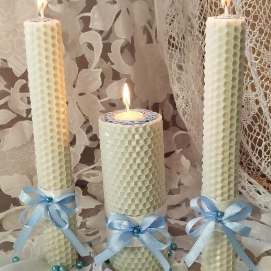 Тепло вашего семейного очага в свечах "Семейный очаг" из вощины в нежных бело-голубых тонах!