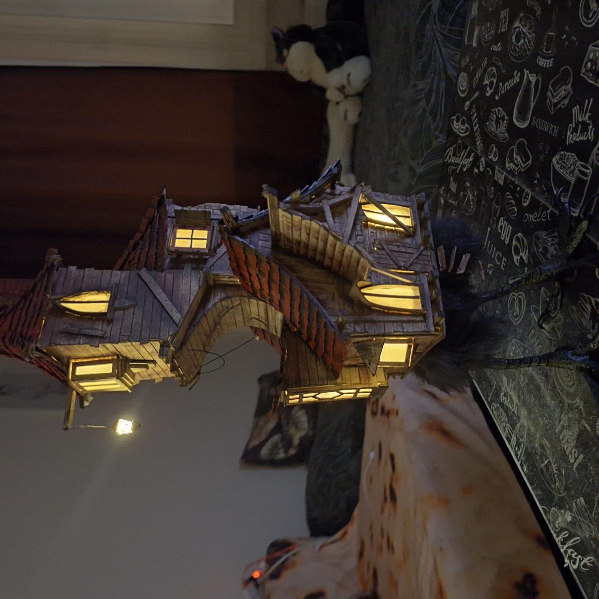 Статуэтка "Избушка на курьих ножках". Высота -54 см. Ручная работа, эко материалы, внутри проведена подсветка, можно использовать как ночник. Прекрасный предмет для декора Вашего дома. Дизайн разробатывался с учетом добаления эклептики во внешнем виде.