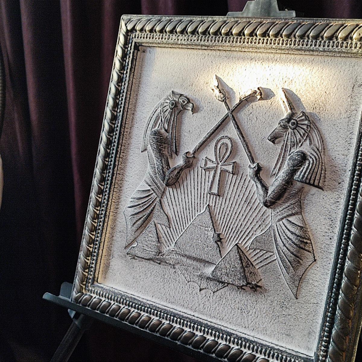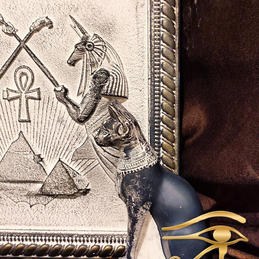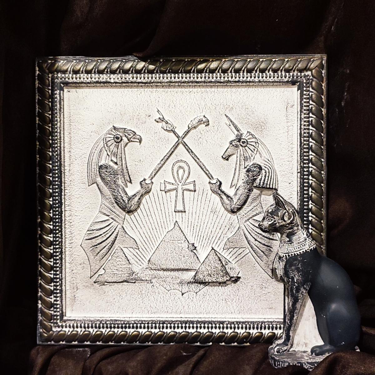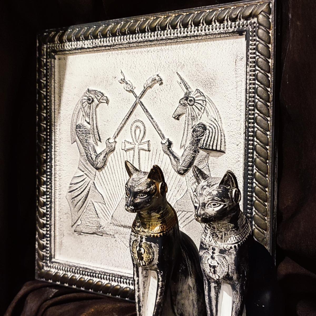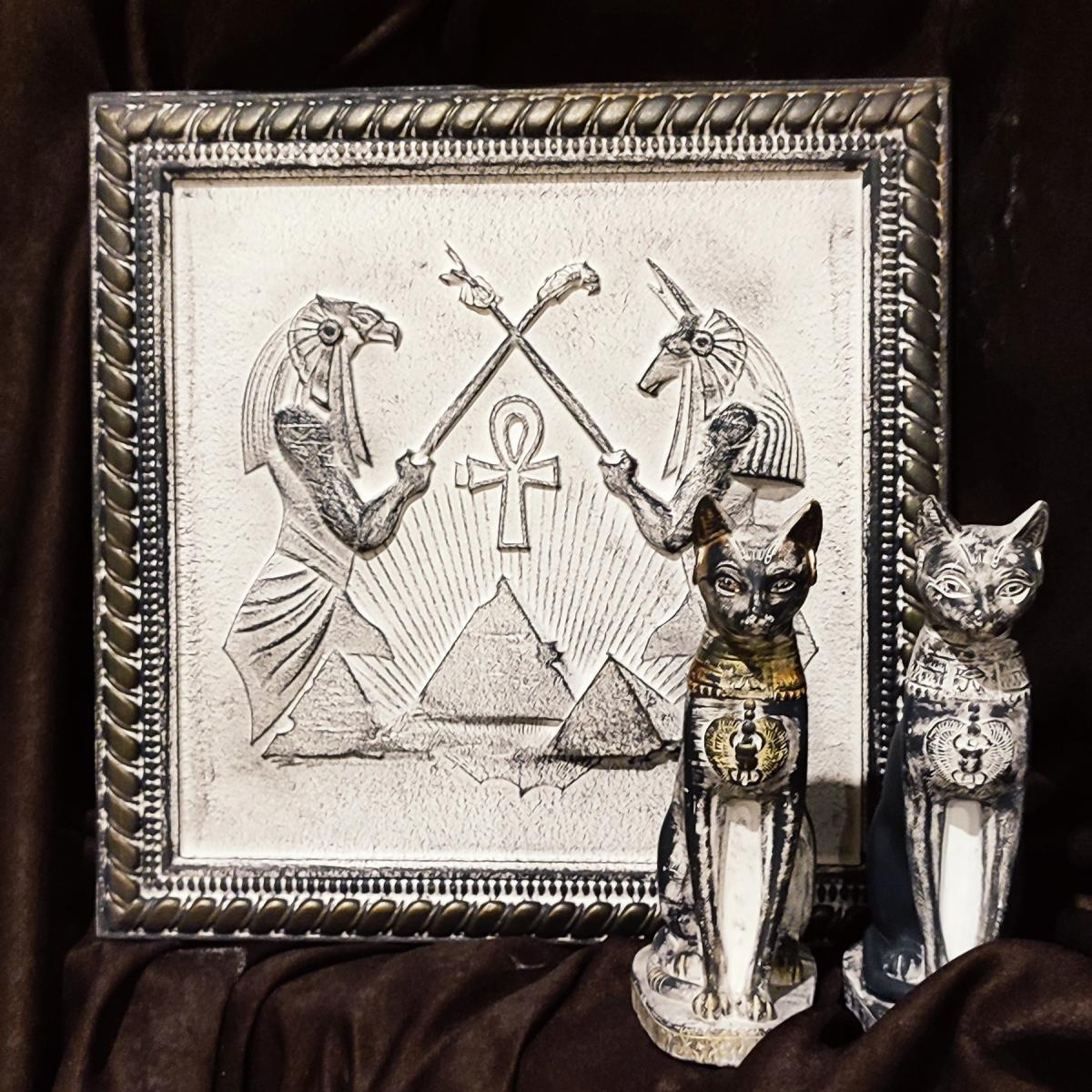 Гор и Анубис — два ключевых божества древнеегипетской мифологии, имевшие разные, но одинаково важные роли: Гор, сын Осириса и Исиды, был богом неба, солнца и царской власти, олицетворяя порядок и свет. Размер : 35*35 , литьевой камень, скульптурный гипс. Отличный подарок для ценителей египетской мифологии