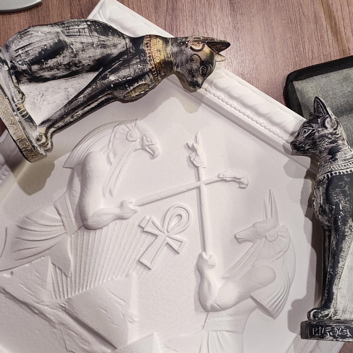 Гор и Анубис — два ключевых божества древнеегипетской мифологии, имевшие разные, но одинаково важные роли: Гор, сын Осириса и Исиды, был богом неба, солнца и царской власти, олицетворяя порядок и свет. Размер : 35*35 , литьевой камень, скульптурный гипс. Отличный подарок для ценителей египетской мифологии