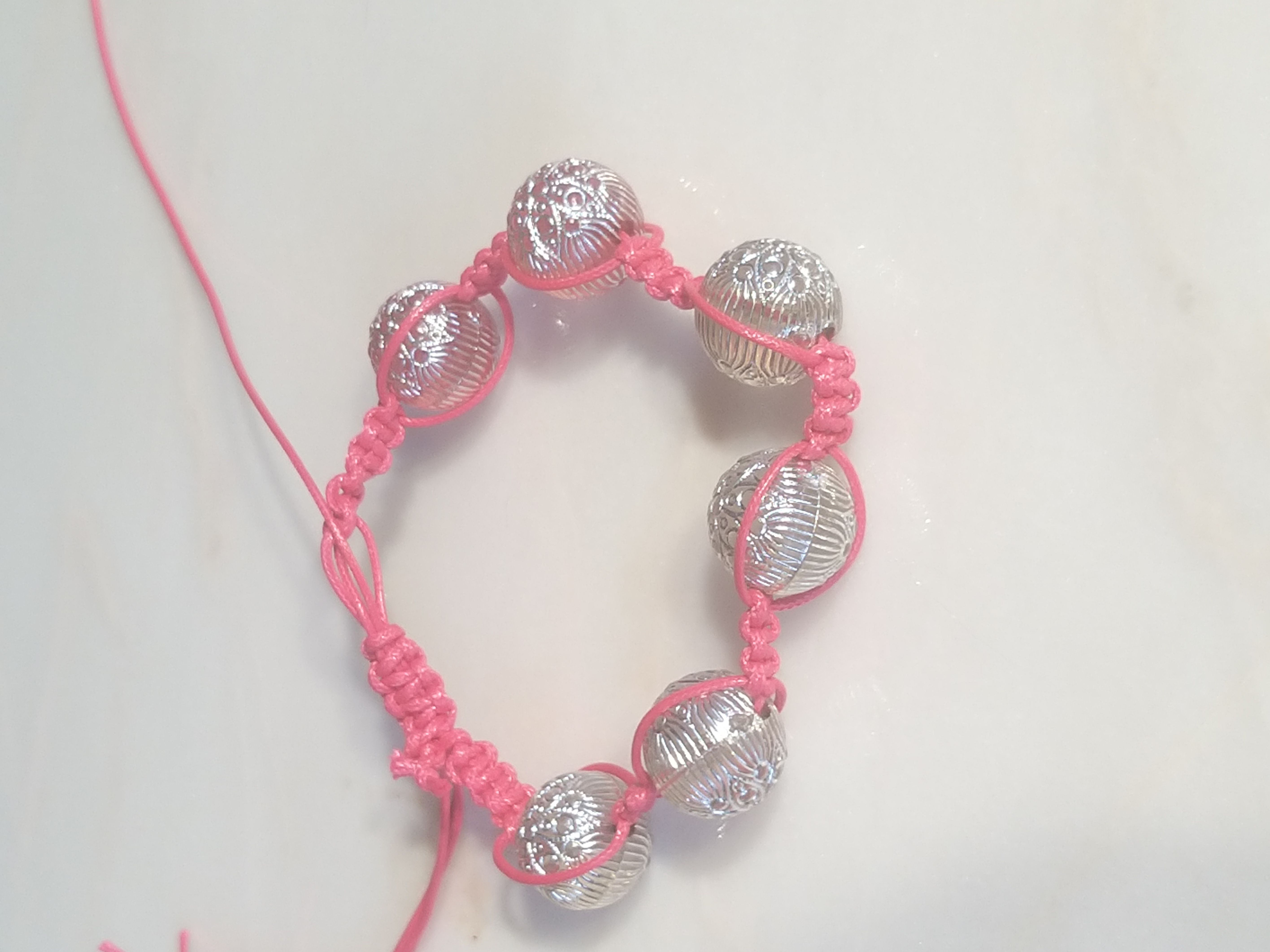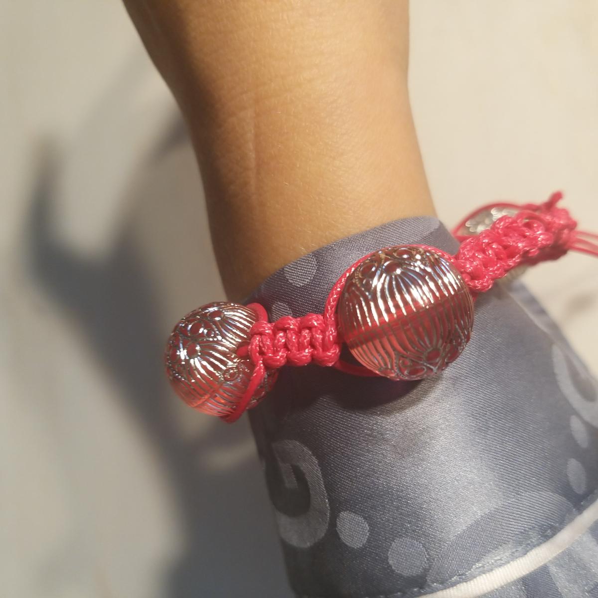 Очень модный браслет в сочетании прозрачных больших бусин и розового шнура, смотрится классно, можно на Новый год!