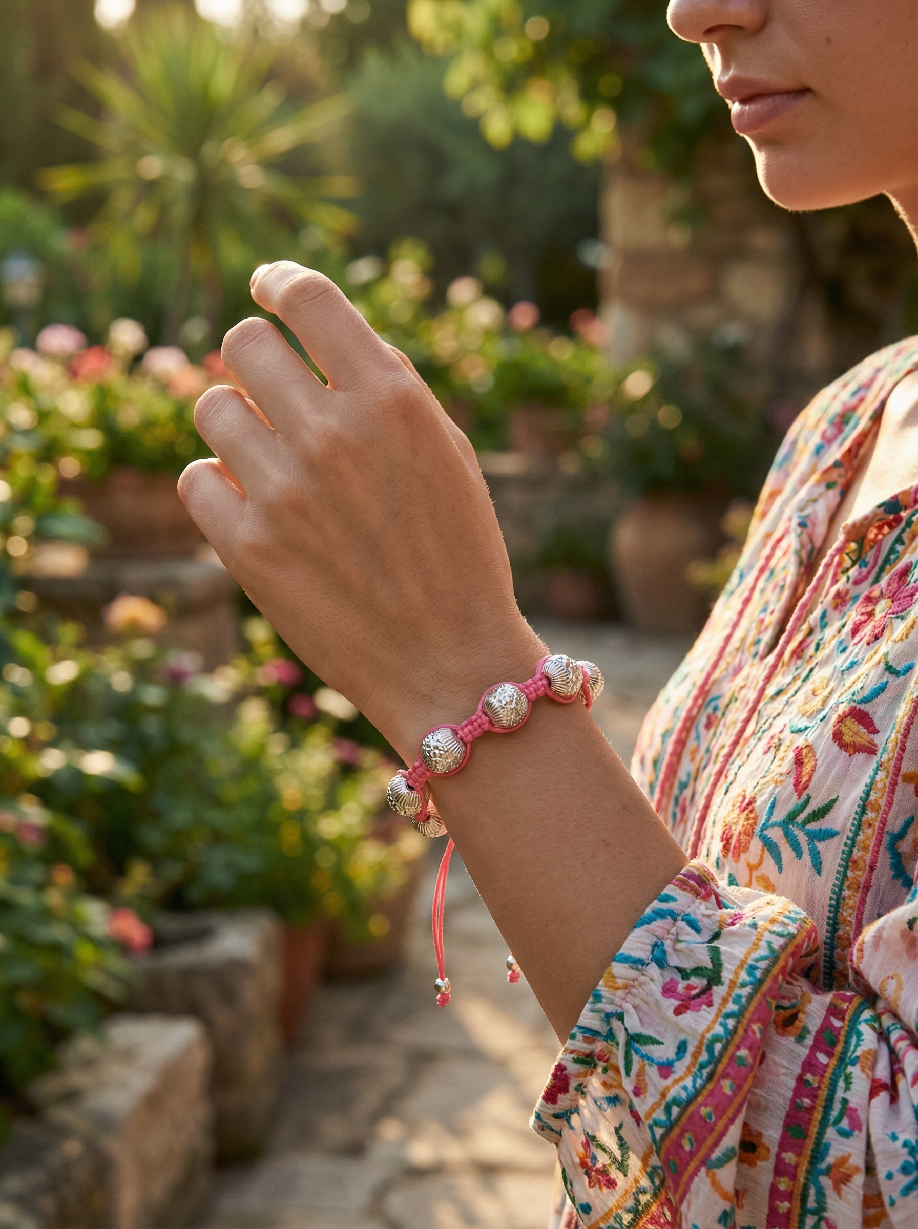 Очень модный браслет в сочетании прозрачных больших бусин и розового шнура, смотрится классно, можно на Новый год!