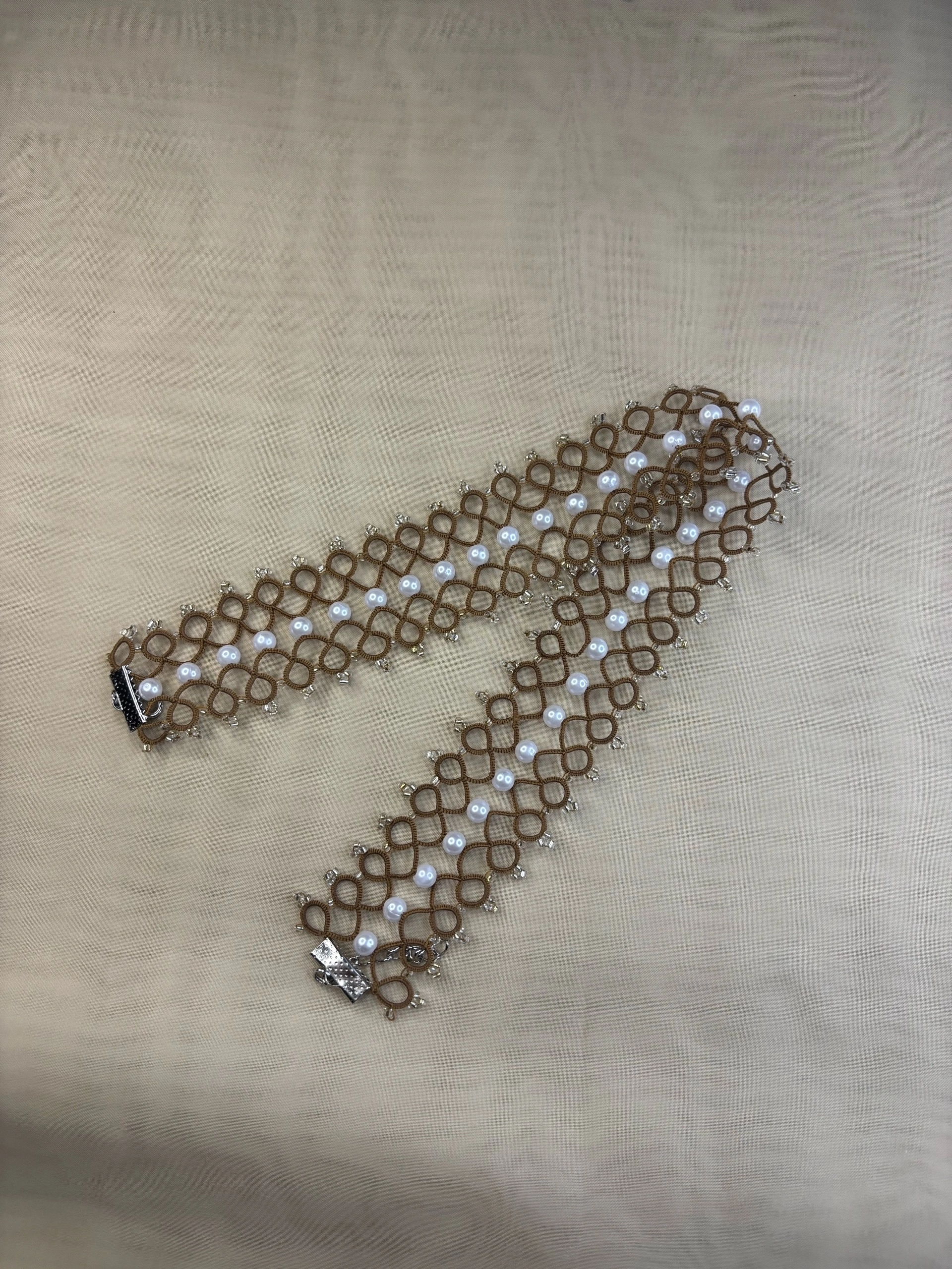 Браслет сплетён из нити полиэстэр. Длина браслета позволяет обернуть кисть руки 2 раза, что создаёт интересное переплетение.