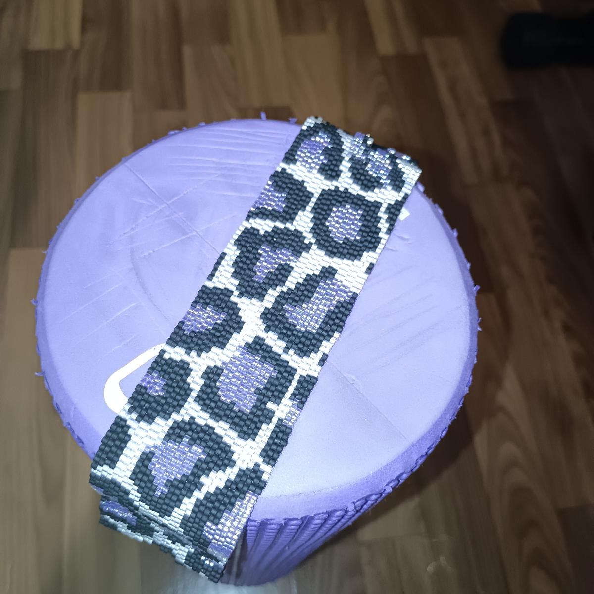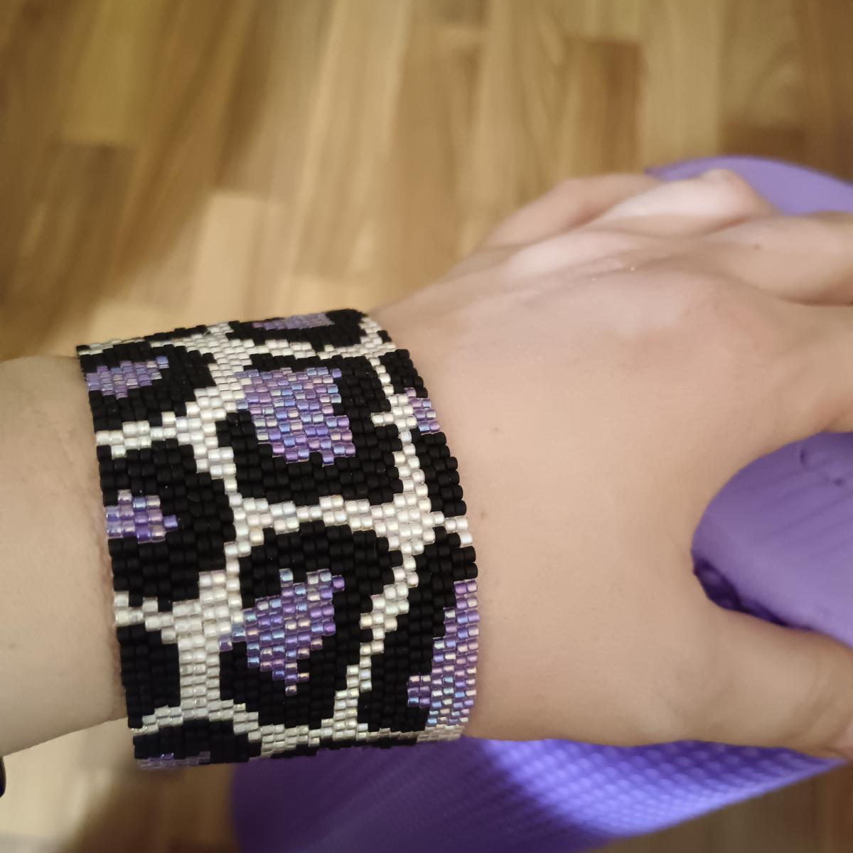 браслет "Фиолетовый леопард" выполнен быз использования фурнитуры. Застежка сплетена тем же рисунком.