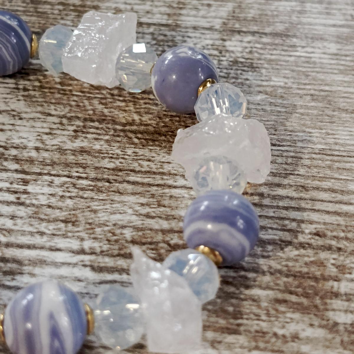 Голубой агат, кварц и опалит представляют собой уникальную комбинацию кристаллов, каждый из которых обладает своими уникальными энергетическими свойствами.