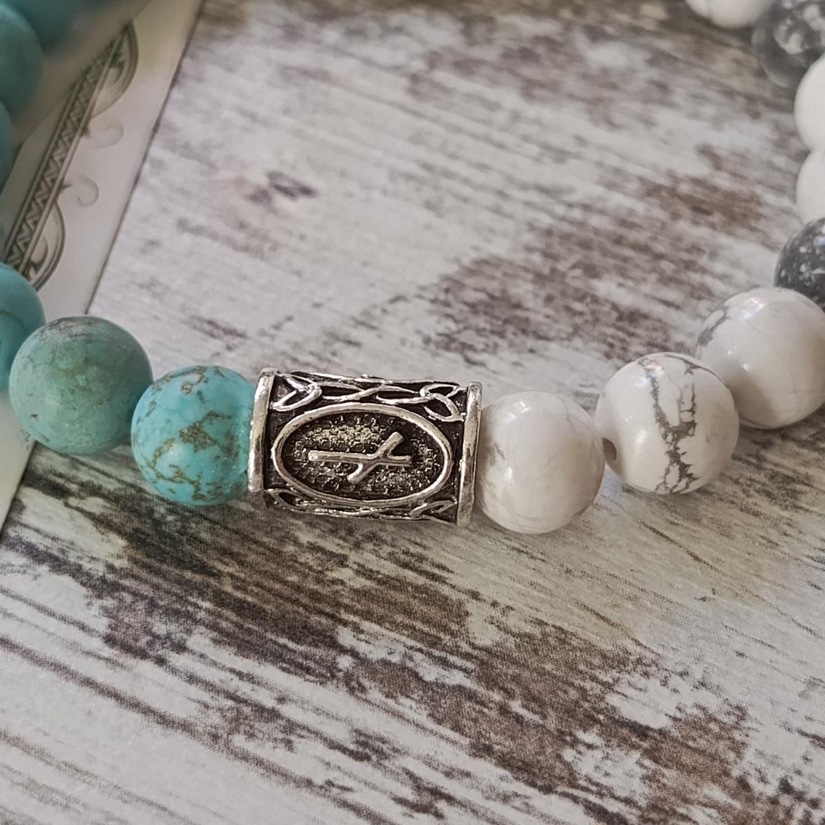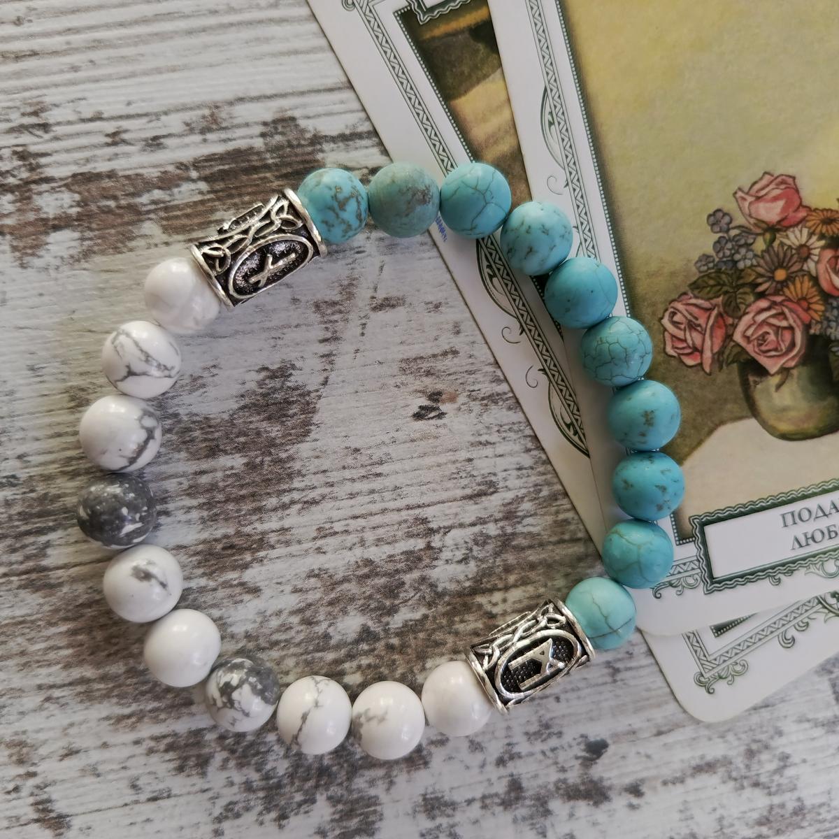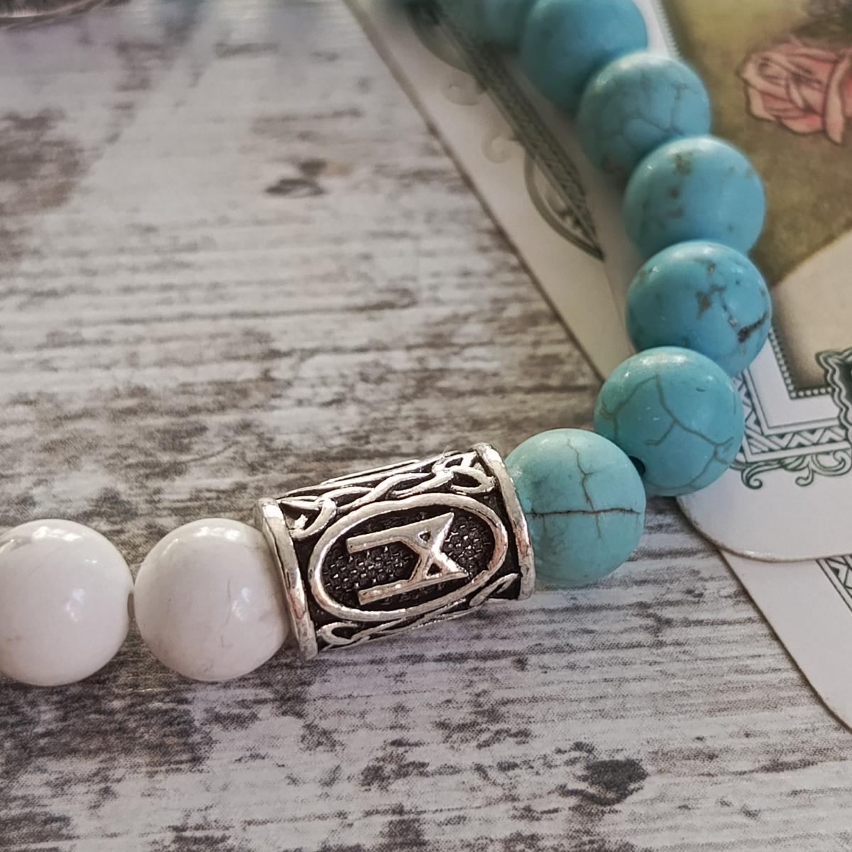 Браслет из бирюзы и кахолонга с рунами