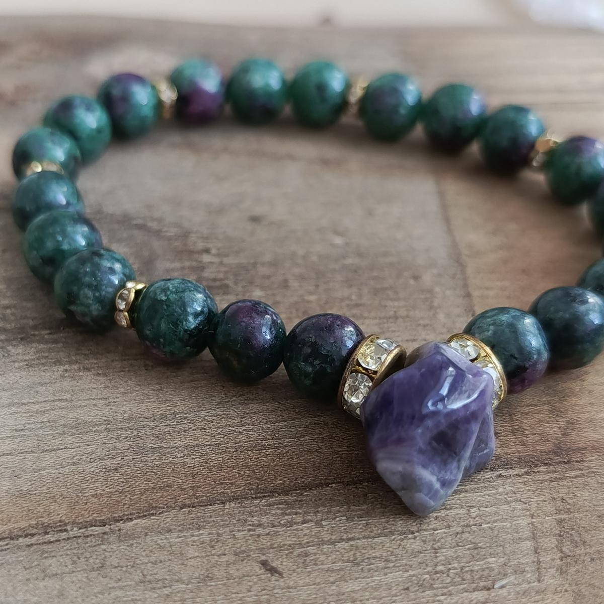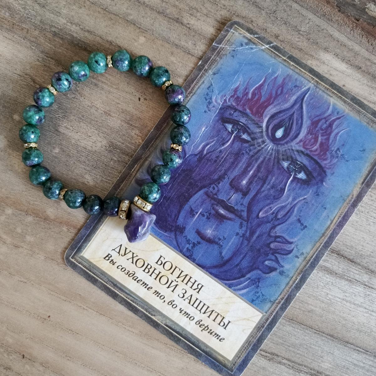 Цоизит (аниолит) и аметист (центральный камень) в содружестве имеют гармоничное взаимодействие и мощный потенциал для духовной работы, защиты и личностного роста. Аниолит, как проводник связи с Высшими Силами, способствует открытию каналов для получения мудрости и направлению, а аметист, обладая защитными и очищающими свойствами, помогает фильтровать информацию и защищает от негативных влияний. В совокупности эти камни создают сильное энергетическое поле, усиливают медитативные практики и способствуют принятию мудрых решений. Их использование возможно в украшениях, медитациях, пространстве или во время сна. Особенно рекомендуется для духовных искателей, практиков медитации и тех, кто нуждается в поддержке и защите. В целом, сочетание цоизита (аниолита) и аметиста считается одним из наиболее гармоничных и эффективных для духовного развития и защиты.